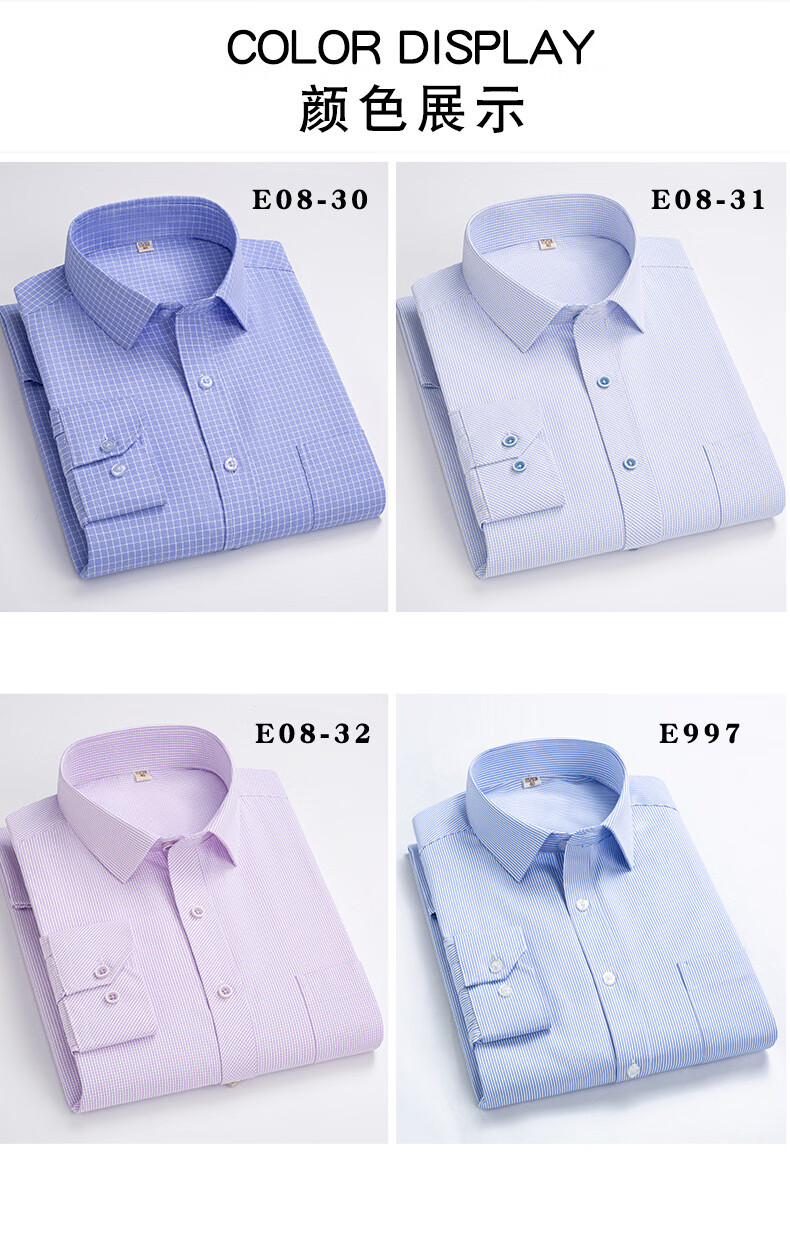 Septwolves long-sleeved professional formal shirt men's striped large size shirt business casual middle-aged dad no-iron men's top E08-30 39
