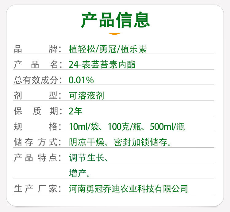 24 epibrassinolides, fruit trees, wheat, flower and fruit protection, anti-fruit drop, plant growth regulator pesticide 10ml*10 bags