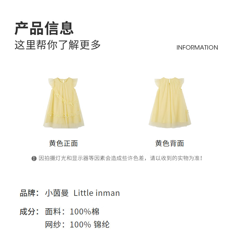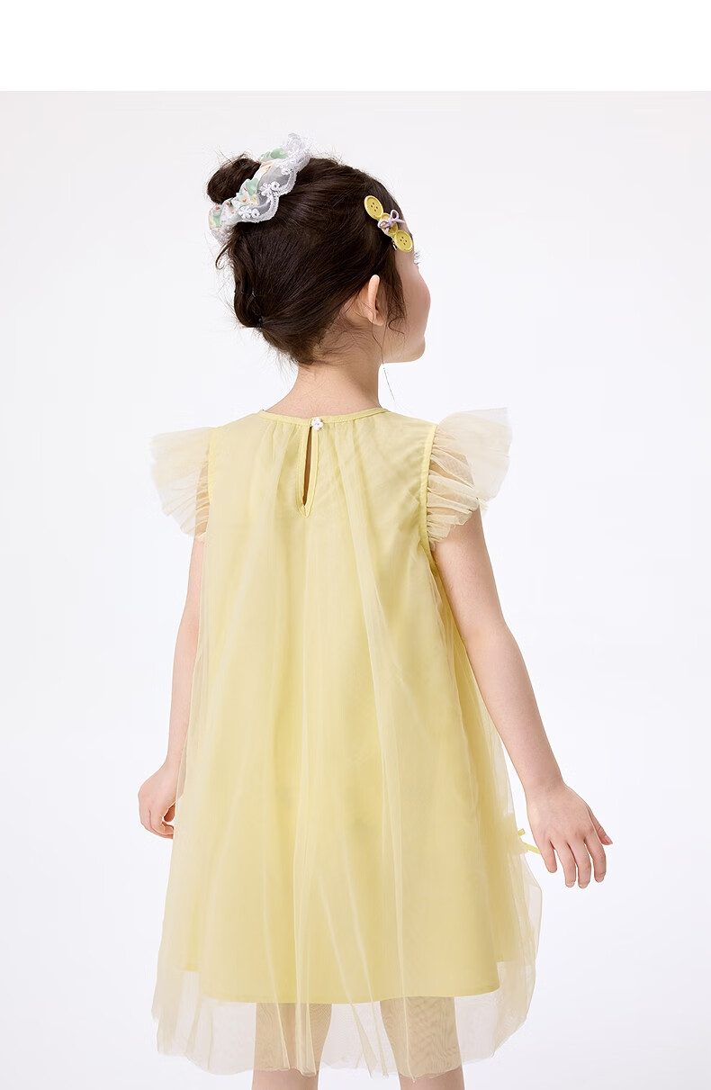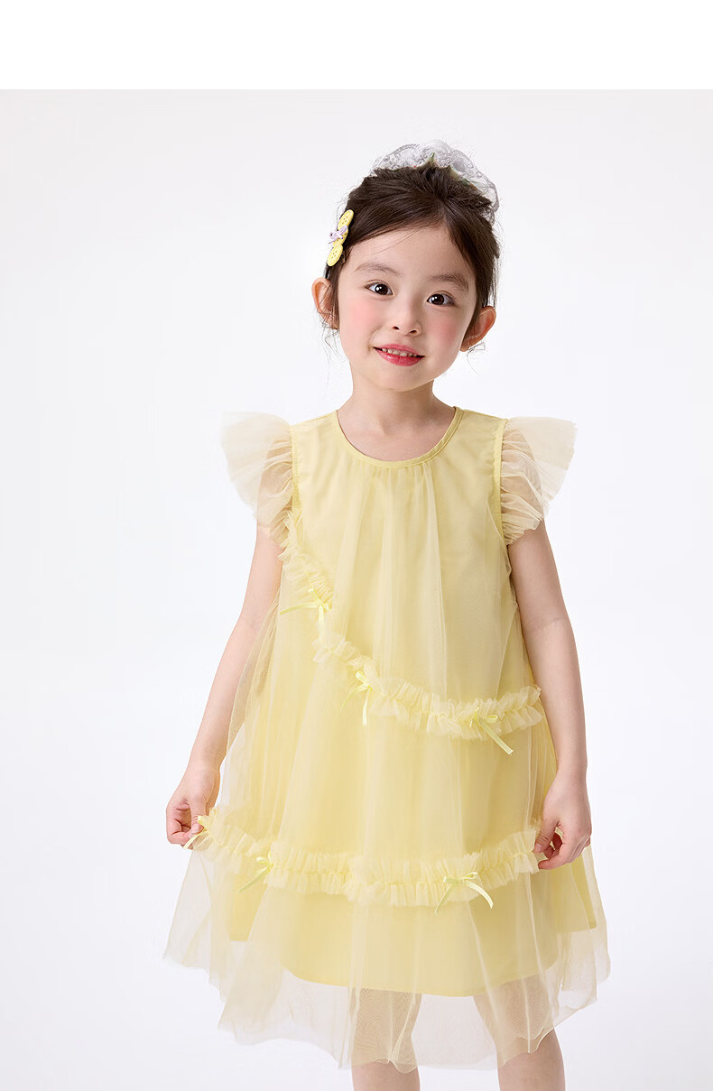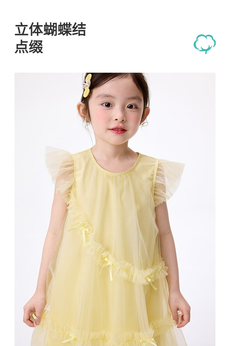 Xiaoyinman Inman children's clothing girls pure cotton dress breathable 26 summer children's small flying sleeve mesh A-line skirt yellow 105