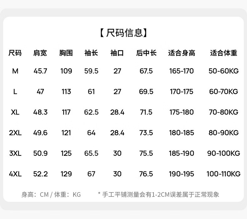 Size (cm) 42 44 46 48 50