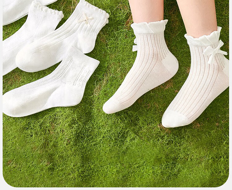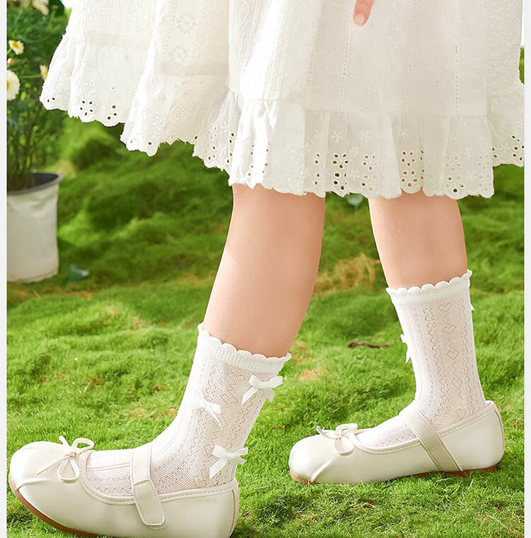 Mianqi Bear Girls' White Socks Summer Thin Mesh Socks Children's Spring and Summer Breathable Lace Socks Little Girls Princess Socks FB330-5 Pairs Fashionable and Versatile Lace Princess Socks - Gift Box 9-12 Years Old - Recommended Foot Length 19-22CM Shoe Size 33-36