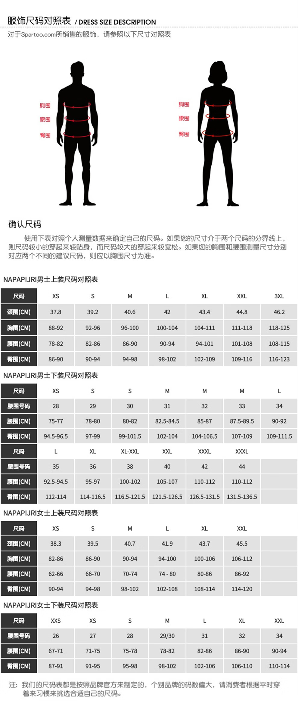 China (cm) 165 / 88-90 170 / 96-98 175 / 108-110 180 / 118-122 185 / 126-130