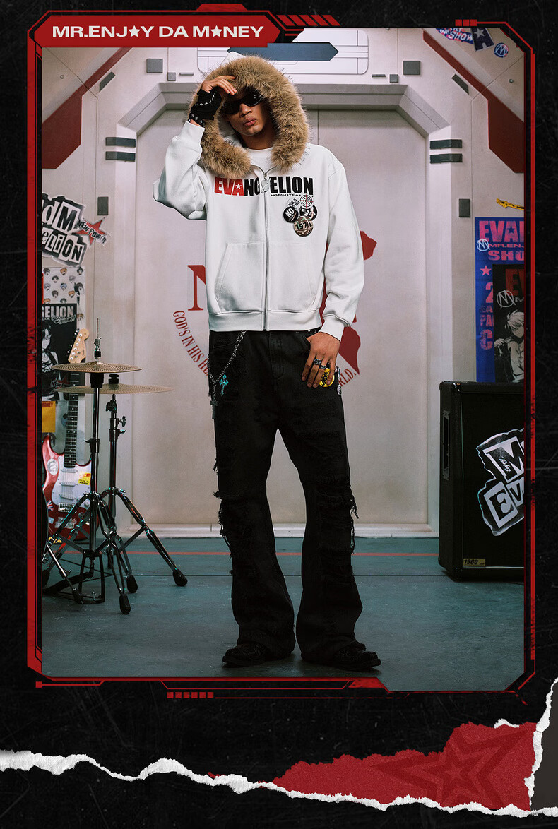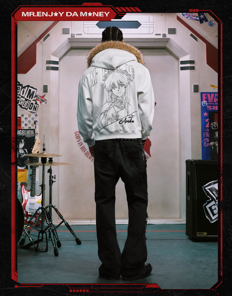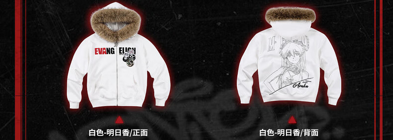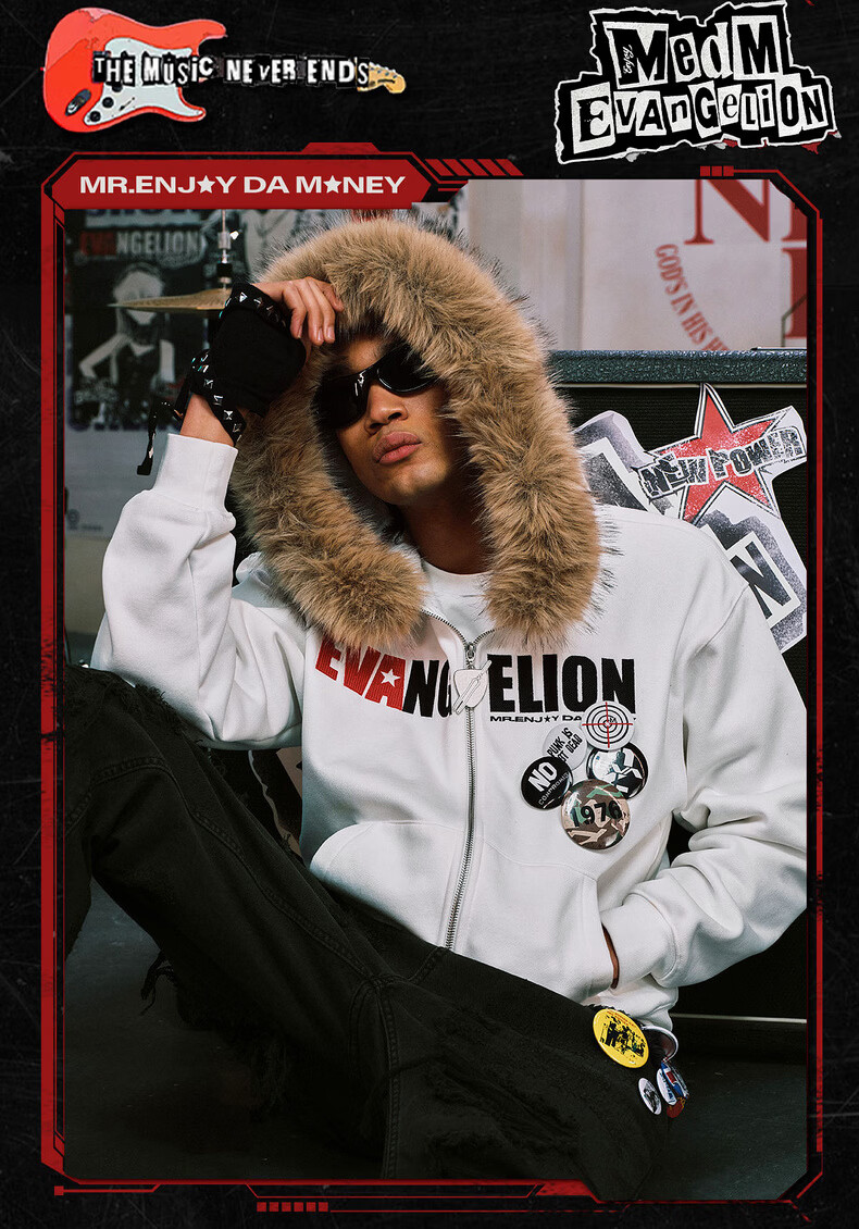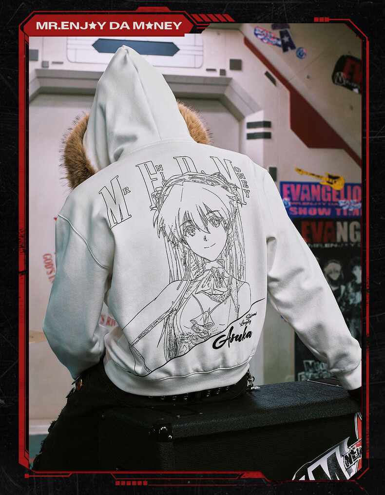MEDMxEVA NEVER END series character sketch style fur collar zipper hoodie logo embroidered hooded sweatshirt white-Asuka L