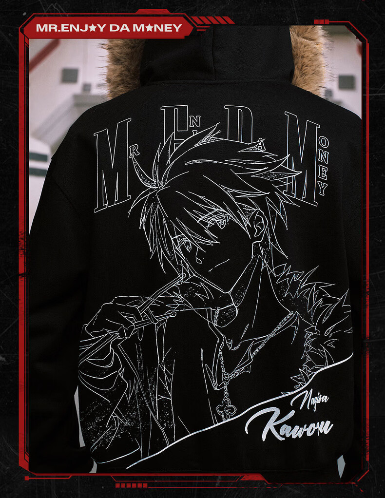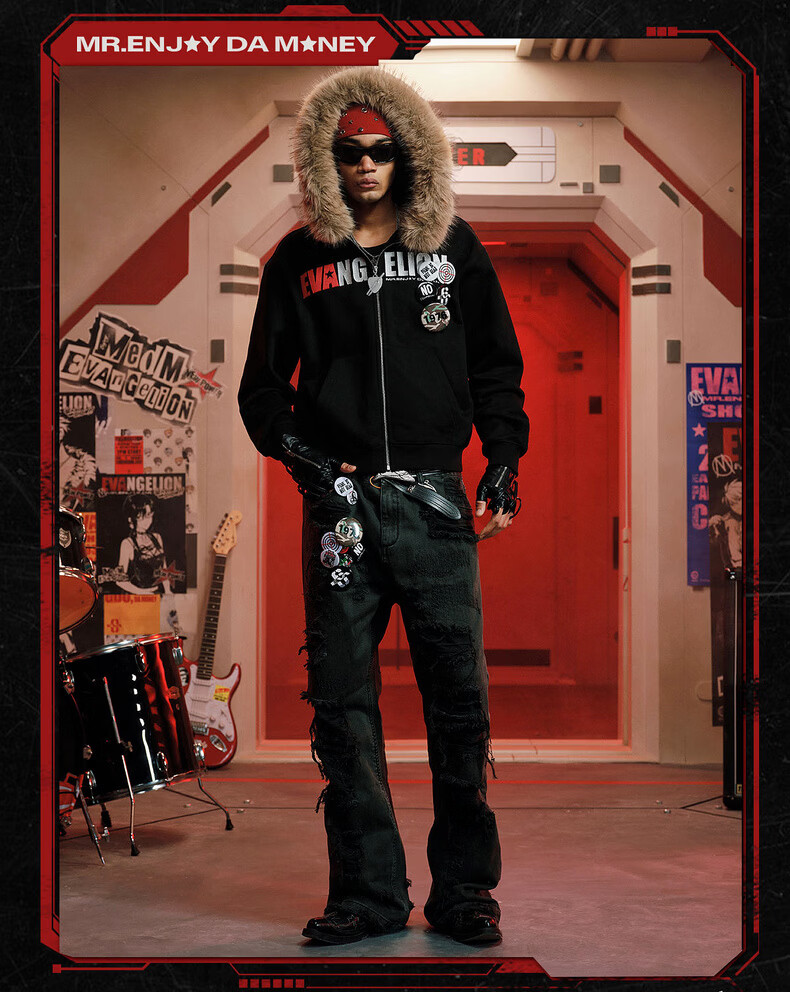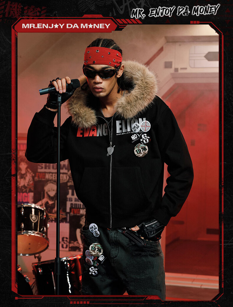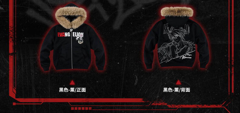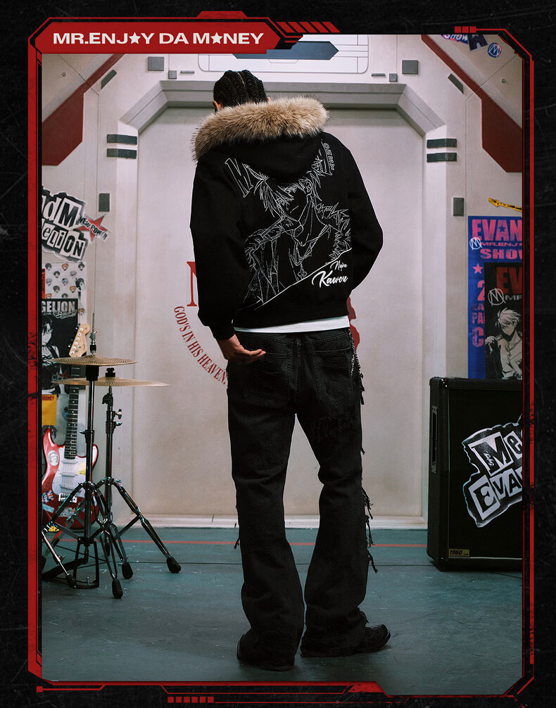 MEDMxEVA NEVER END series character sketch style fur collar zipper hoodie logo embroidered hooded sweatshirt white-Asuka L