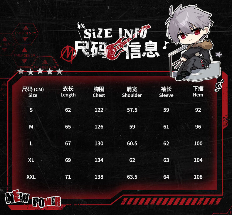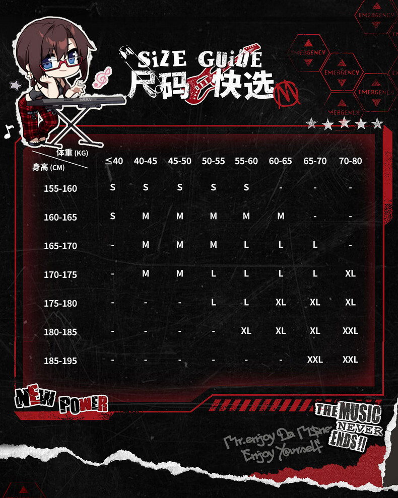 China (cm) 160-165/84-86 165-170 / 88-90 167-172 / 92-96 168-173 / 98-102 170-176 / 106-110