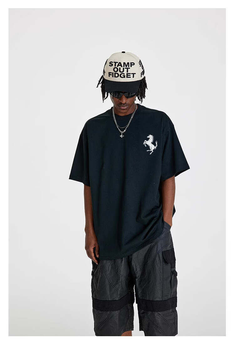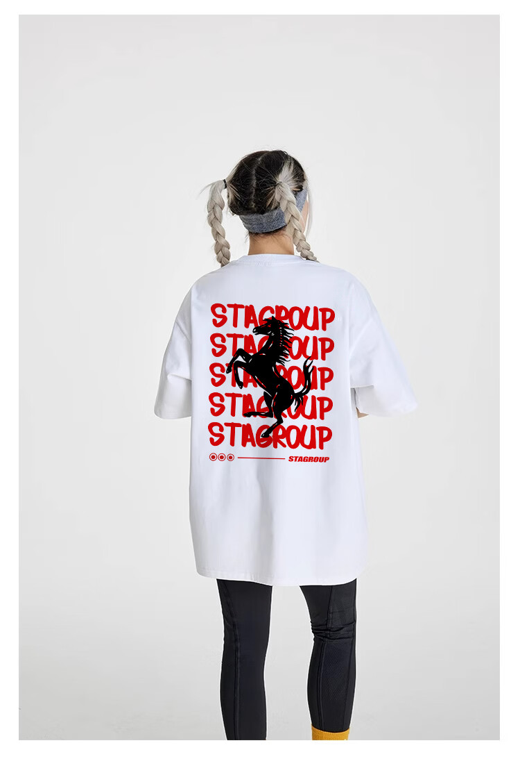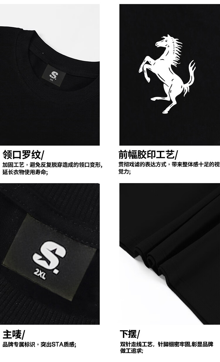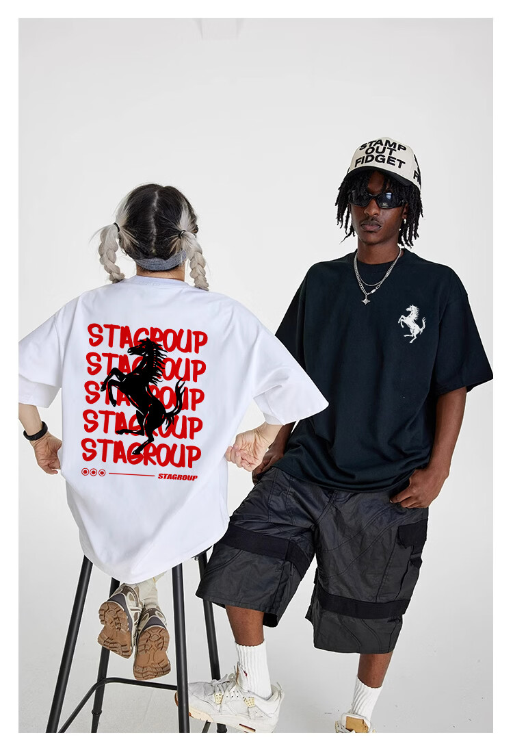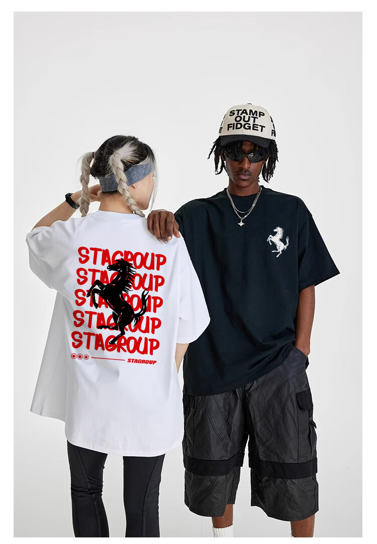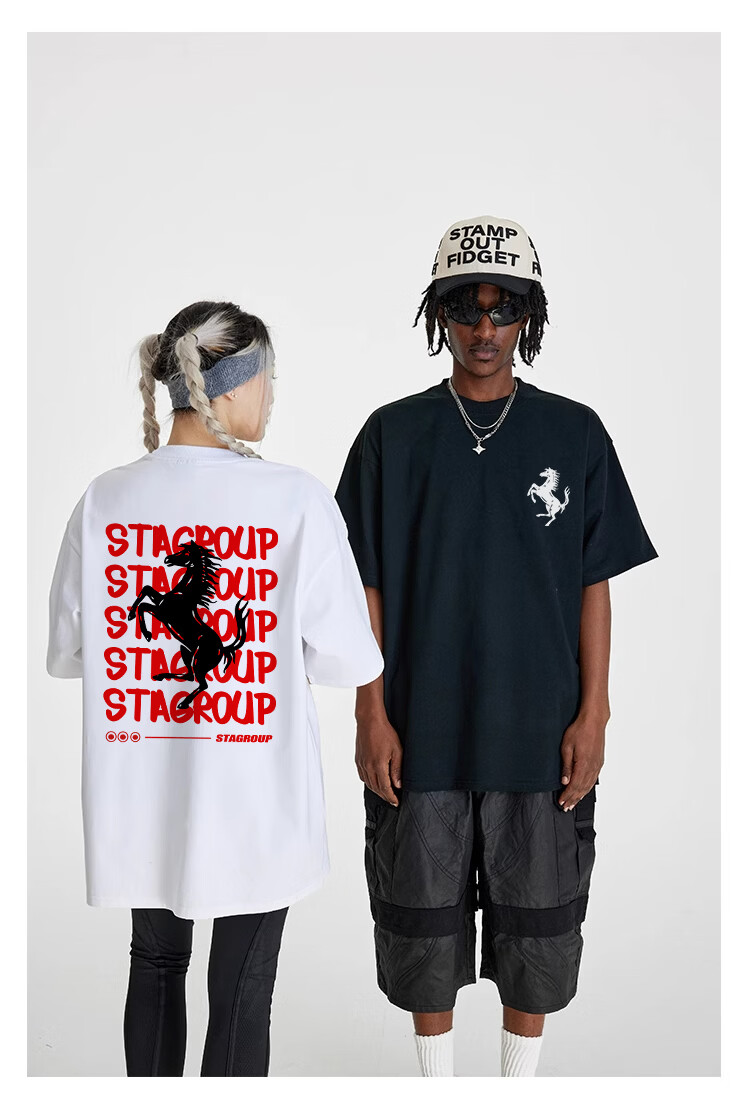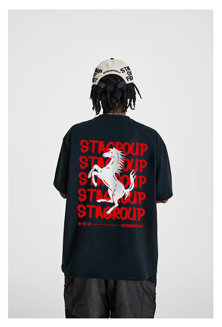 STA trendy brand retro high street 2026 new year of the horse printed cotton round neck t-shirt summer men's short-sleeved T-shirt top white M
