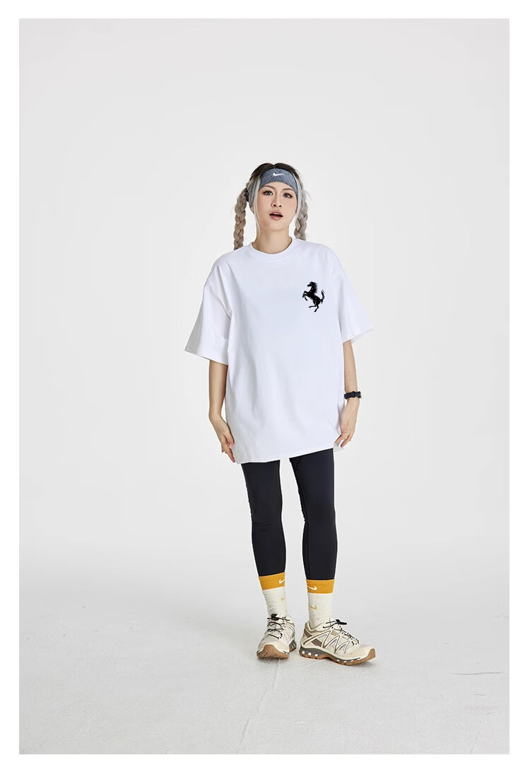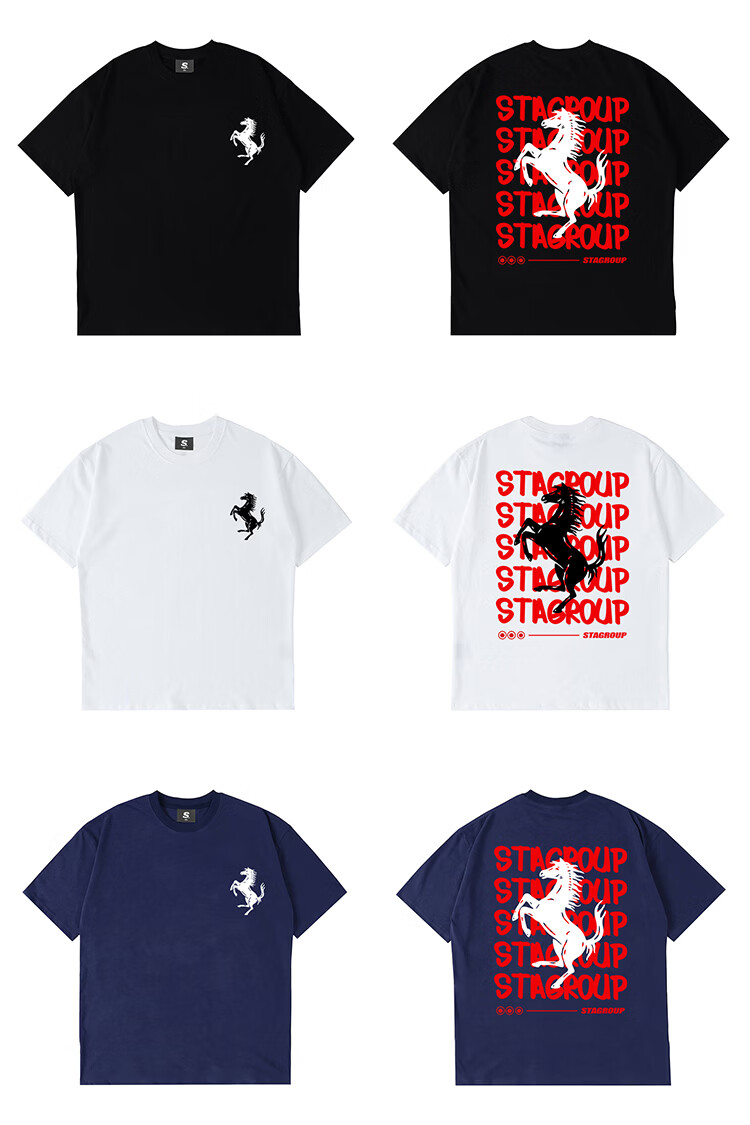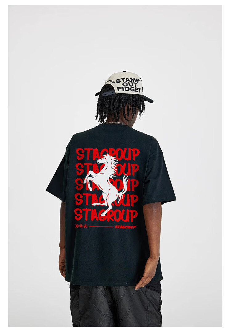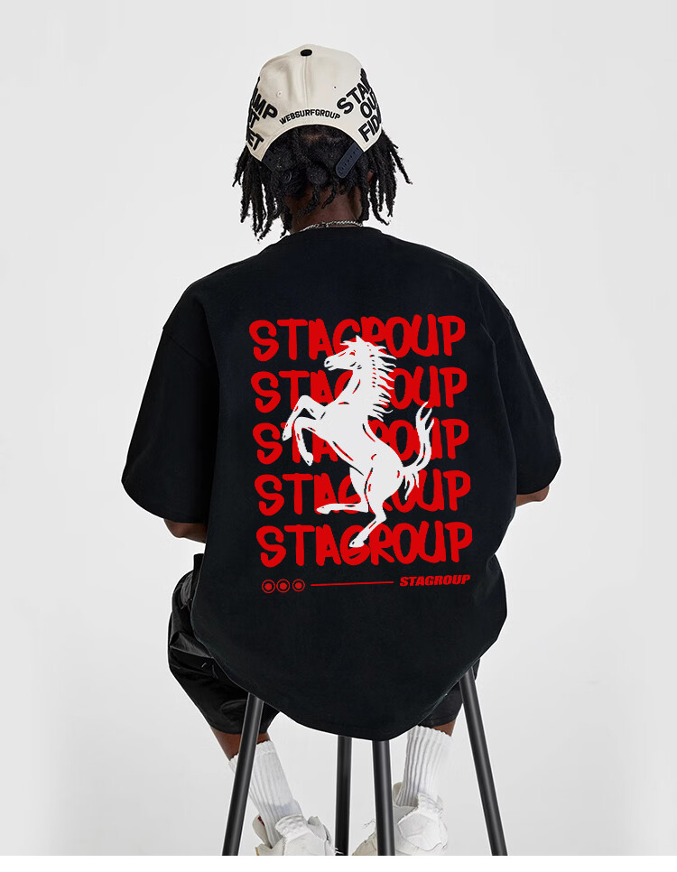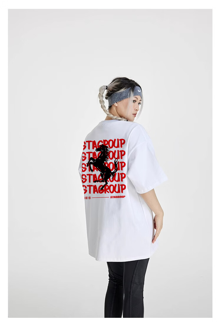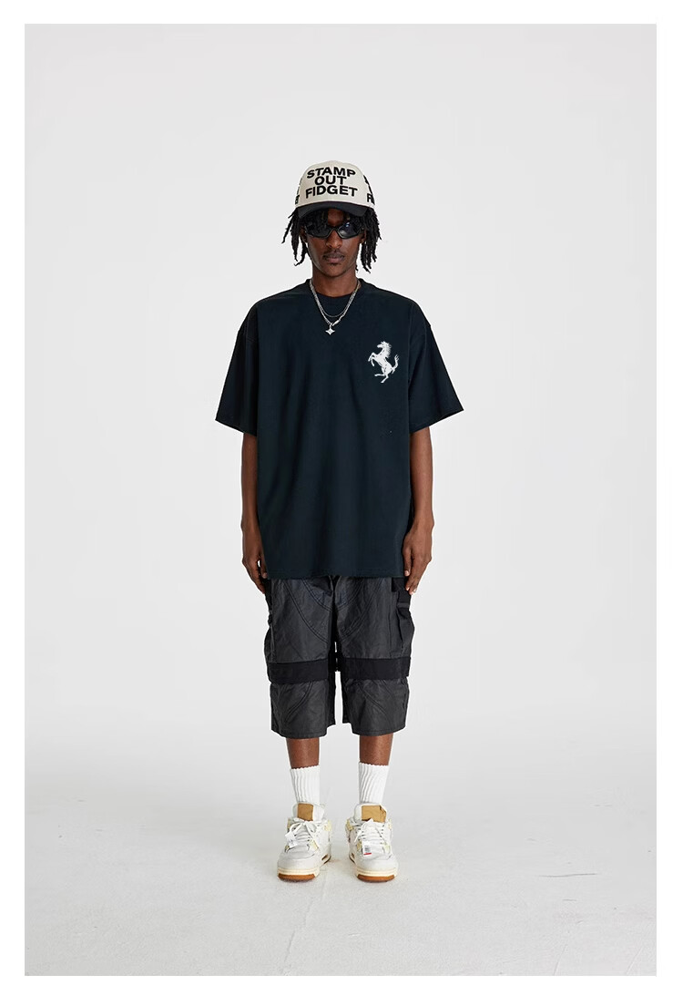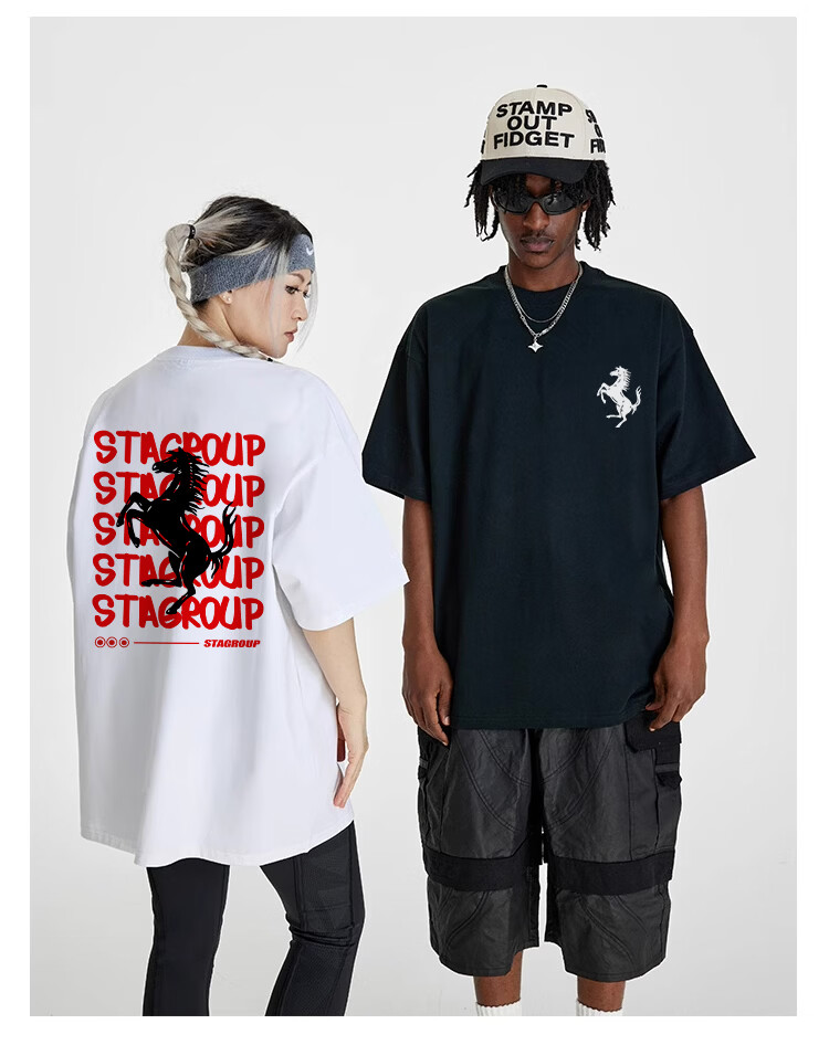 STA trendy brand retro high street 2026 new year of the horse printed cotton round neck t-shirt summer men's short-sleeved T-shirt top white M