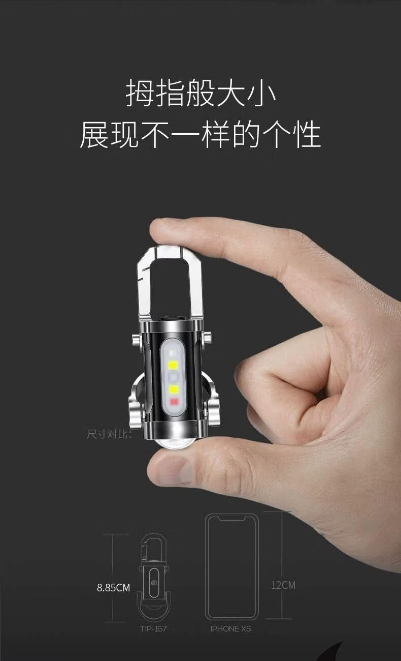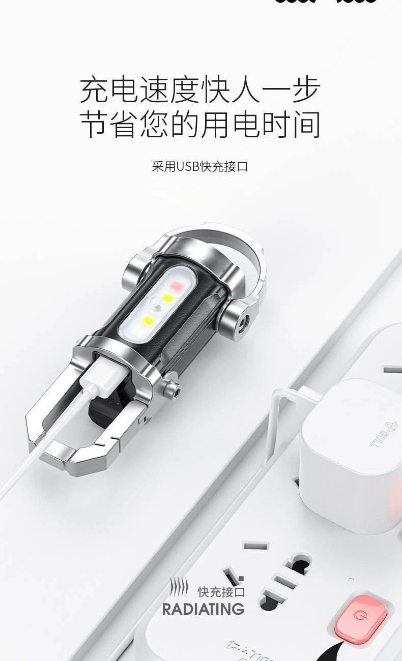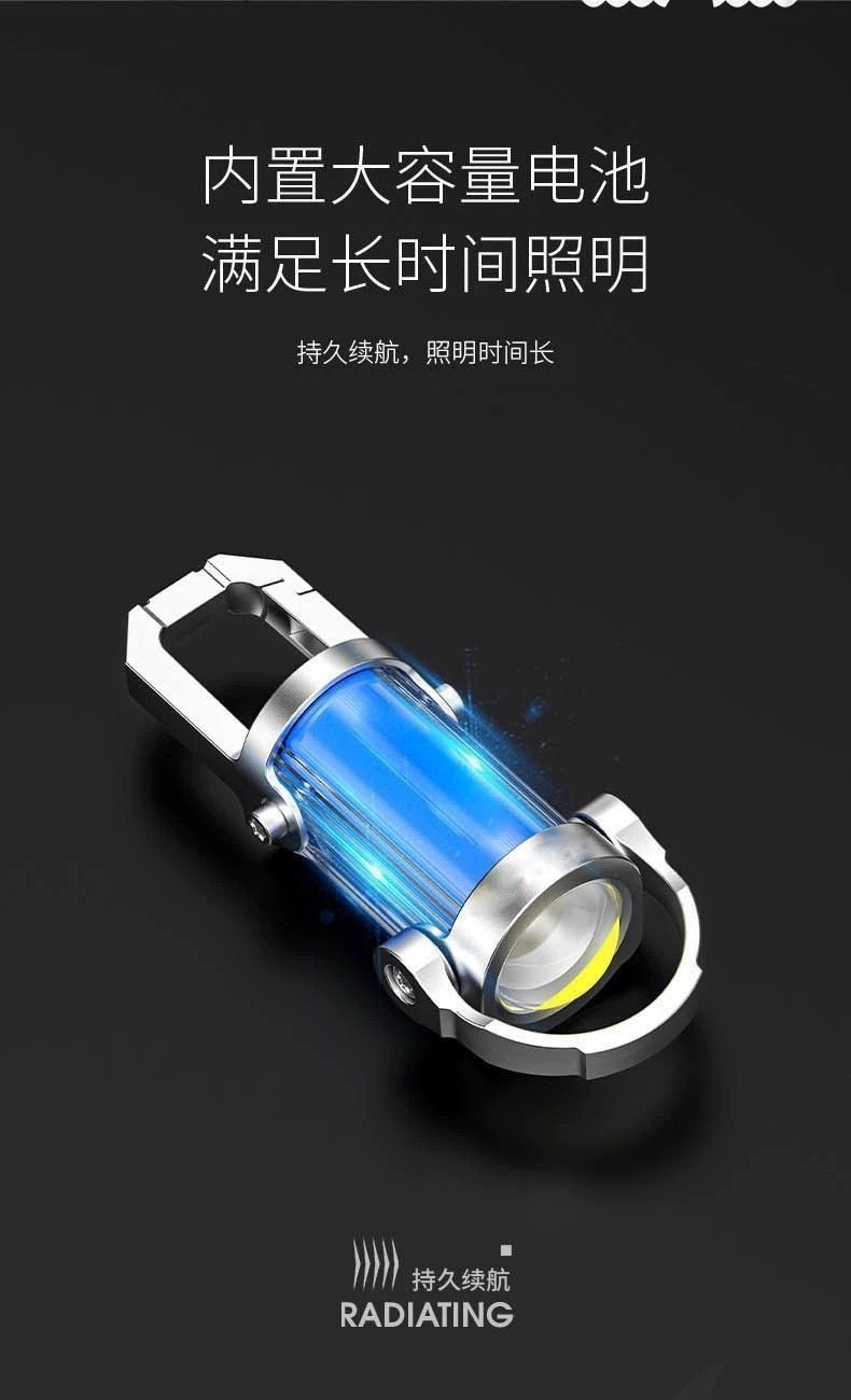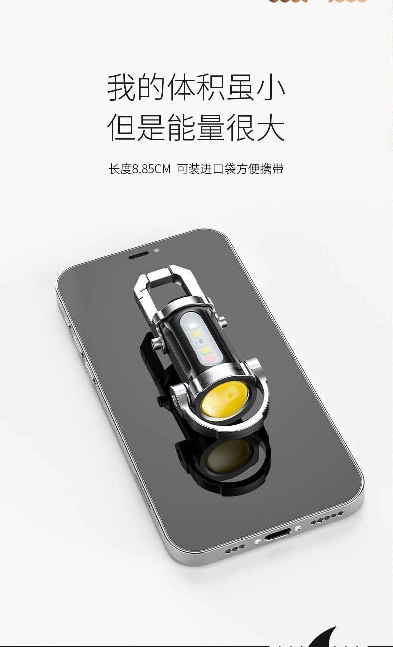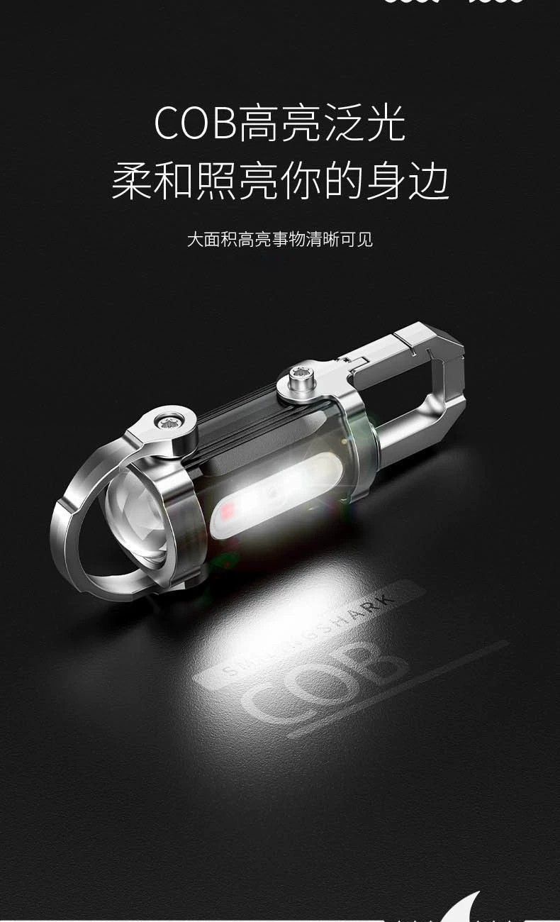 Multifunctional mini keychain light outdoor carry hook pocket lighting spotlight floodlight keychain light emergency charging