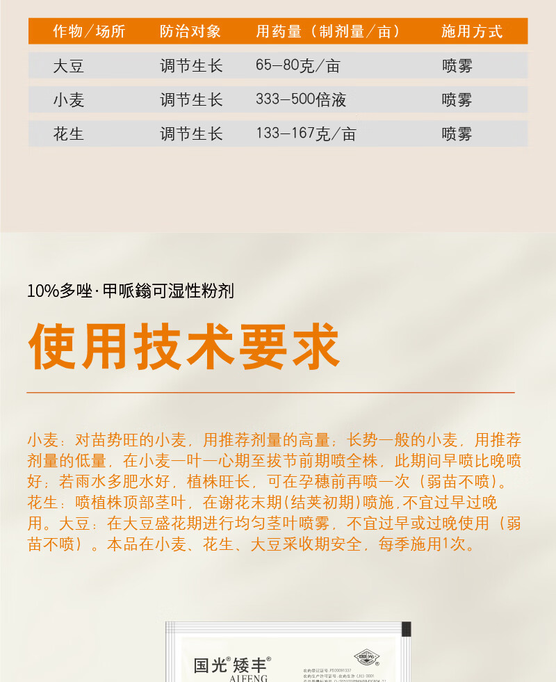 Guoguang Aifeng paclobutrazol, wheat, peanut, soybean, short and strong growth, growth and lodging prevention medicine, genuine 25g*2 bags