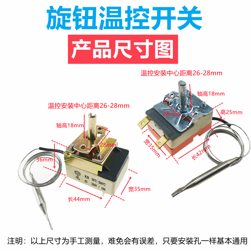 30-110 degrees 50-300 degrees electric oven fryer knob thermostat noodle soup pot temperature control switch 220V25A white bottom 50-400250V32A2 feet
