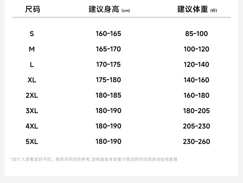 China (cm) 160-165/84-86 165-170 / 88-90 167-172 / 92-96 168-173 / 98-102 170-176 / 106-110