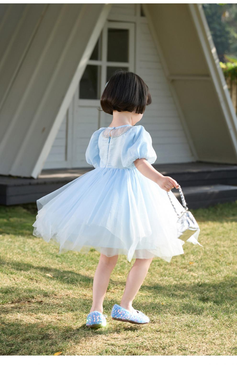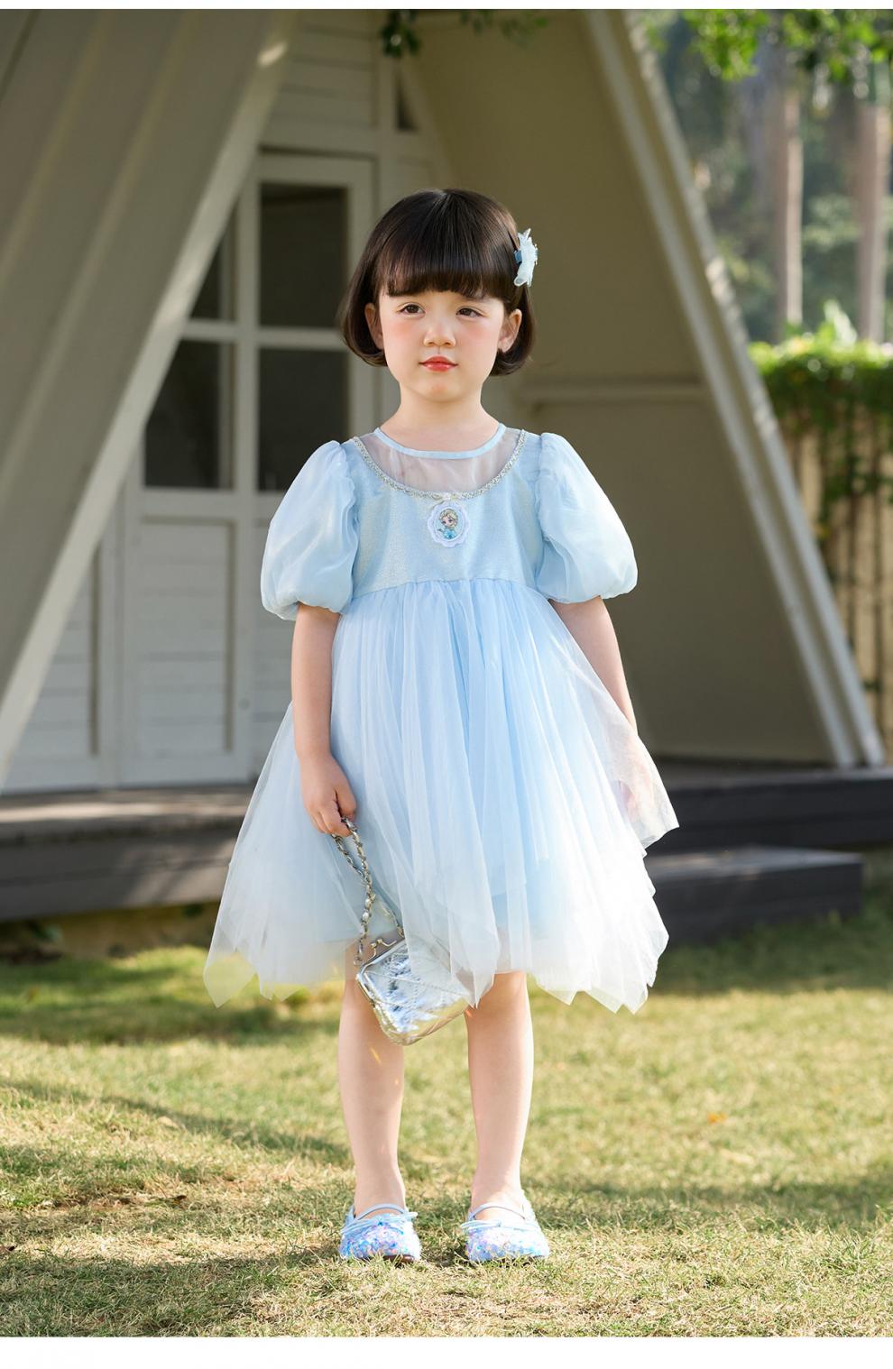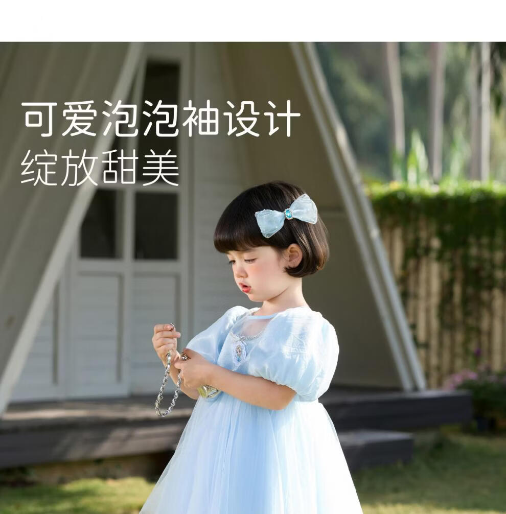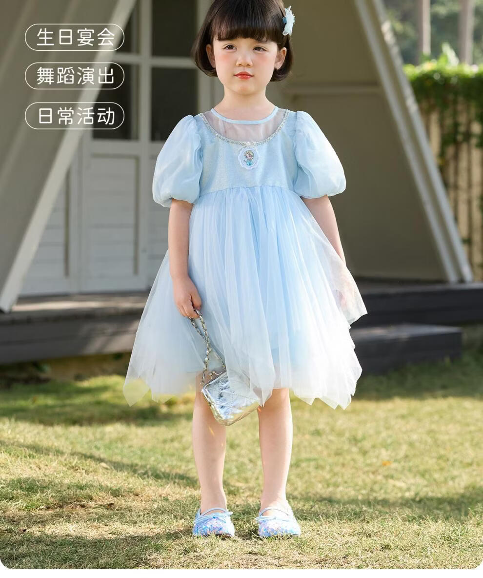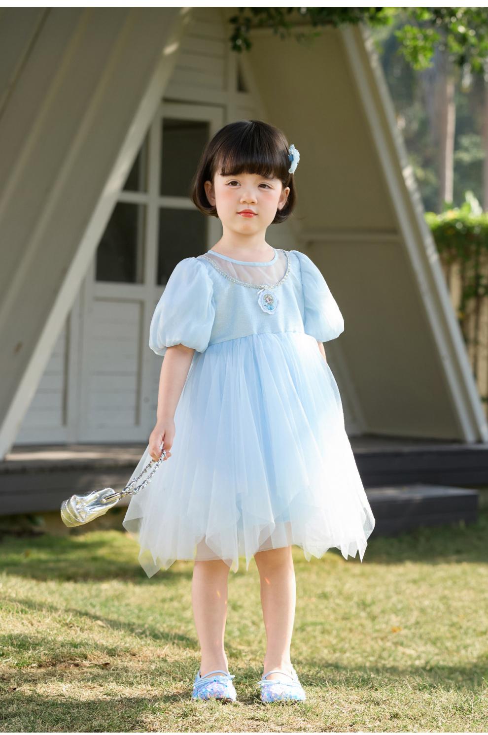 Om Bear Princess Dress Girls Summer 2026 New One Year Old Baby Girl Dress Girls Beautiful Dress Children's Skirt Blue 120 cm