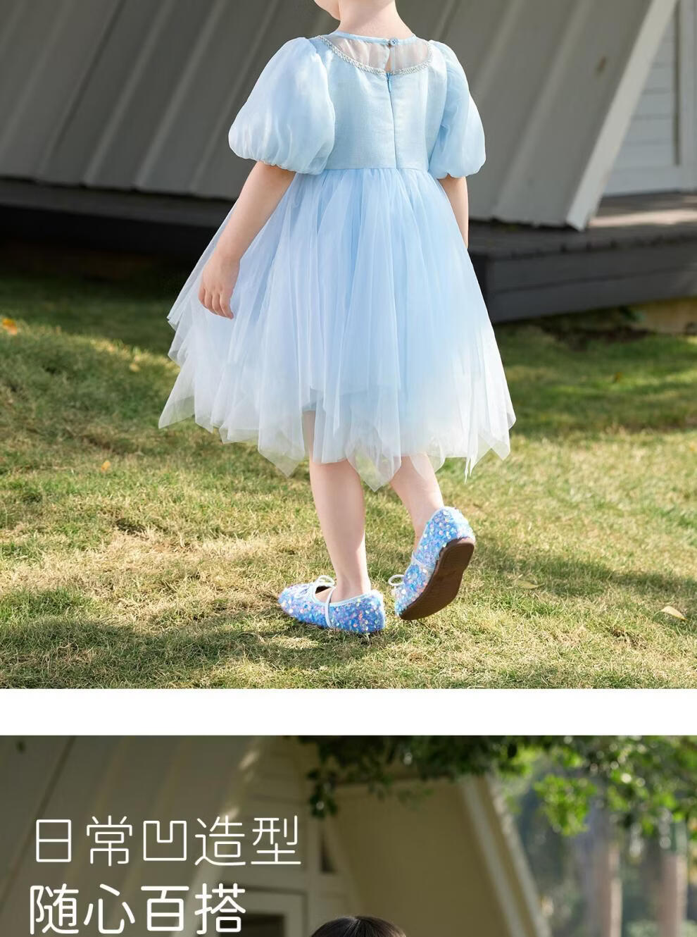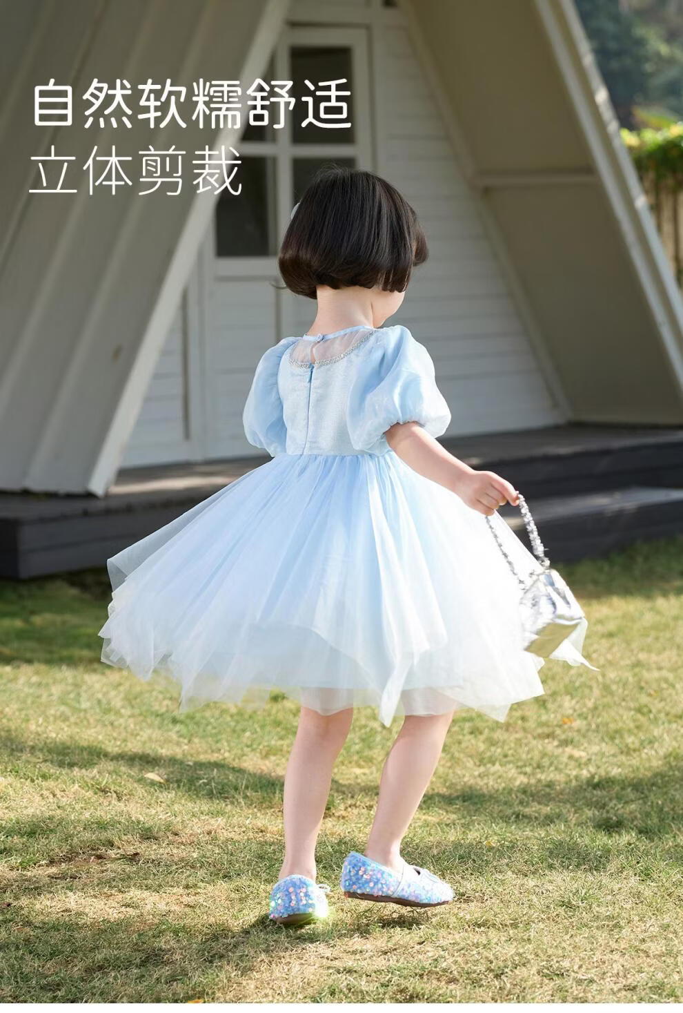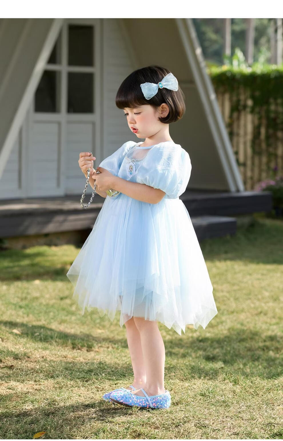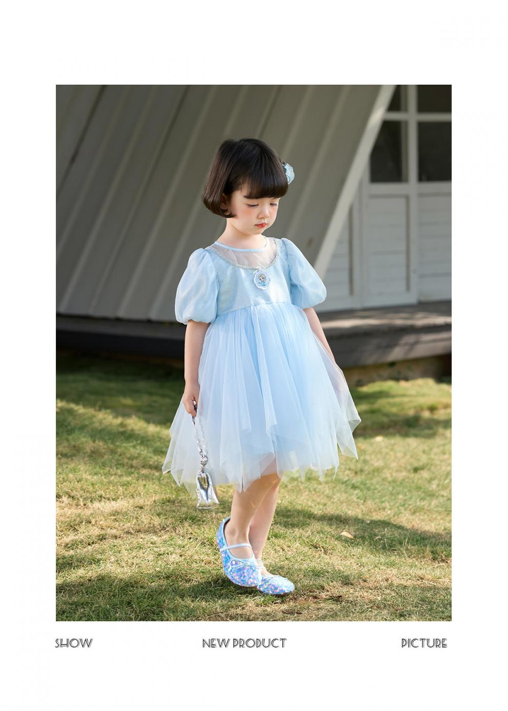 Om Bear Princess Dress Girls Summer 2026 New One Year Old Baby Girl Dress Girls Beautiful Dress Children's Skirt Blue 120 cm