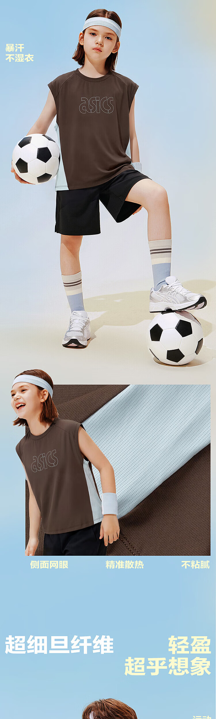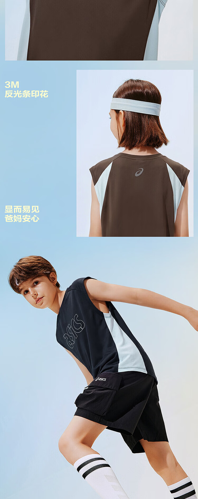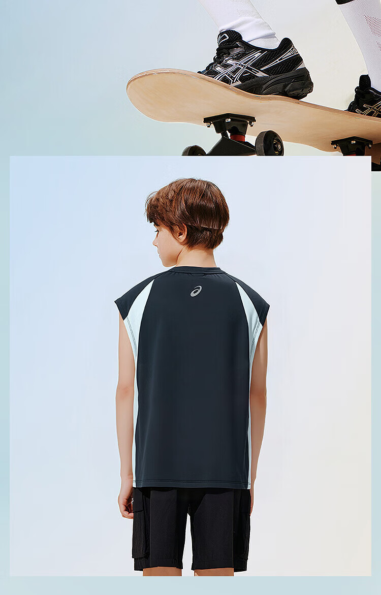 ASICS children's 26-year-old fast moisture-absorbent and quick-drying sleeveless loose T-shirt is lightweight, cool, sporty and breathable 5003 navy blue 120 cm
