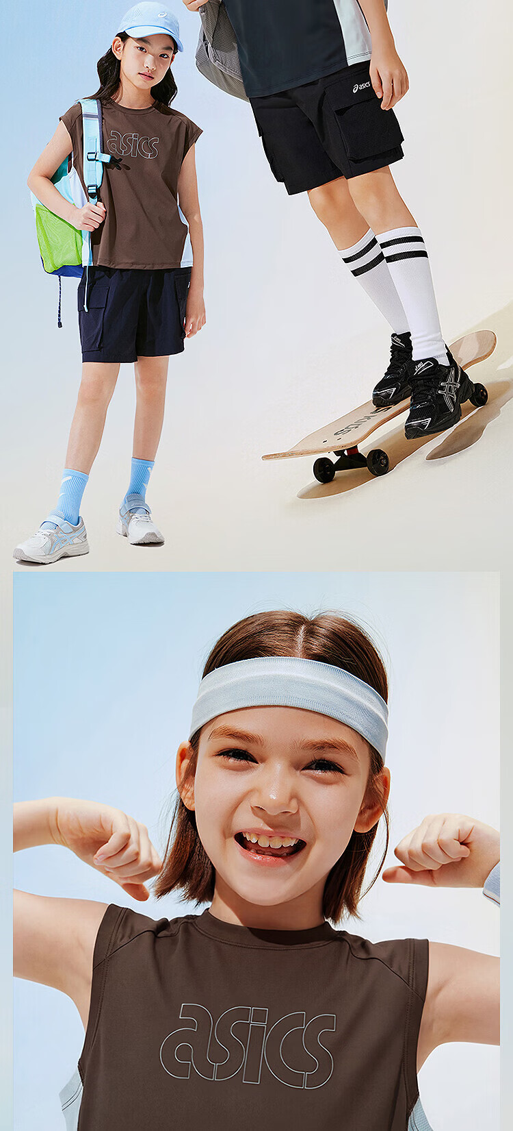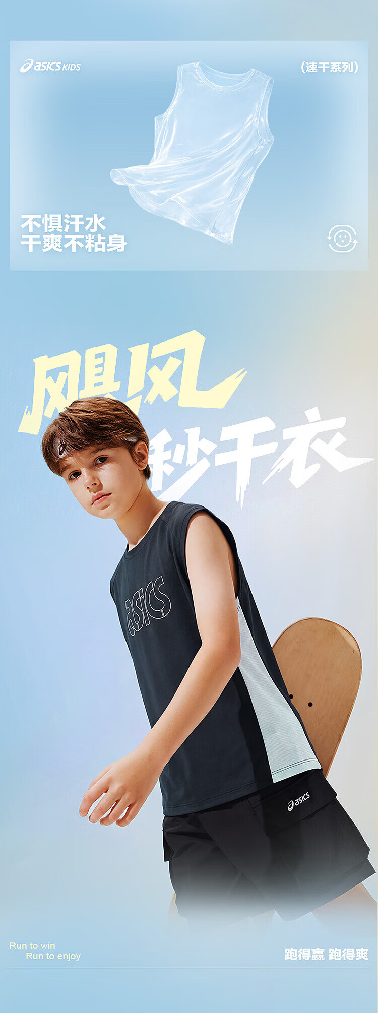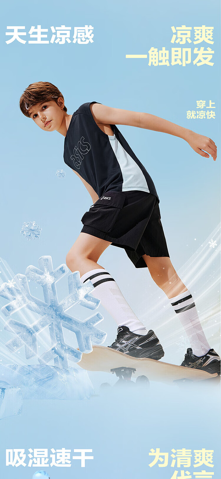ASICS children's 26-year-old fast moisture-absorbent and quick-drying sleeveless loose T-shirt is lightweight, cool, sporty and breathable 5003 navy blue 120 cm