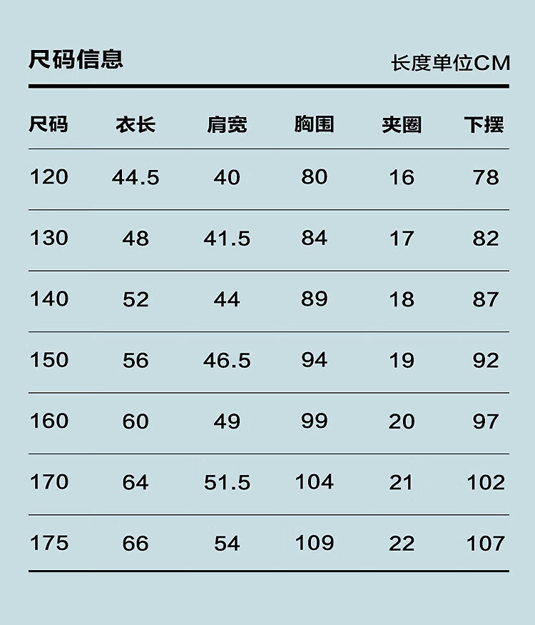 China (cm) 160-165/84-86 165-170 / 88-90 167-172 / 92-96 168-173 / 98-102 170-176 / 106-110