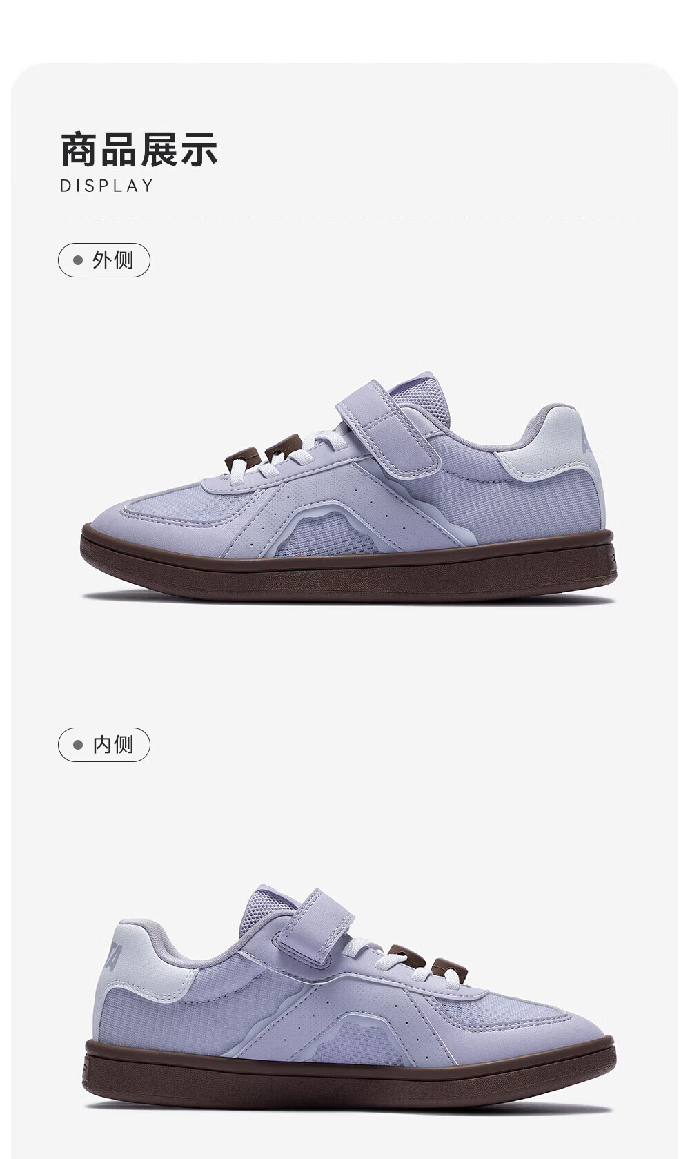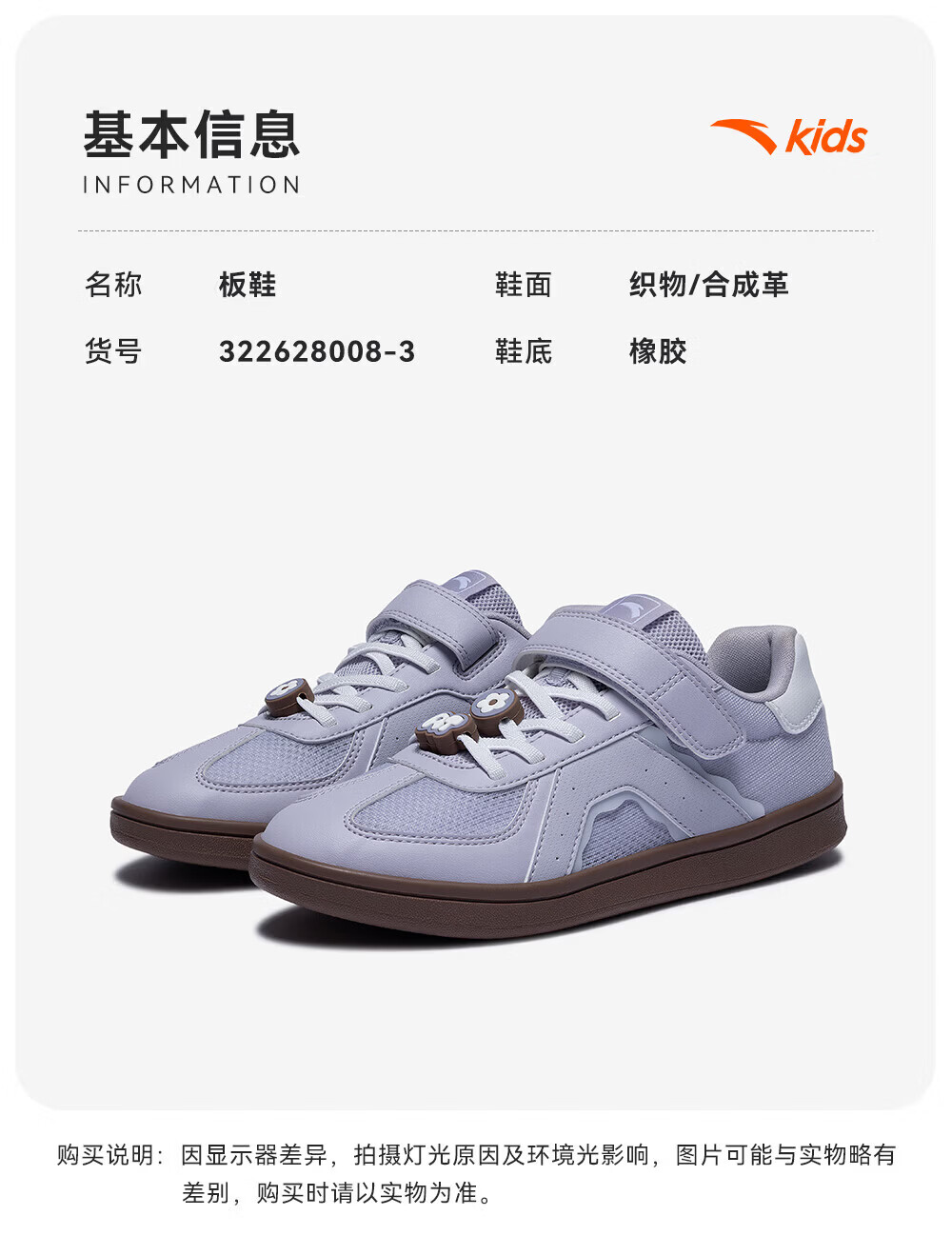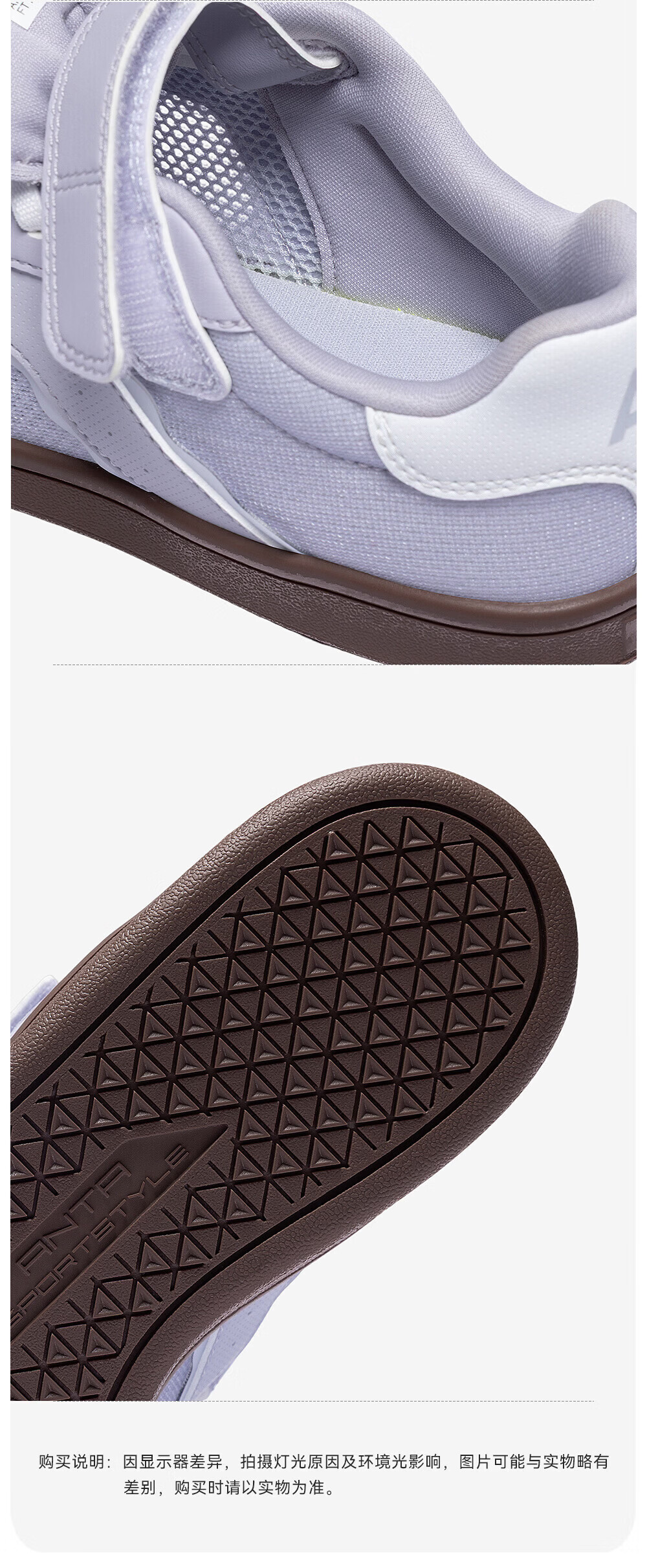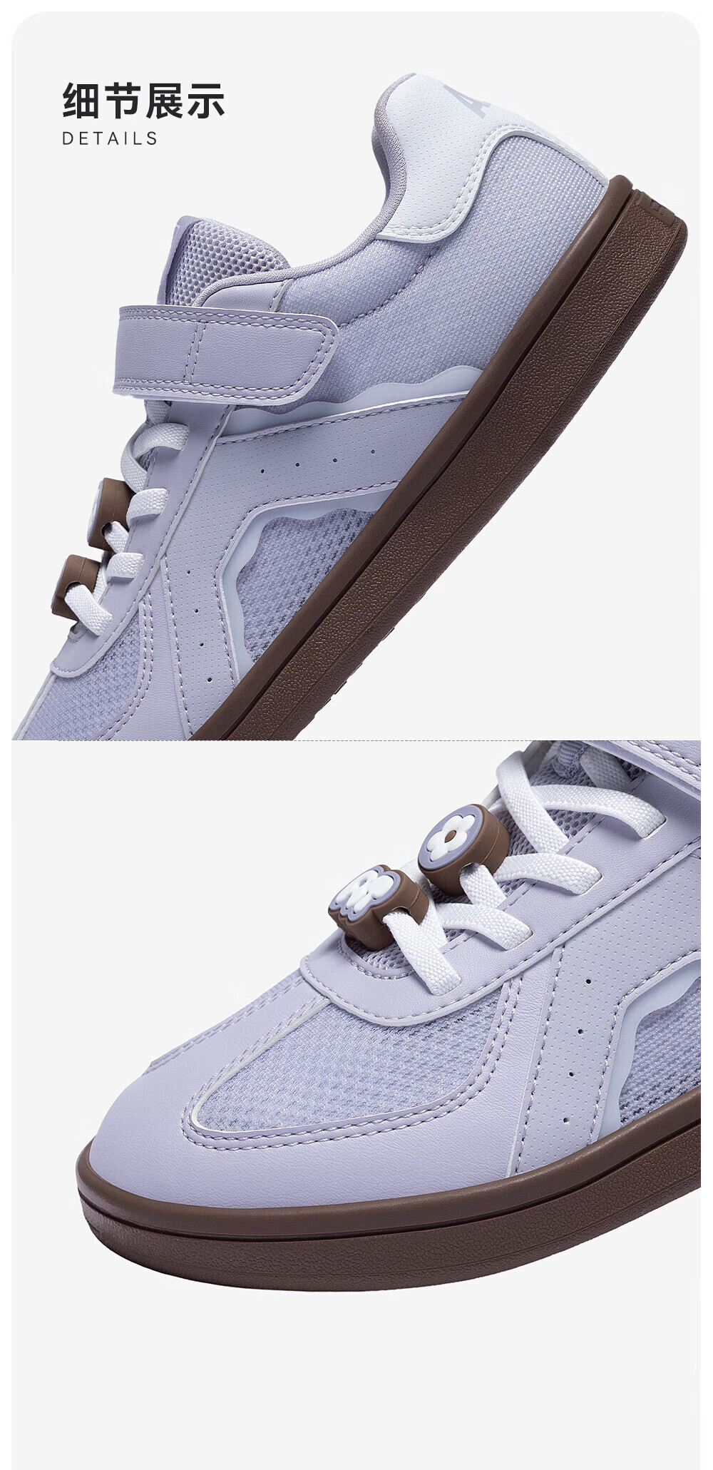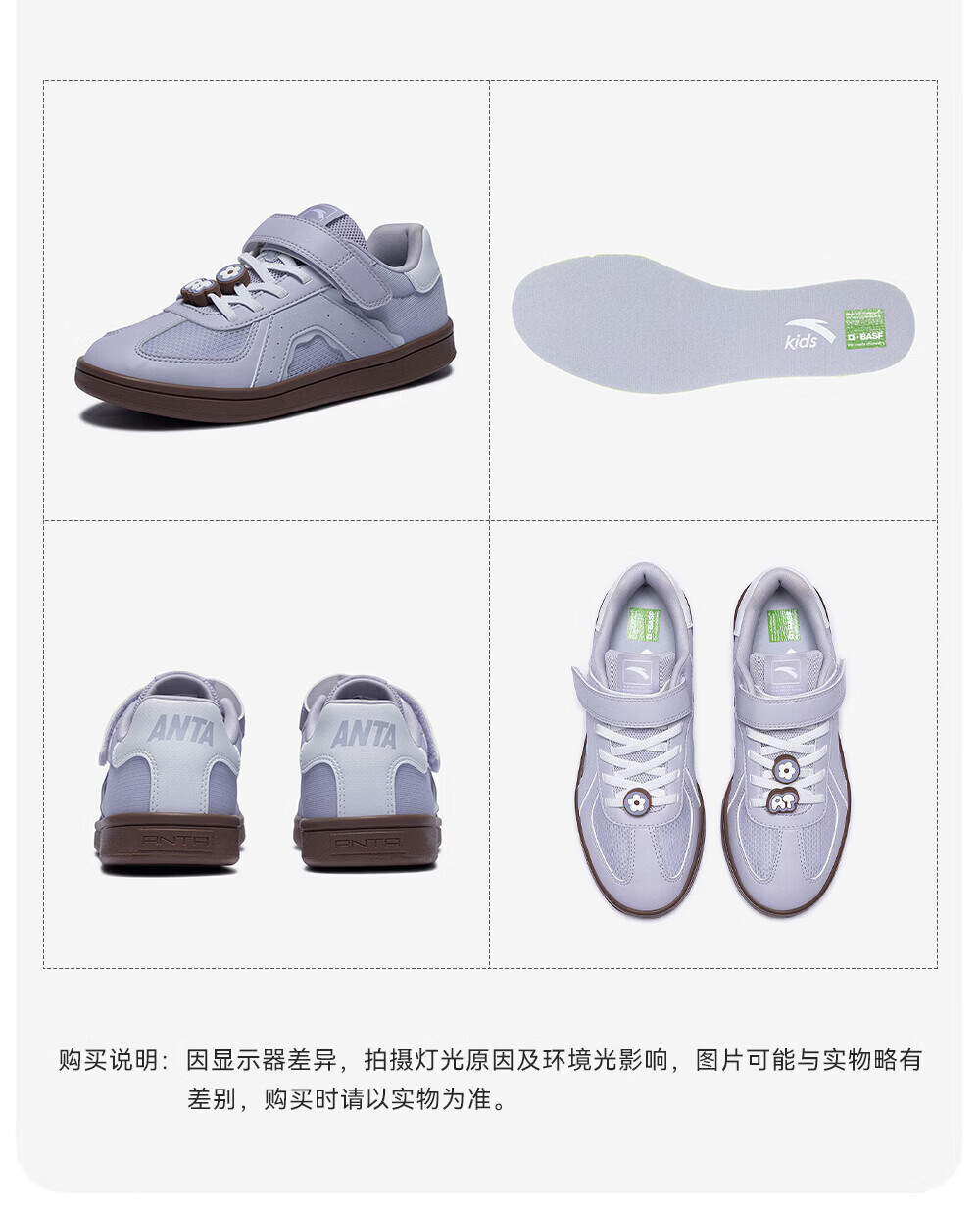 ANTA children's low-top sneakers for girls and boys moral training shoes 2026 spring new Velcro leather casual sports shoes lilac gray/Anta white-3 35