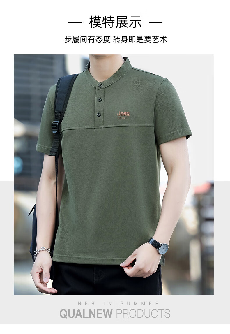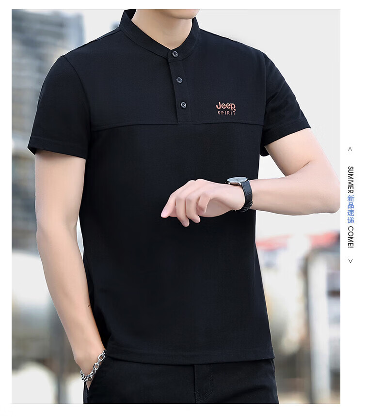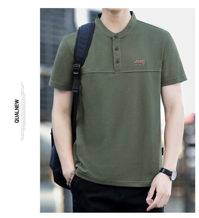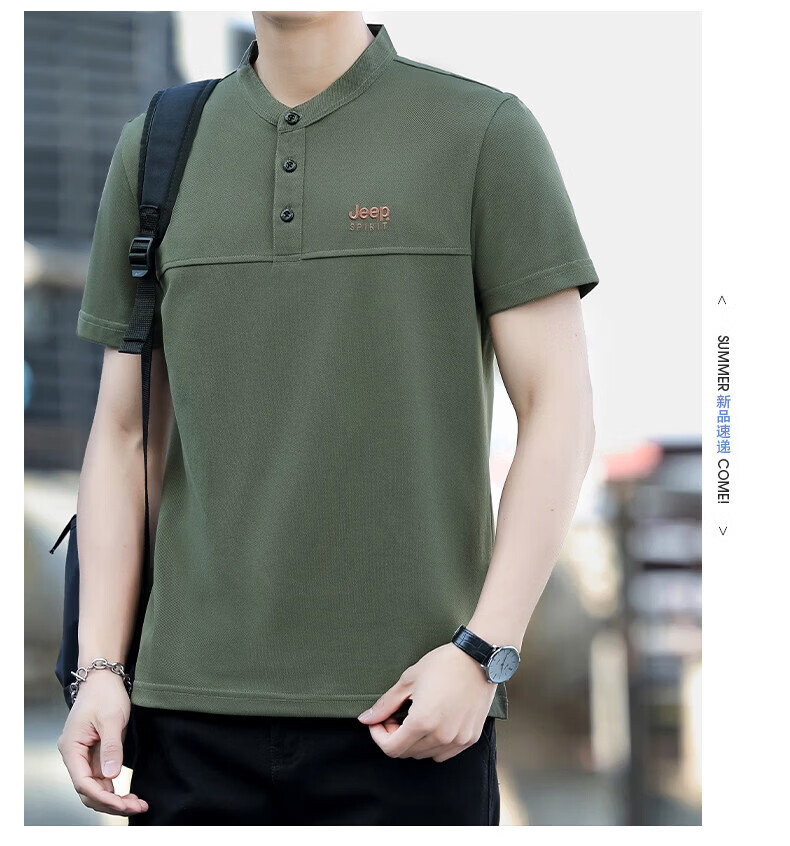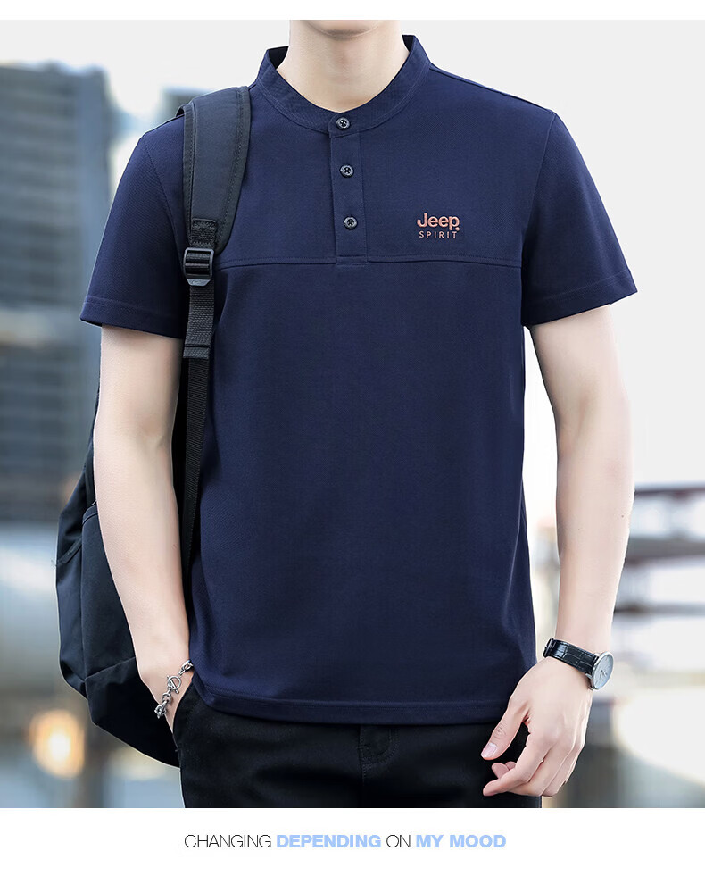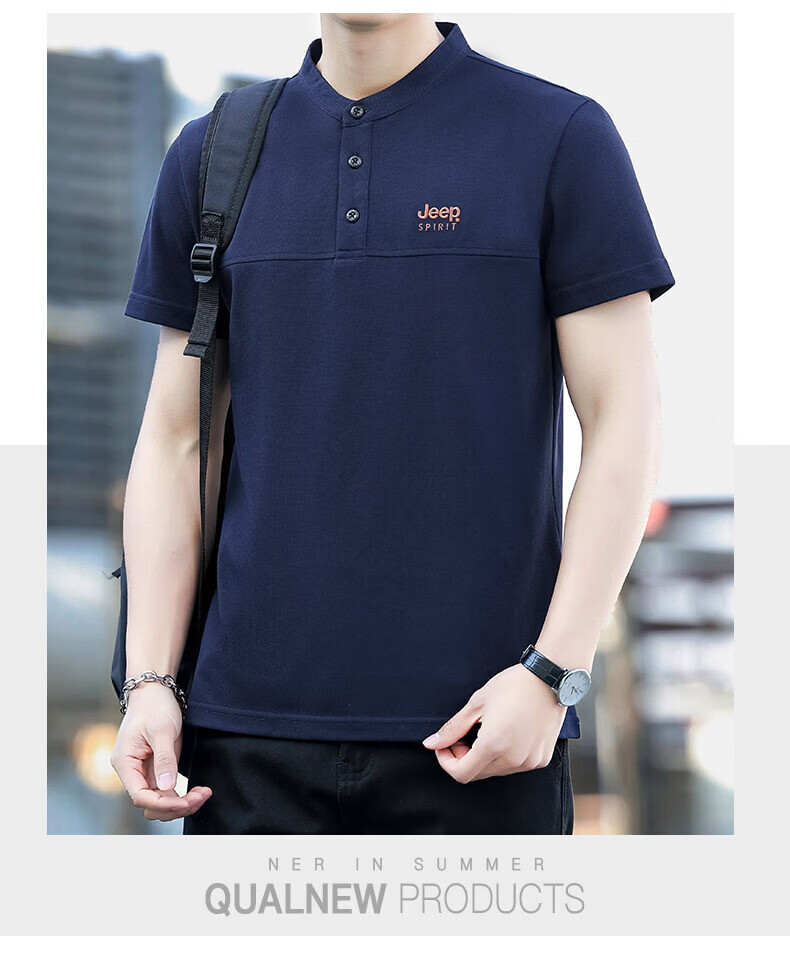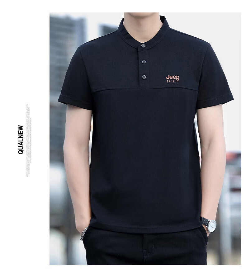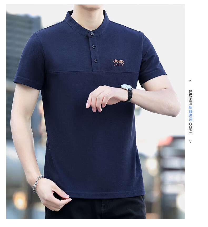 JEEP SPIRIT Jeep stand-up collar short-sleeved t-shirt men's summer men's wear 2026 new casual sports half-sleeved tops dad wear royal blue 4XL weight 176-190Jin Jin equals 0.5 kg)