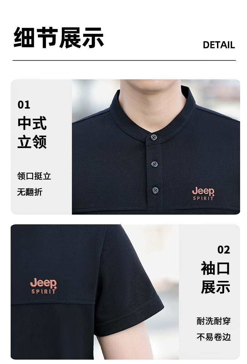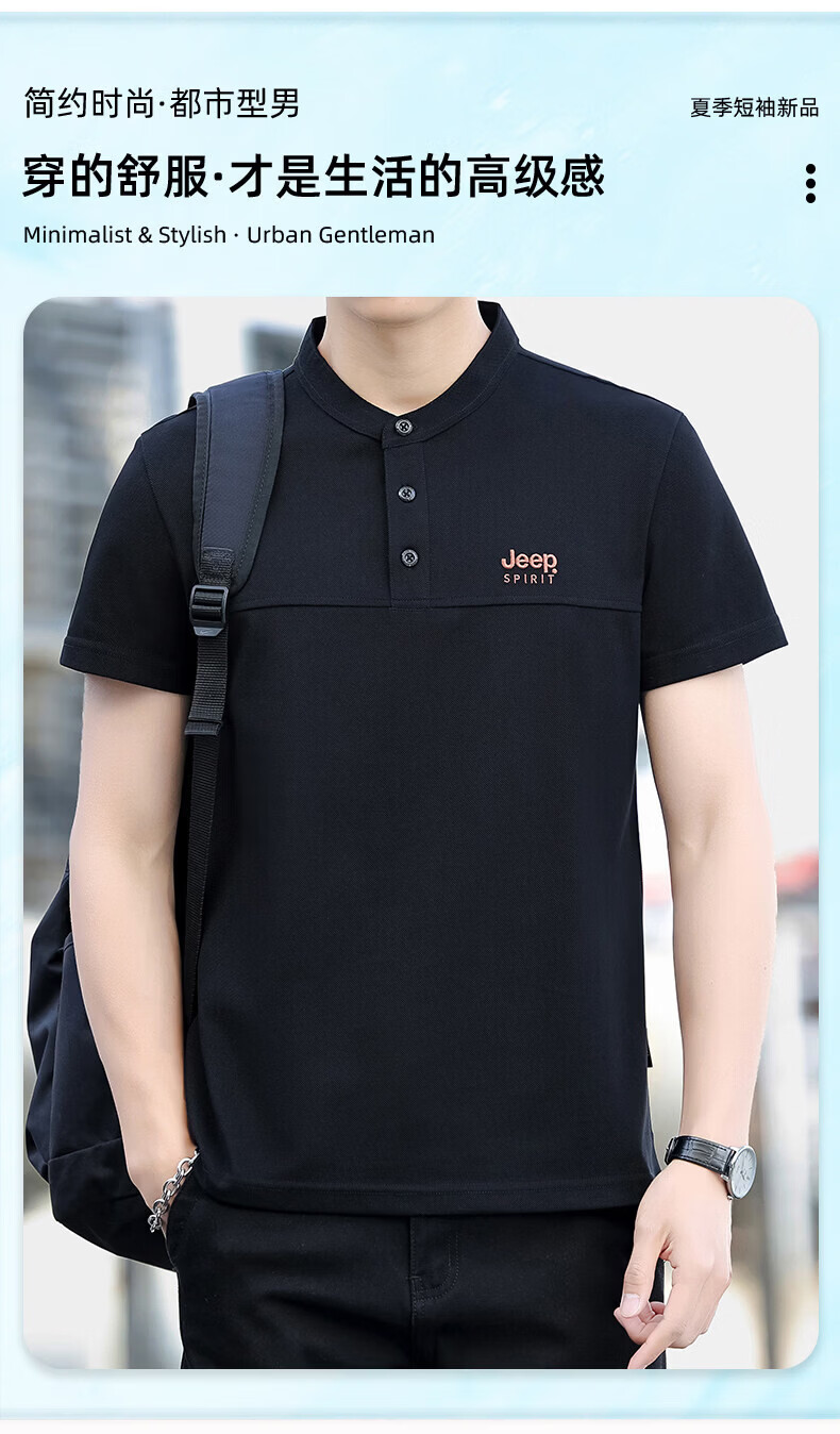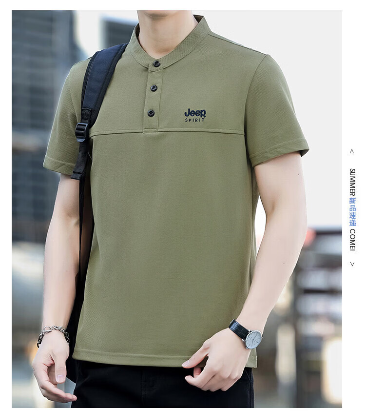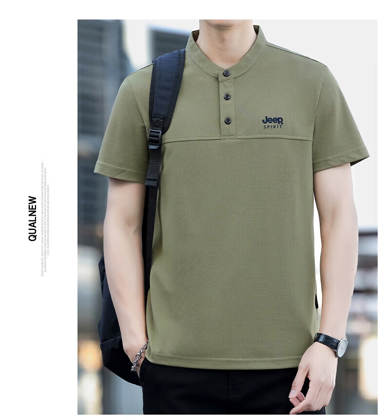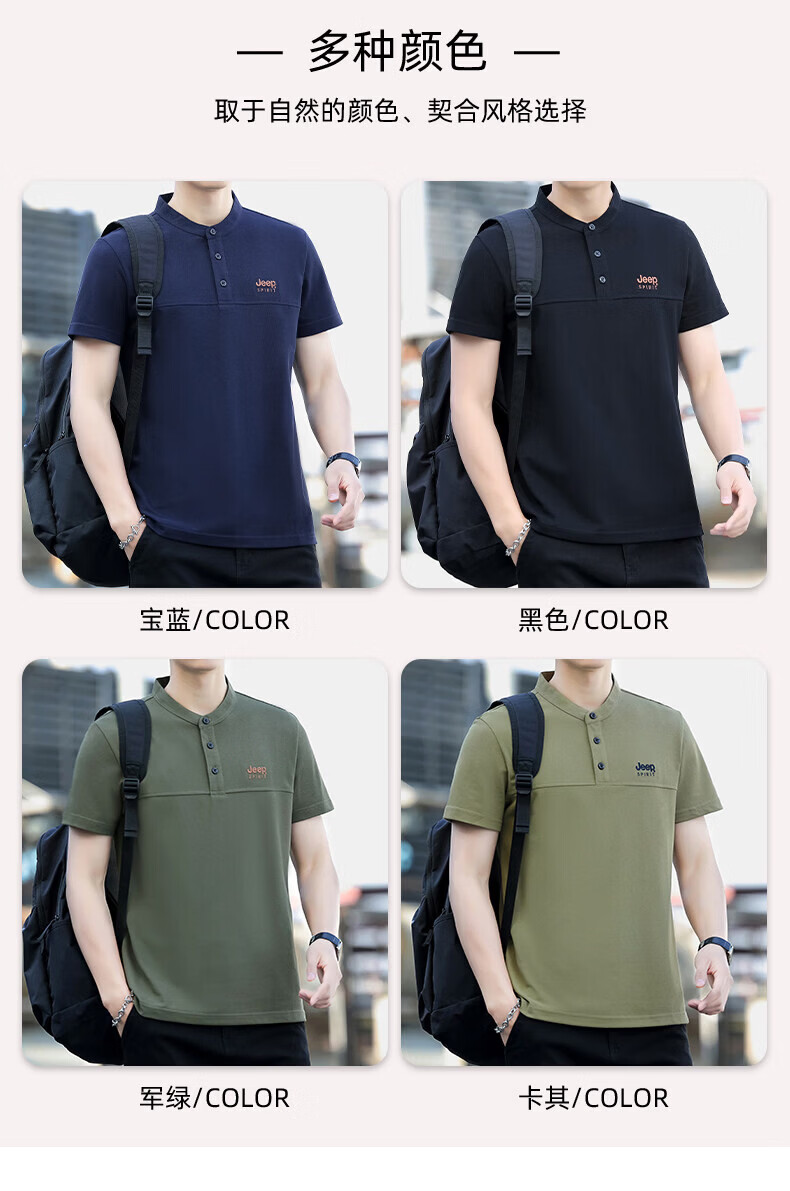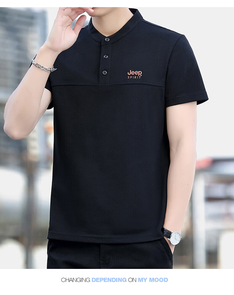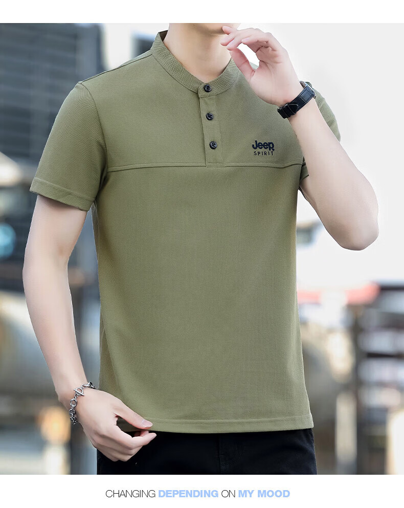 JEEP SPIRIT Jeep stand-up collar short-sleeved t-shirt men's summer men's wear 2026 new casual sports half-sleeved tops dad wear royal blue 4XL weight 176-190Jin Jin equals 0.5 kg)