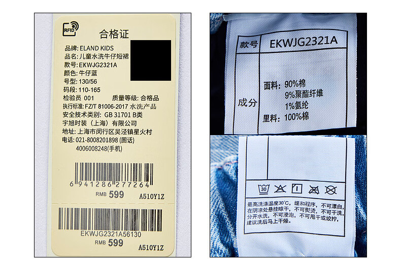 E LAND KIDS children's clothing girls' skirt 26 spring new arrival college style denim short skirt embroidered skirt L/Indigo denim blue/56 120