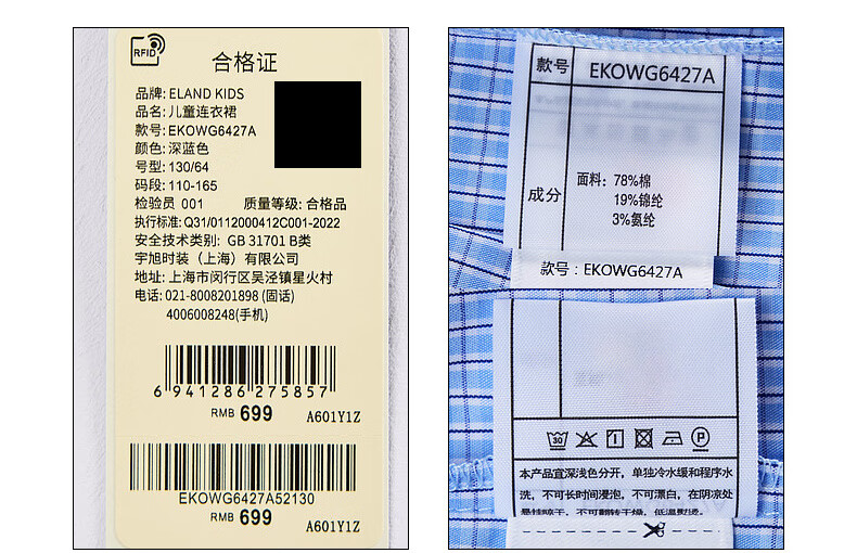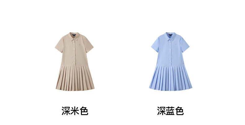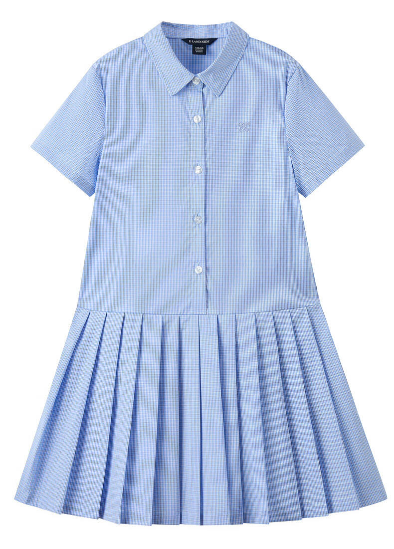 E LAND KIDS children's clothing girls' shirt dress 26 summer new college style lapel plaid dress D/Beige dark beige/37 160
