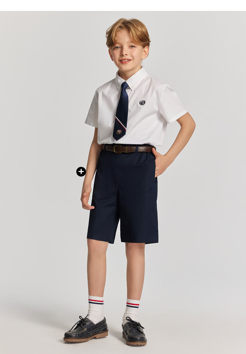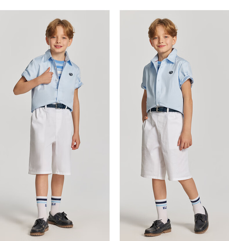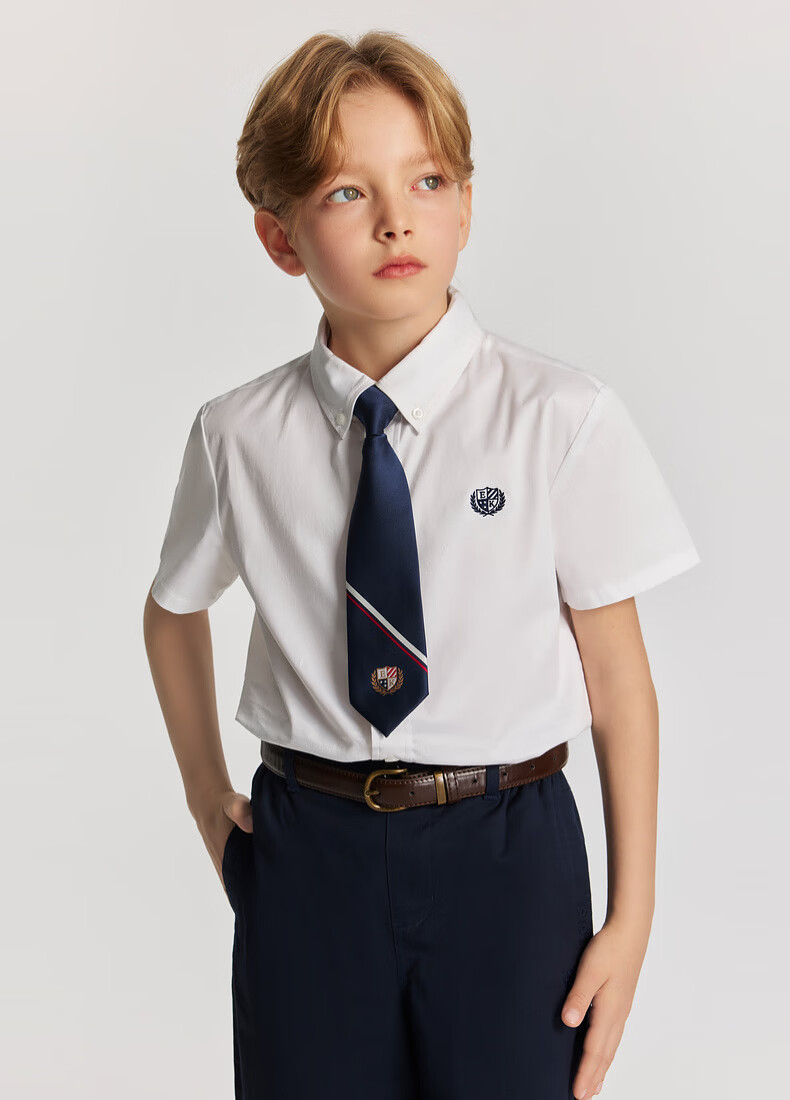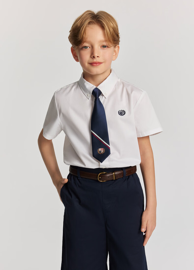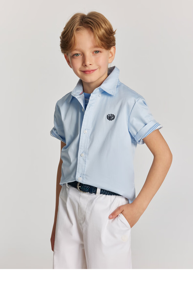 E LAND KIDS pedophile boys' shirt 26 summer new casual college style embroidered lapel short sleeve Ivory ivory/39 110