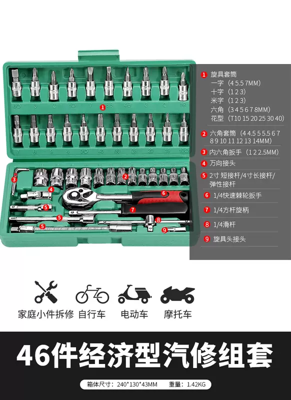 Yusenyi 46-piece set Hex socket tool combination Xiaofei quick ratchet wrench set household tool box Upgraded 72-tooth curved handle auto repair 37-piece set