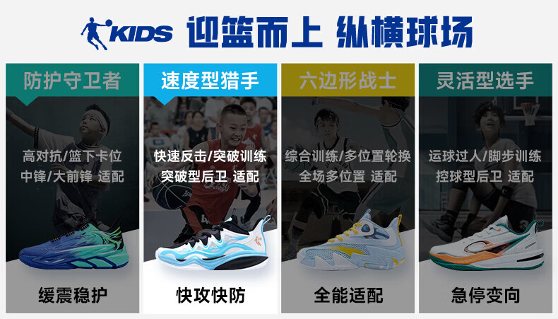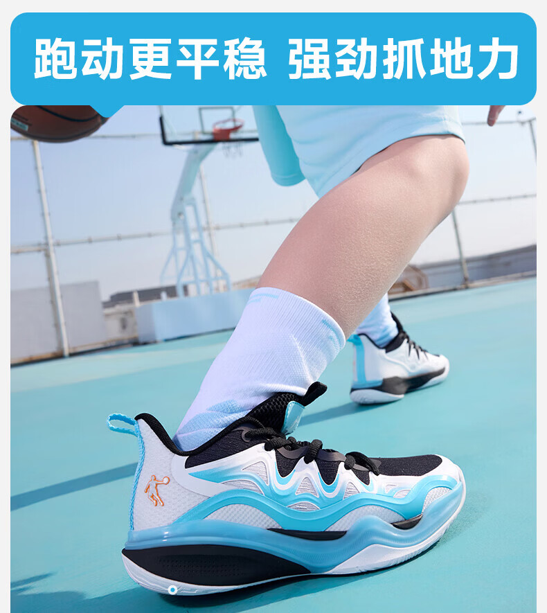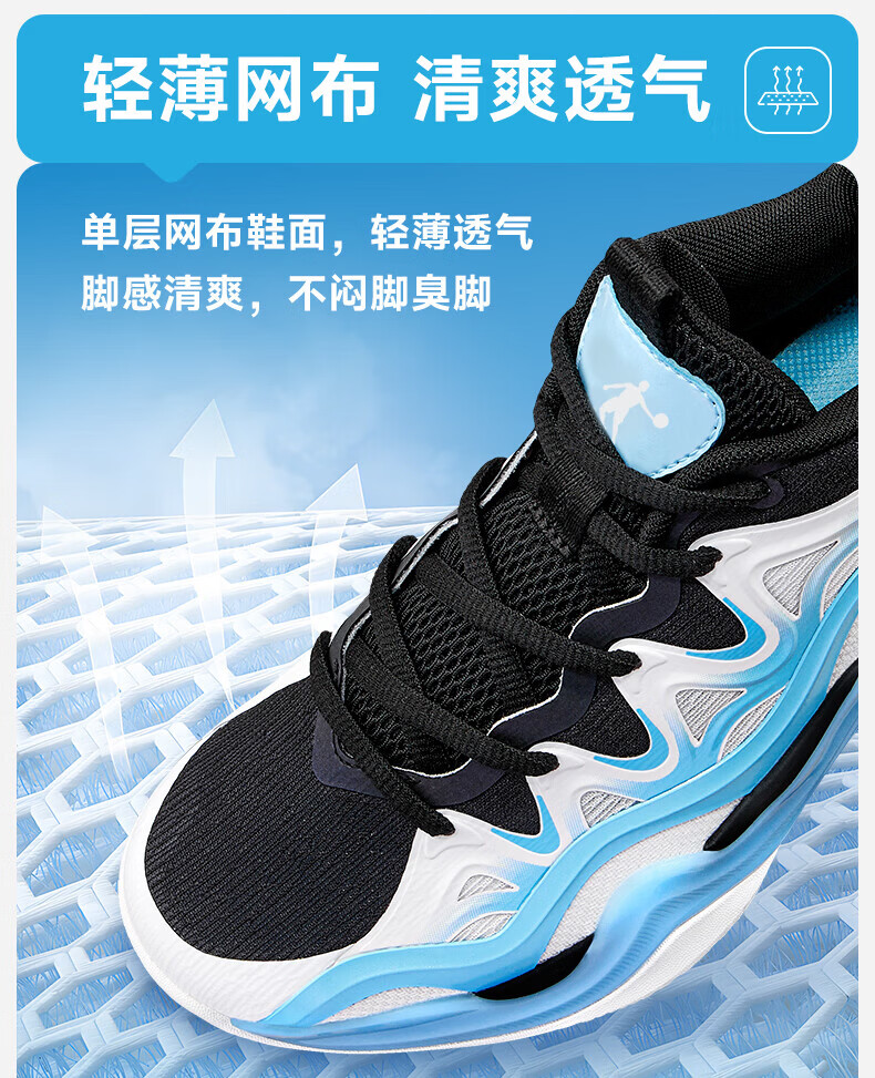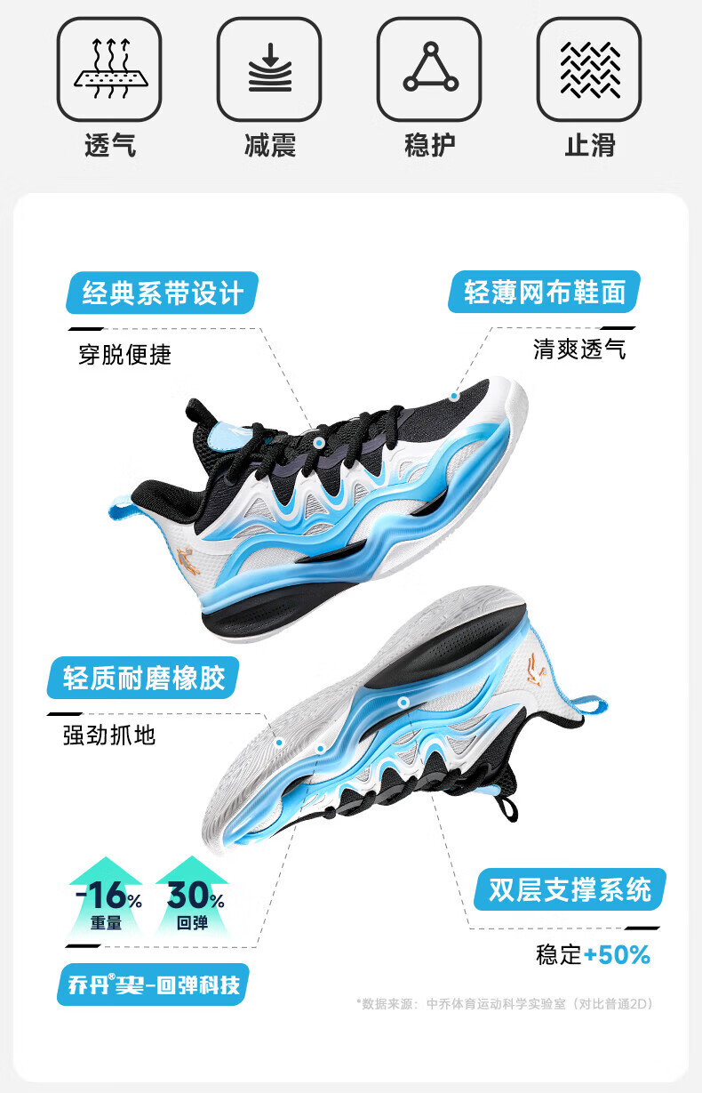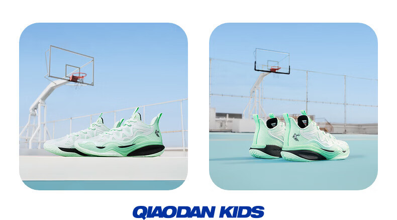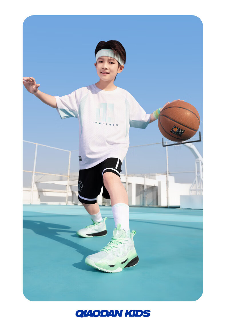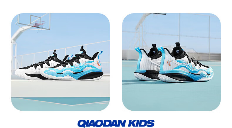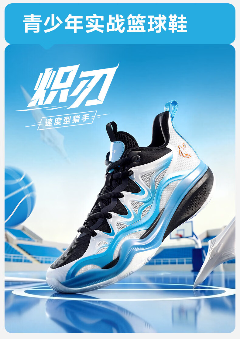 Jordan (QIAODAN) Blazing Blade children's basketball shoes for boys 2026 summer new children's shoes youth shock-absorbing rebound breathable sports shoes pure white/black 34
