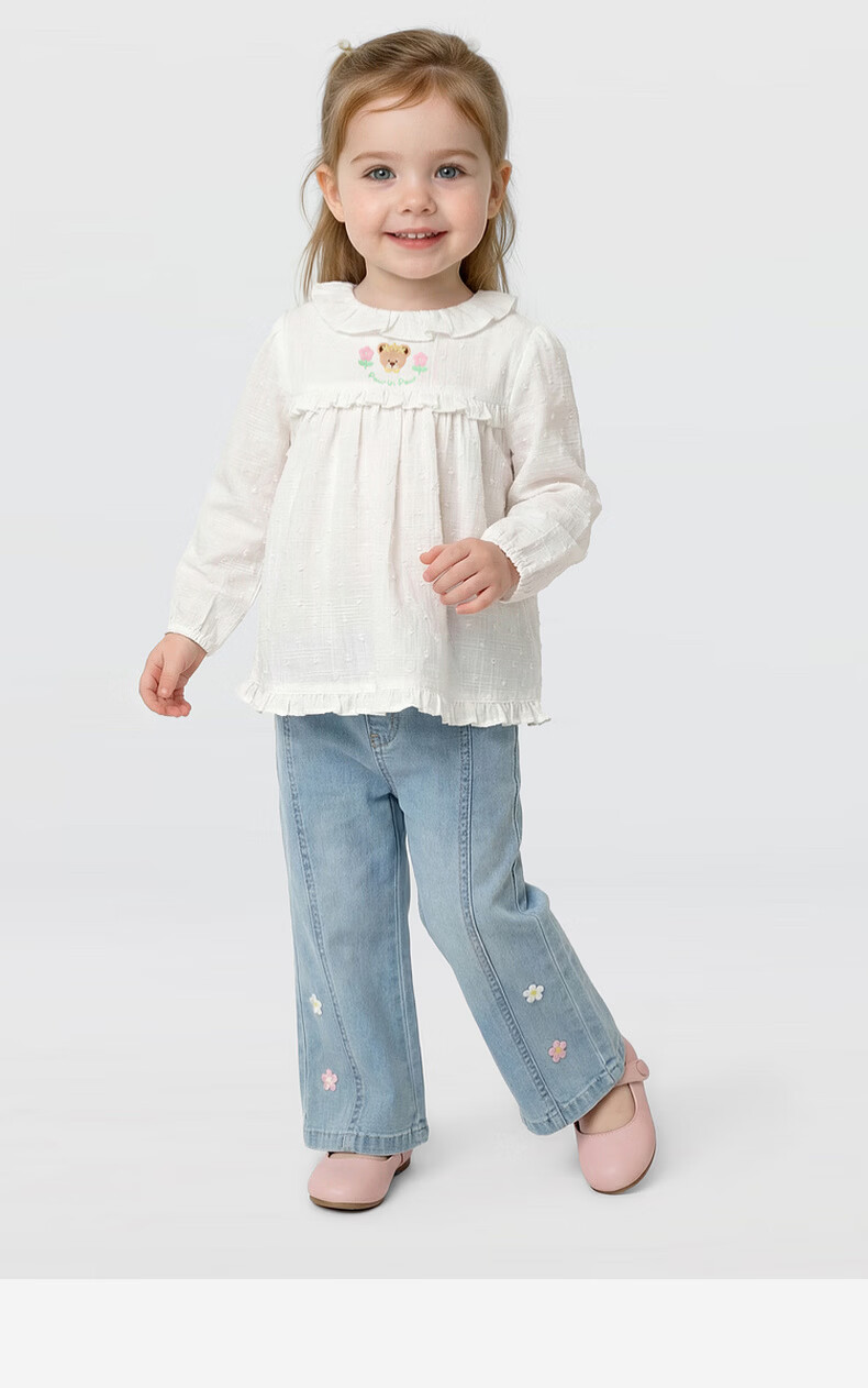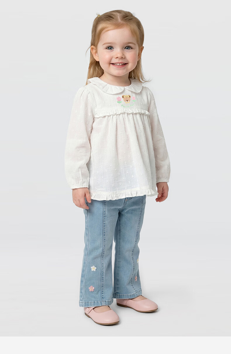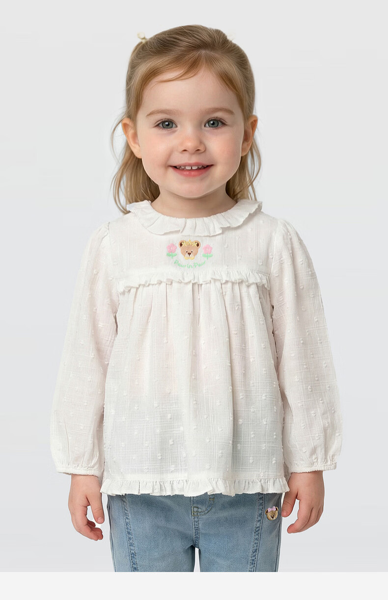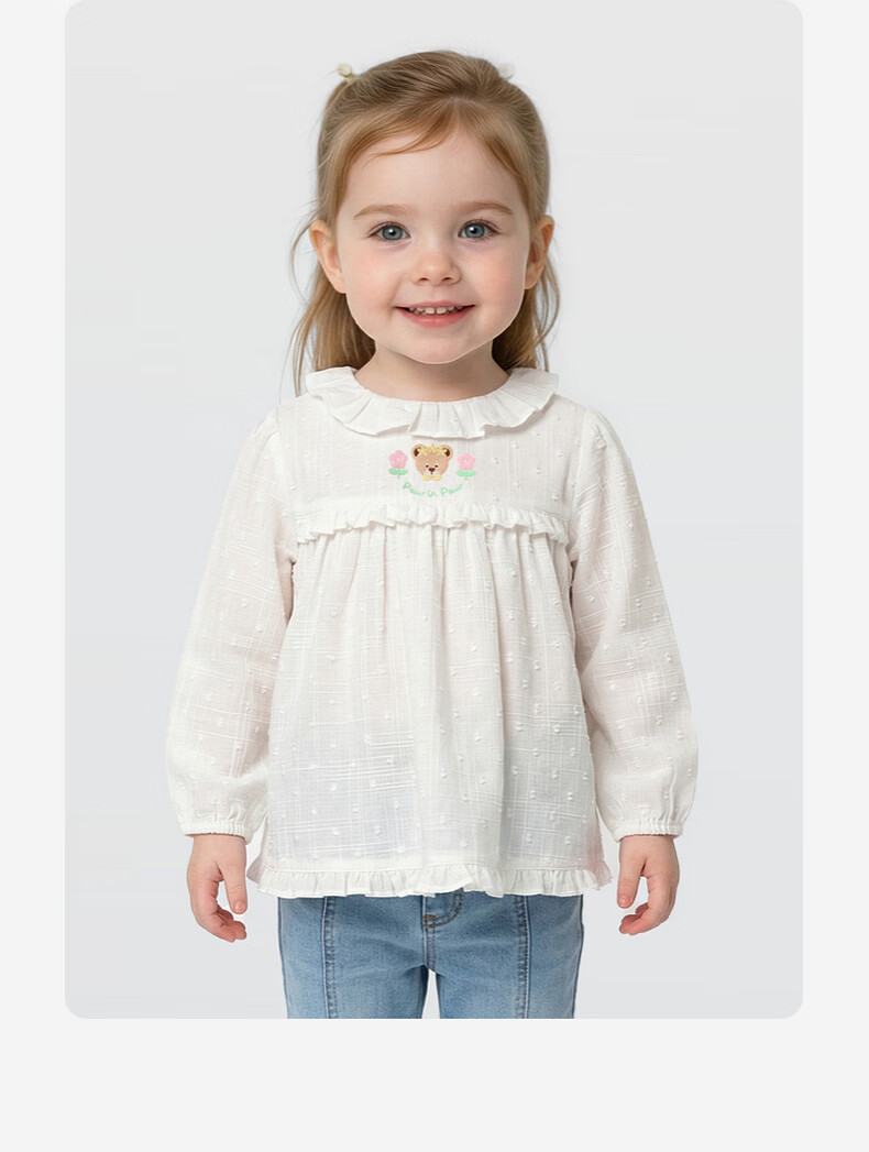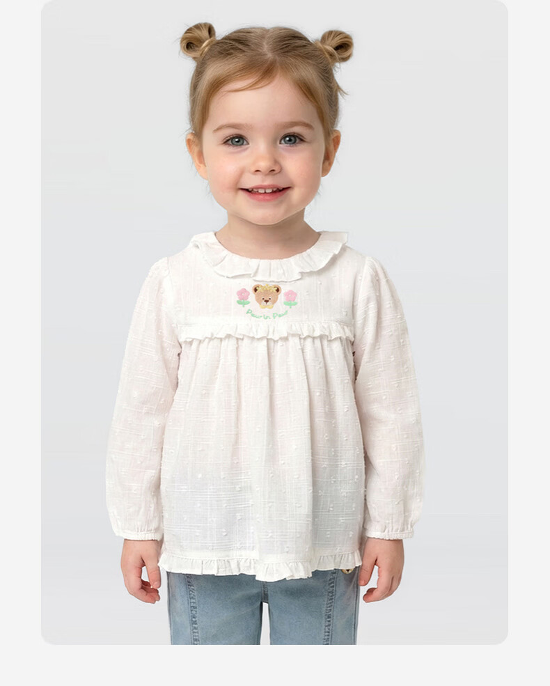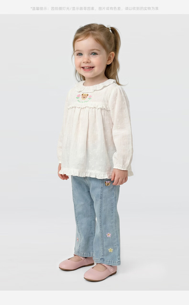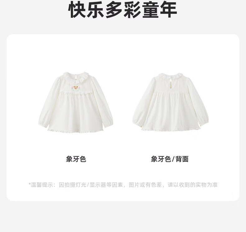 PawinPaw cartoon bear children's clothing 26 spring new baby girl round neck shirt loose Ivory ivory/39 110