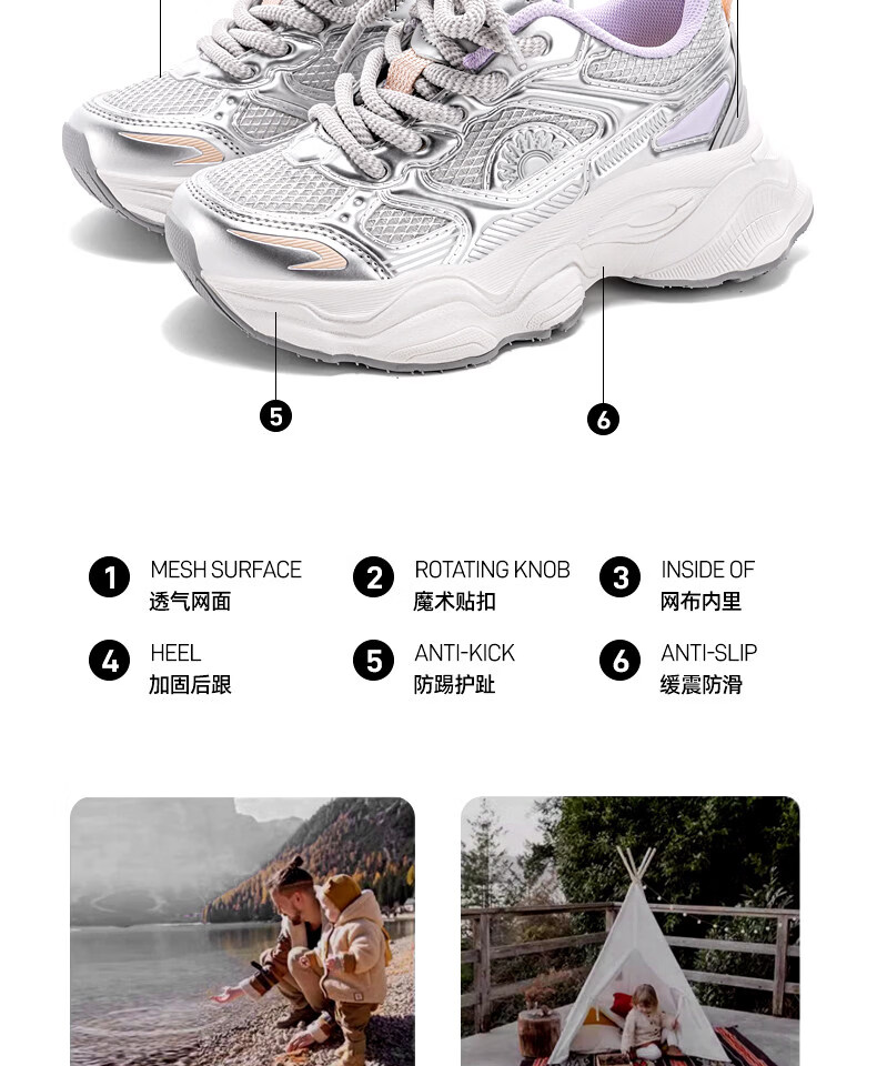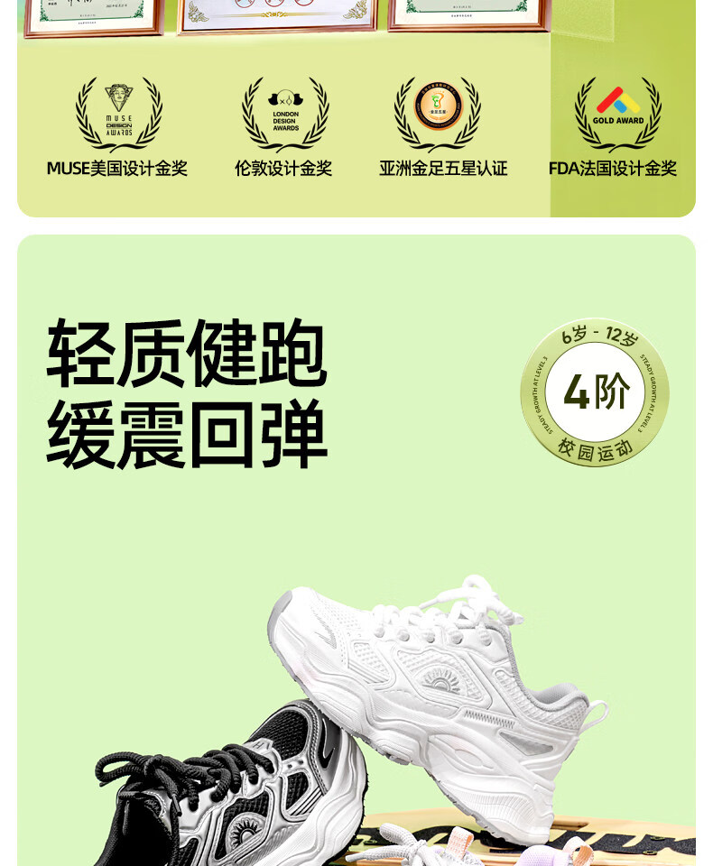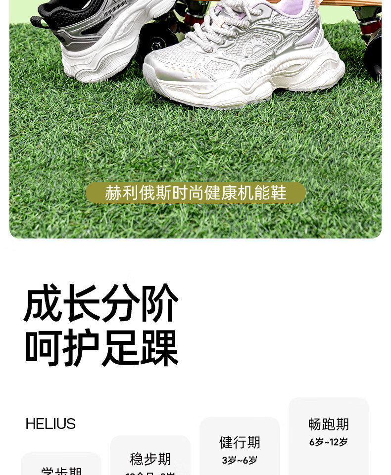 Helios 2026 spring new soft-soled functional shoes for boys and girls, sports shoes for children, lightweight mesh shoes, white 33, inner length 21.3cm, foot length about 19.8-20.3cm