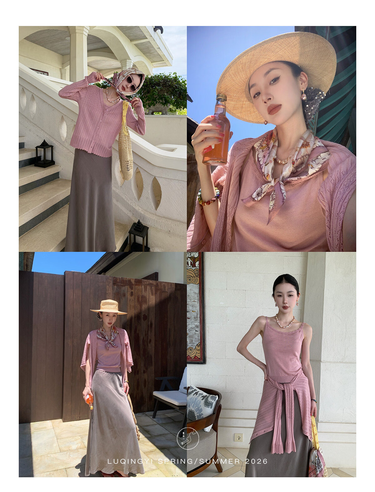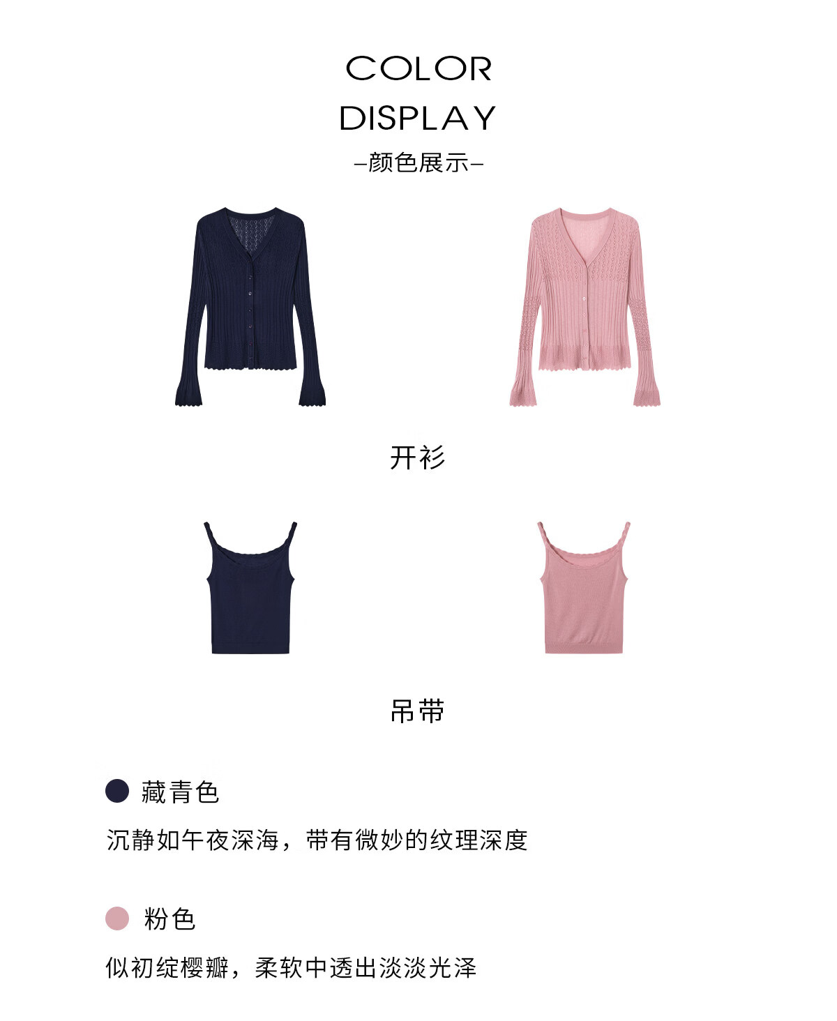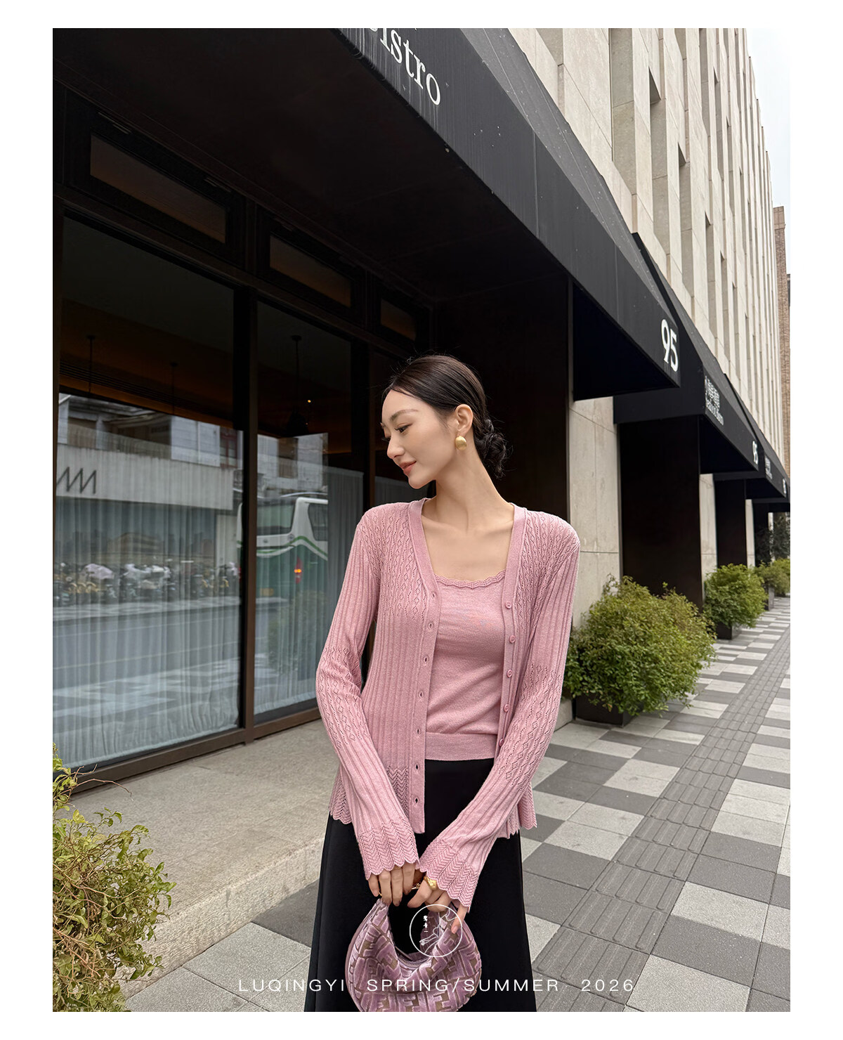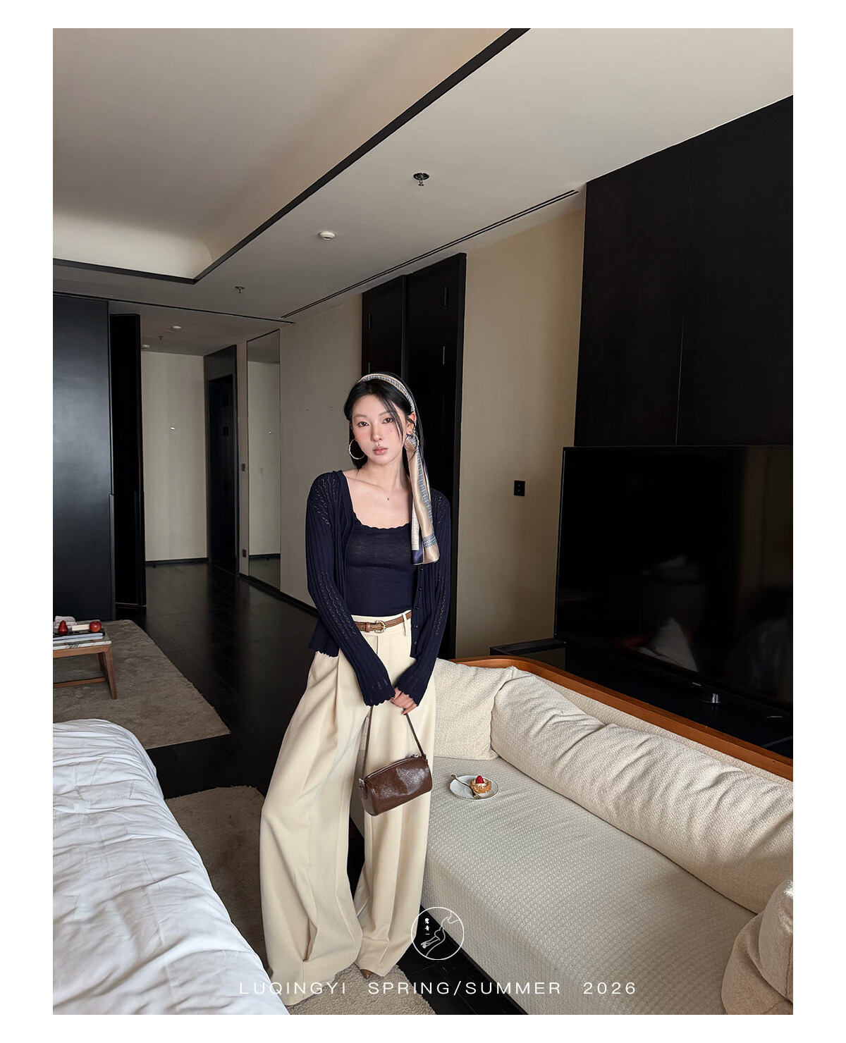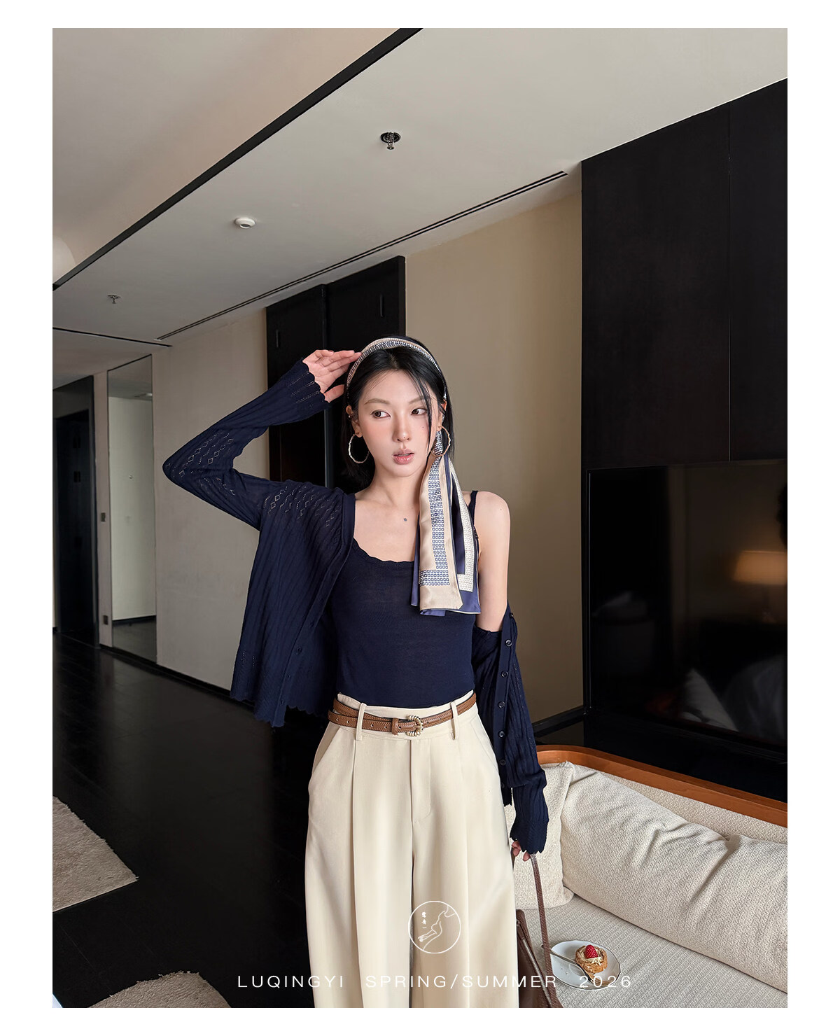 Lu Qingyi original and shy skin-friendly Lyocell knitted cardigan women's spring retro cable hollow camisole navy cardigan S suspender to wear for photos
