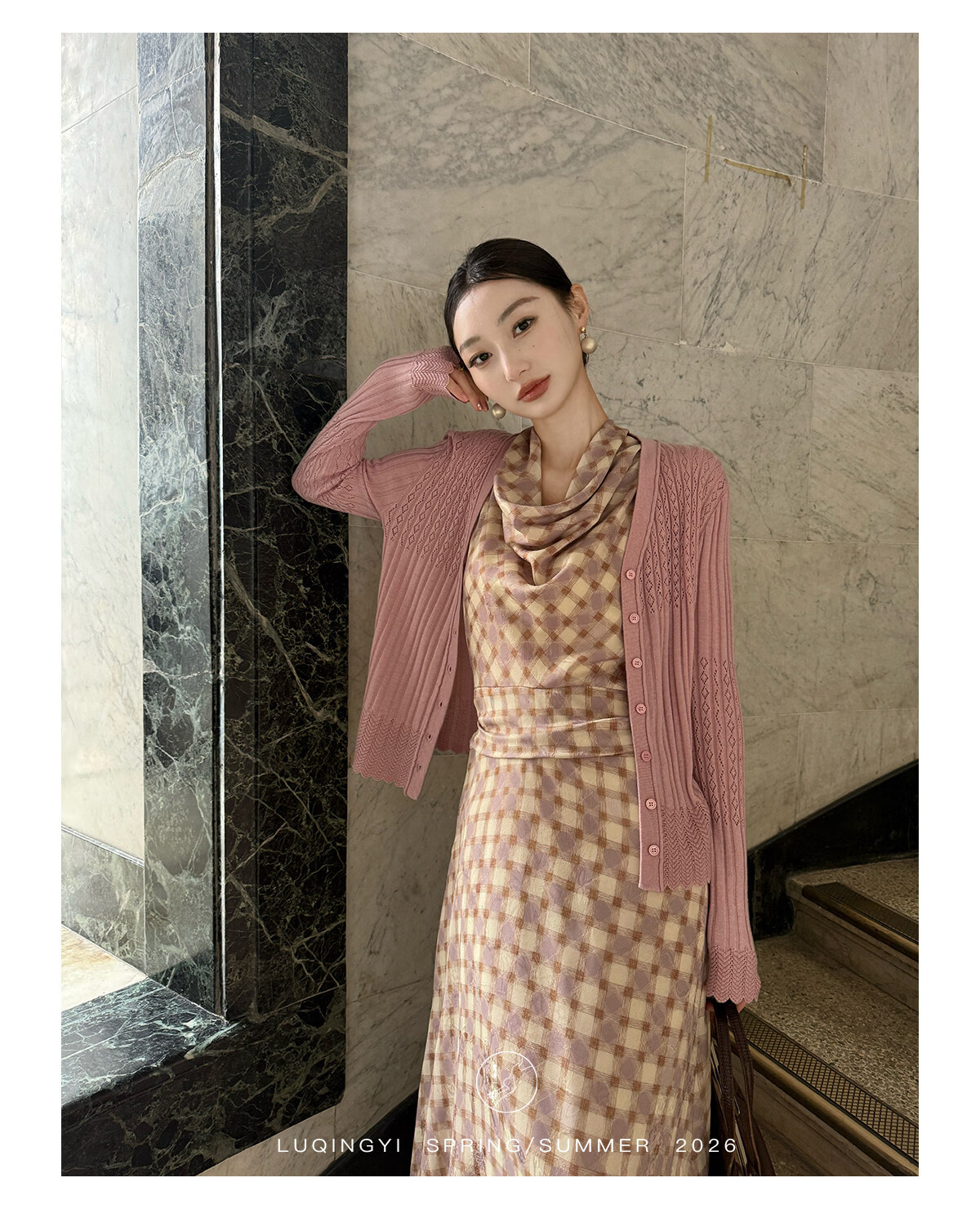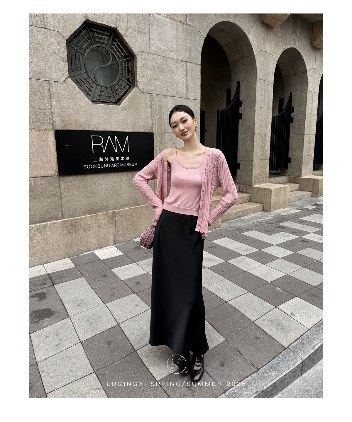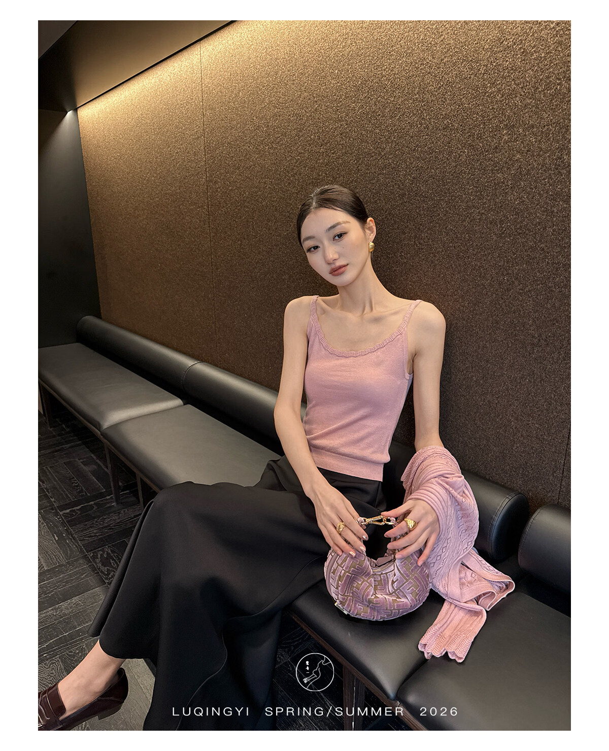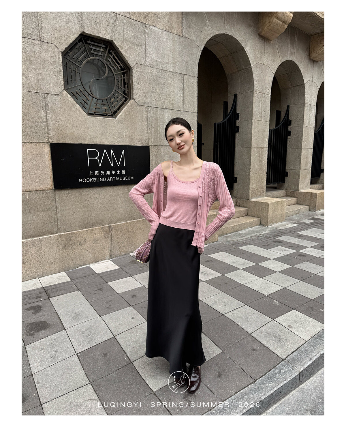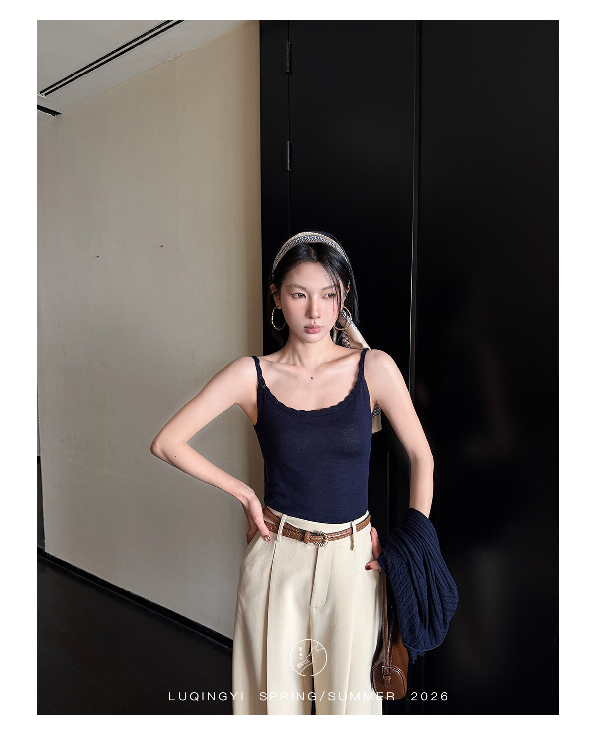 Lu Qingyi original and shy skin-friendly Lyocell knitted cardigan women's spring retro cable hollow camisole navy cardigan S suspender to wear for photos