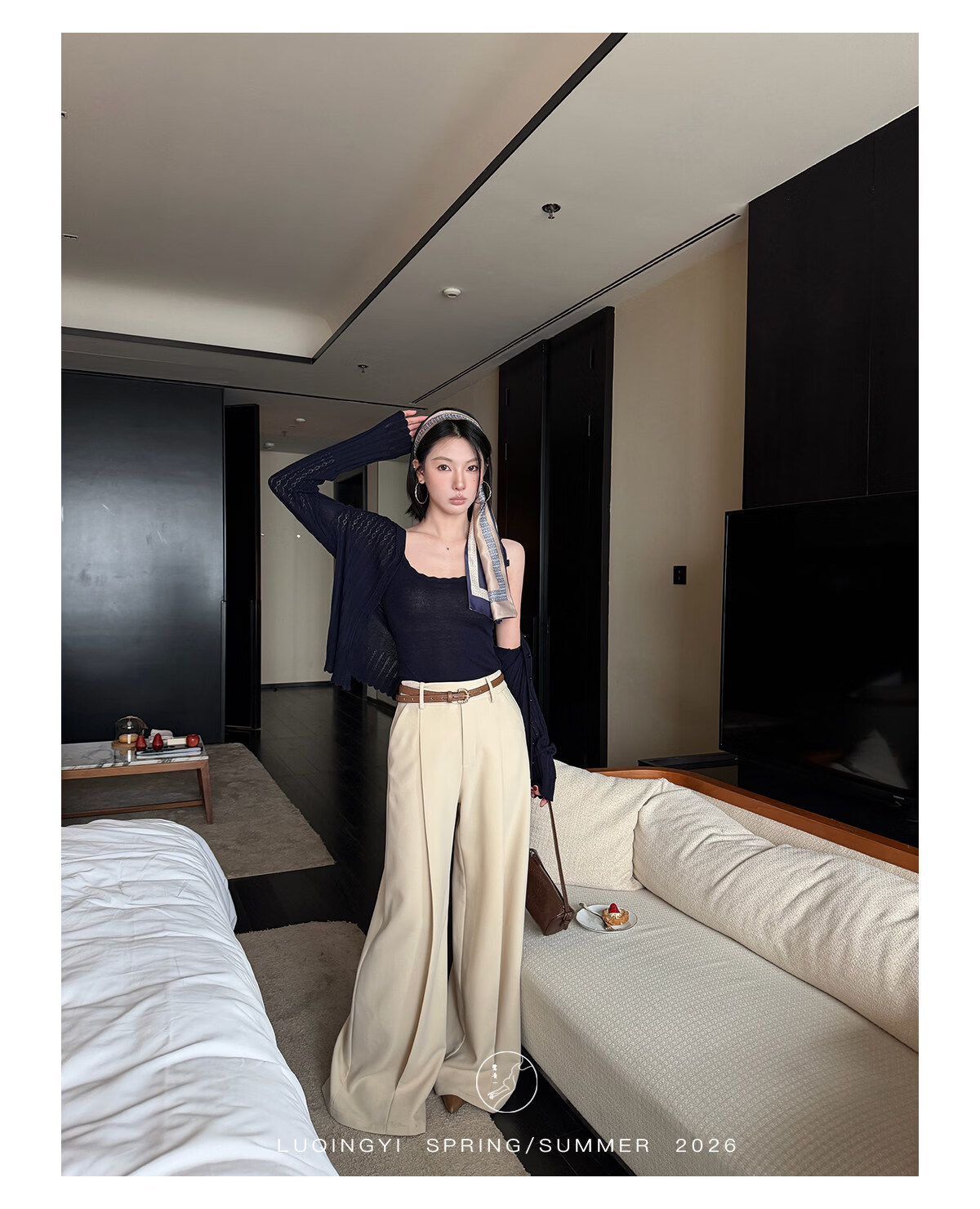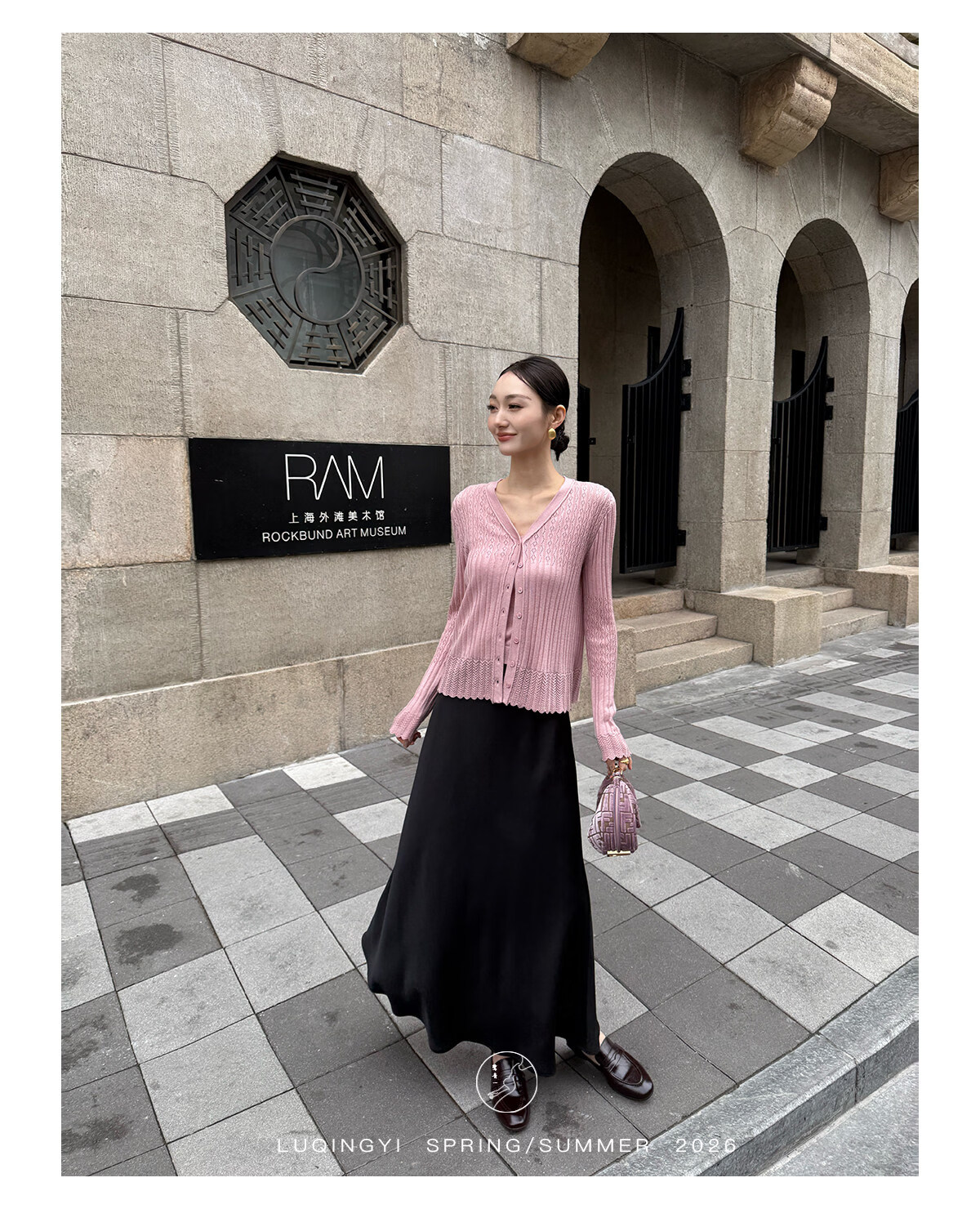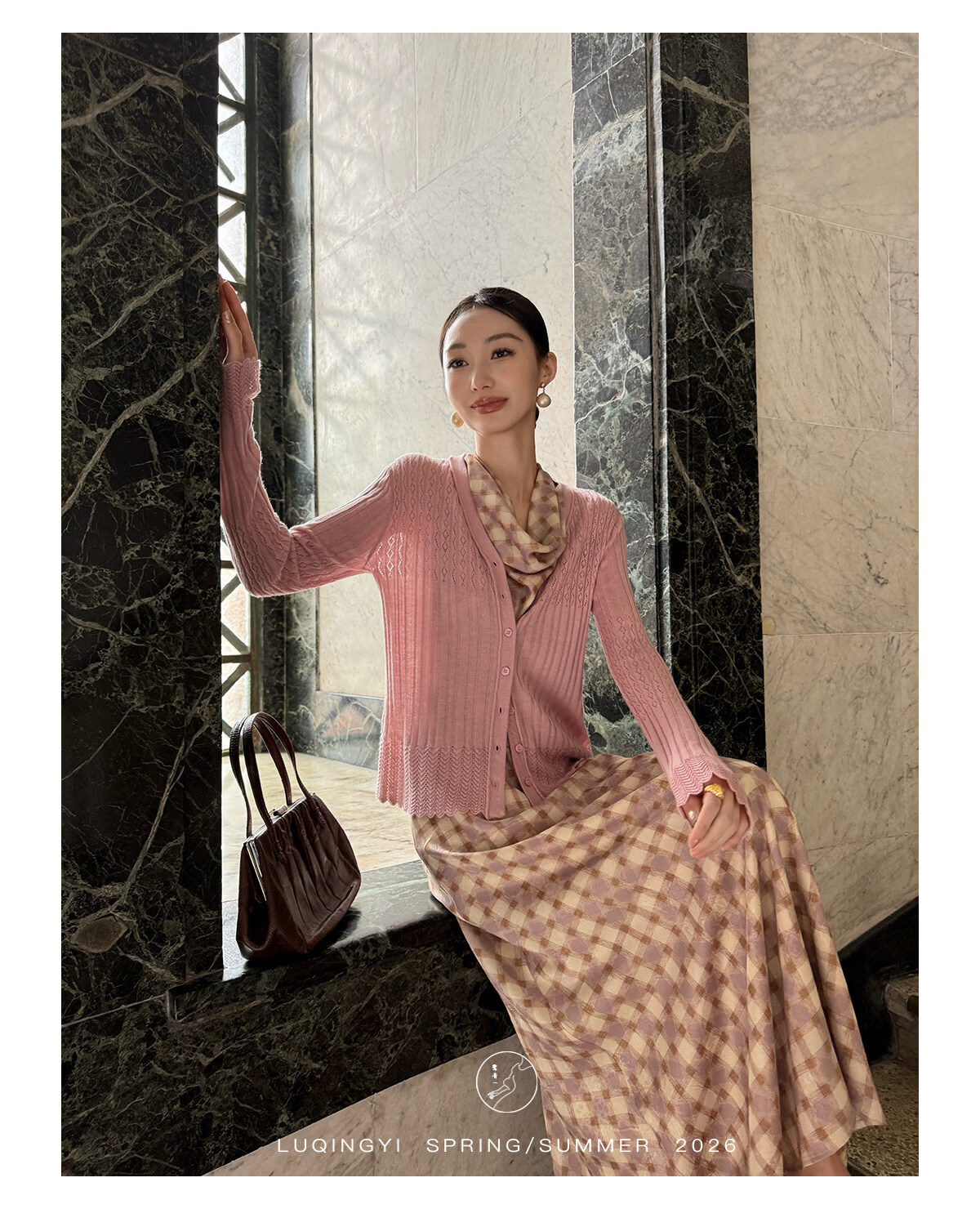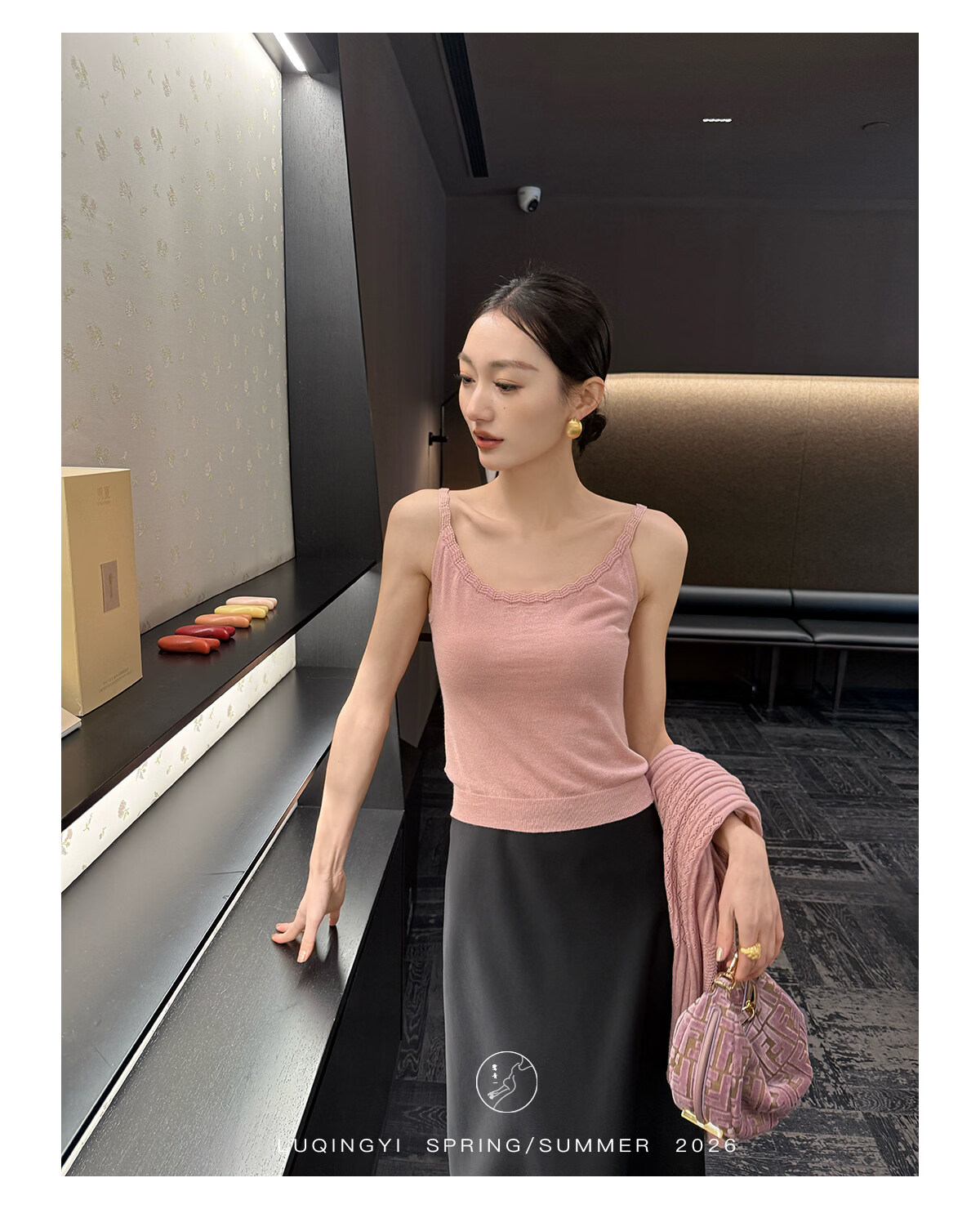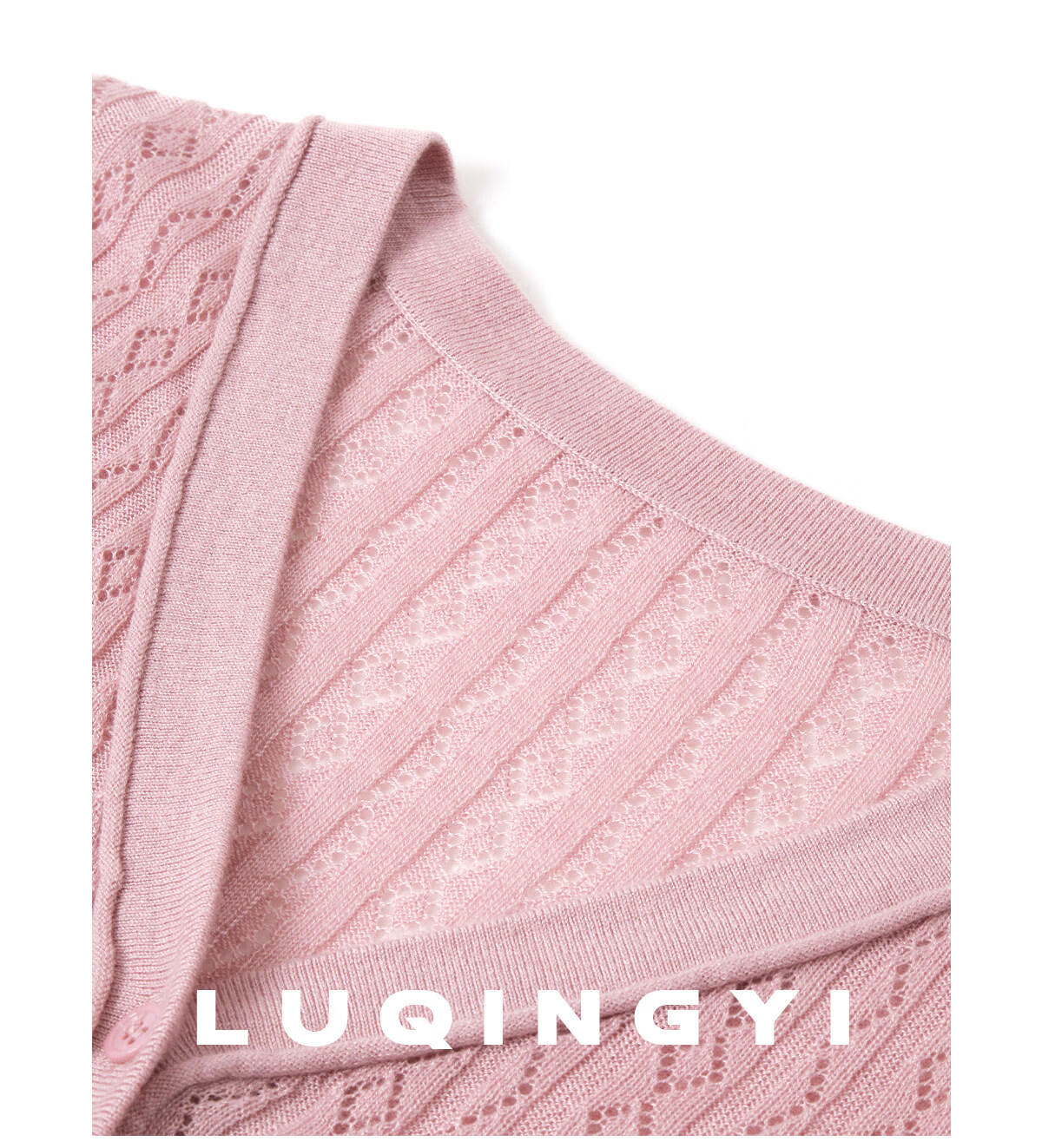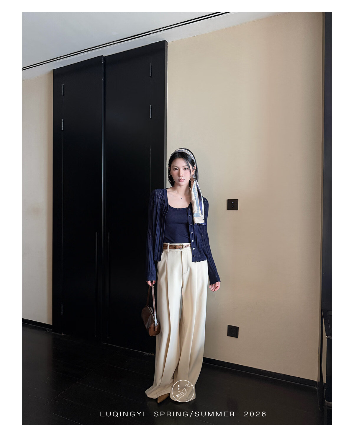 Lu Qingyi original and shy skin-friendly Lyocell knitted cardigan women's spring retro cable hollow camisole navy cardigan S suspender to wear for photos