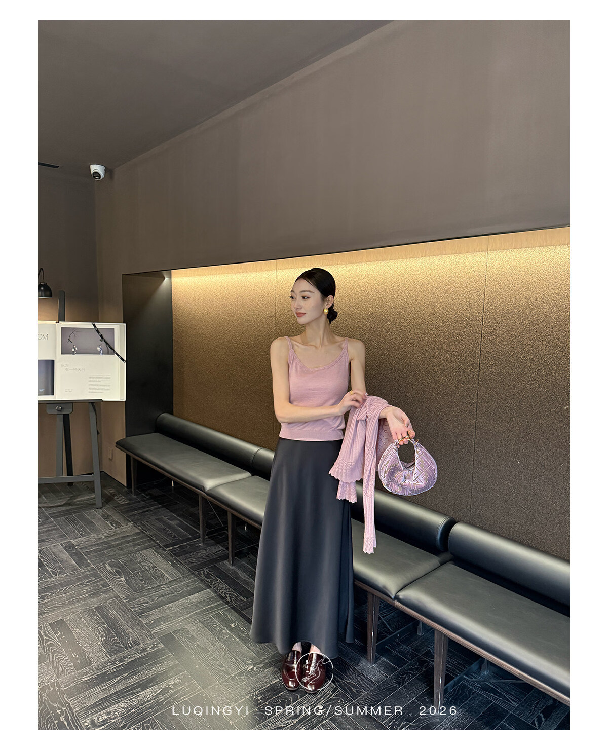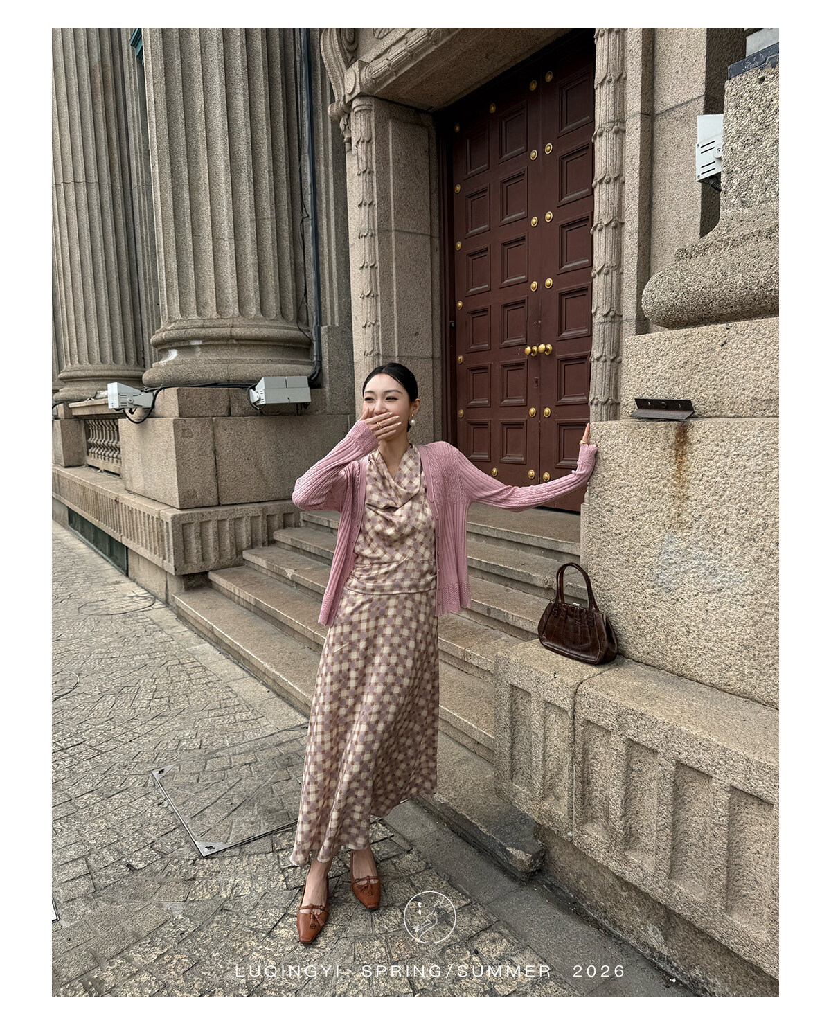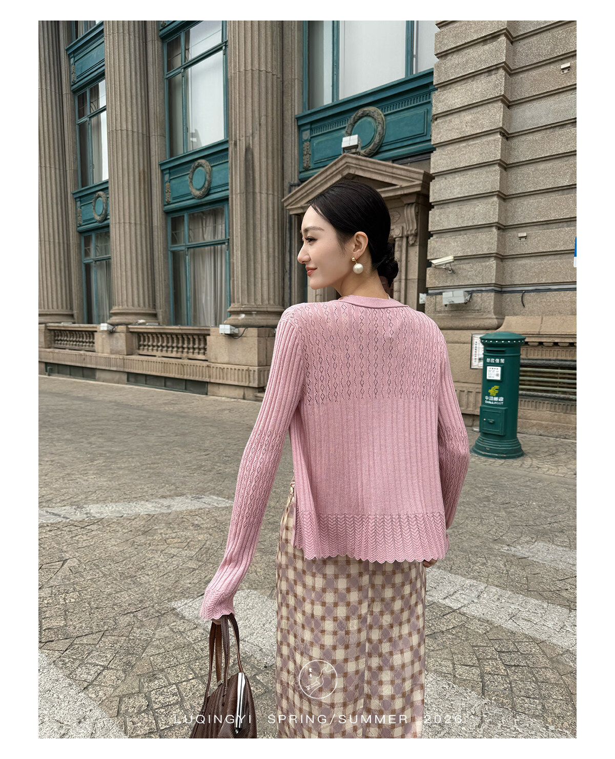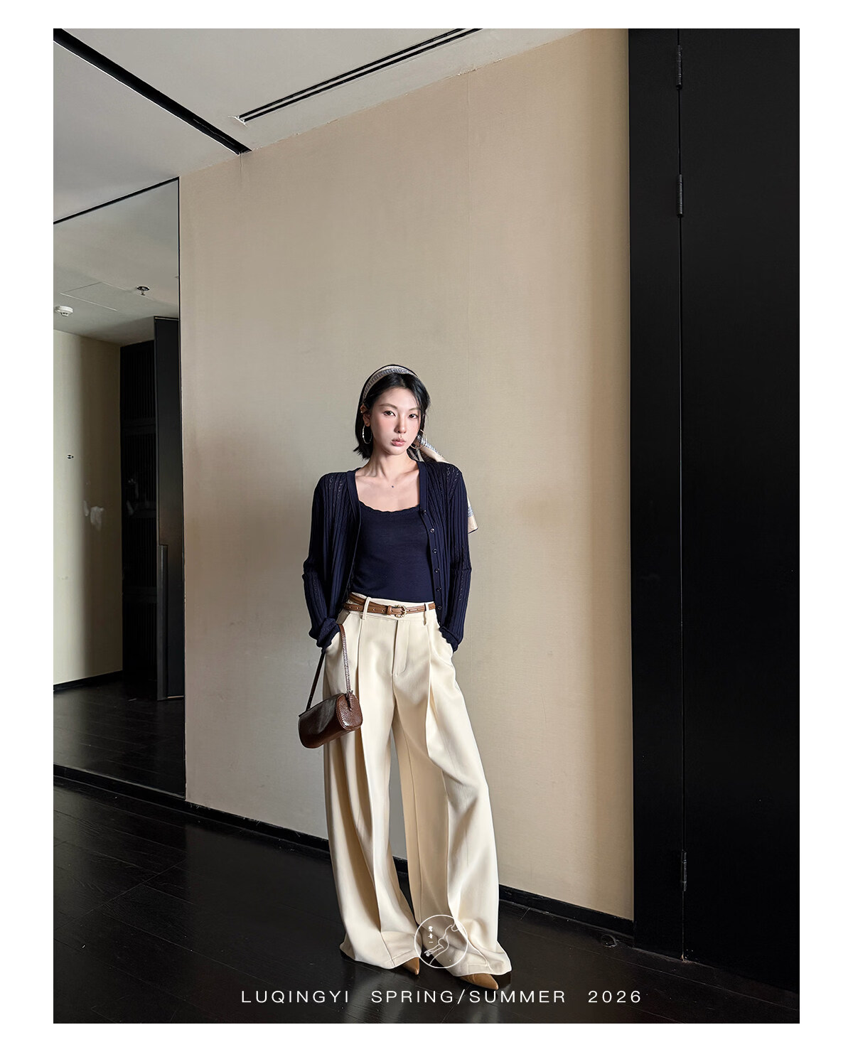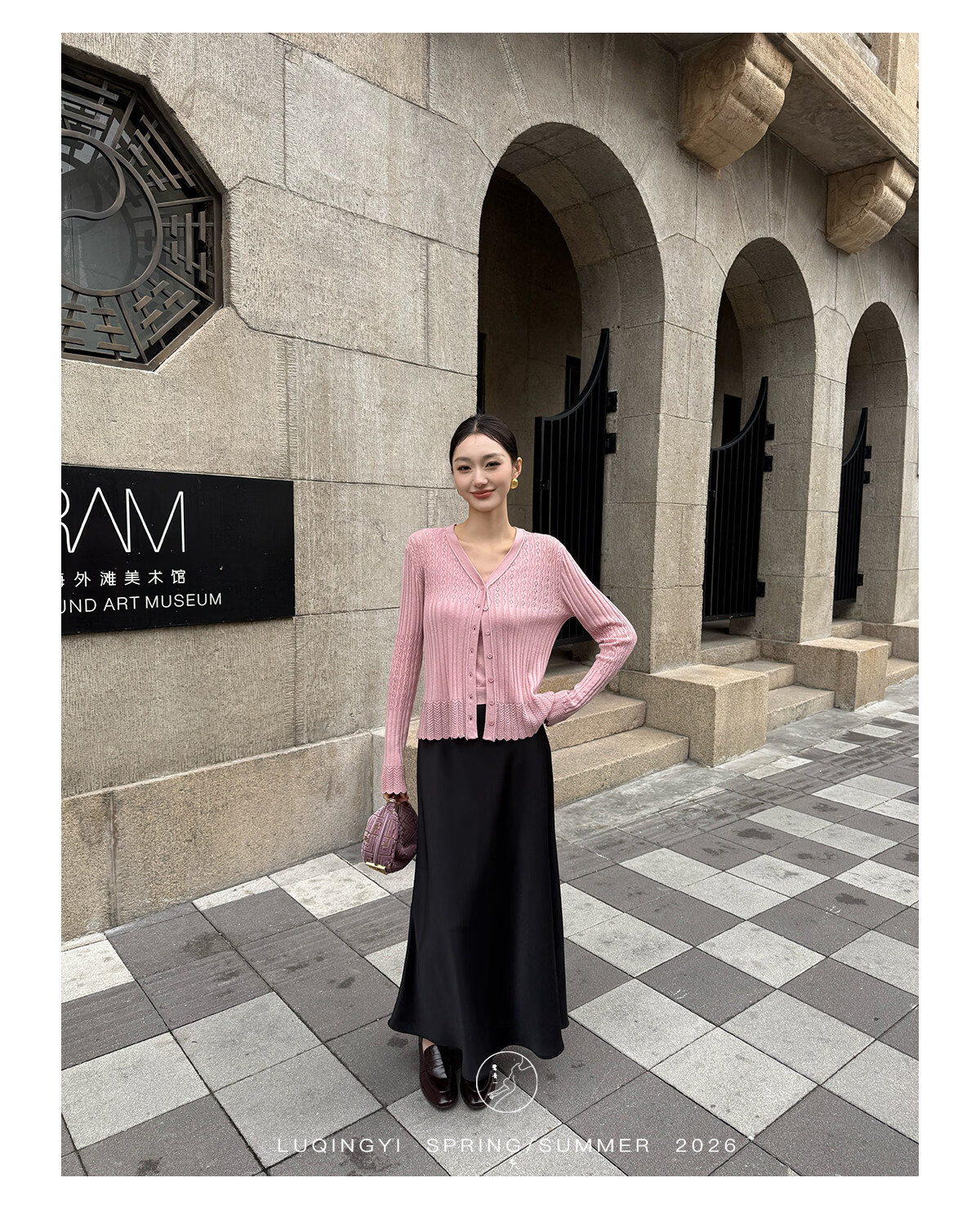 Lu Qingyi original and shy skin-friendly Lyocell knitted cardigan women's spring retro cable hollow camisole navy cardigan S suspender to wear for photos