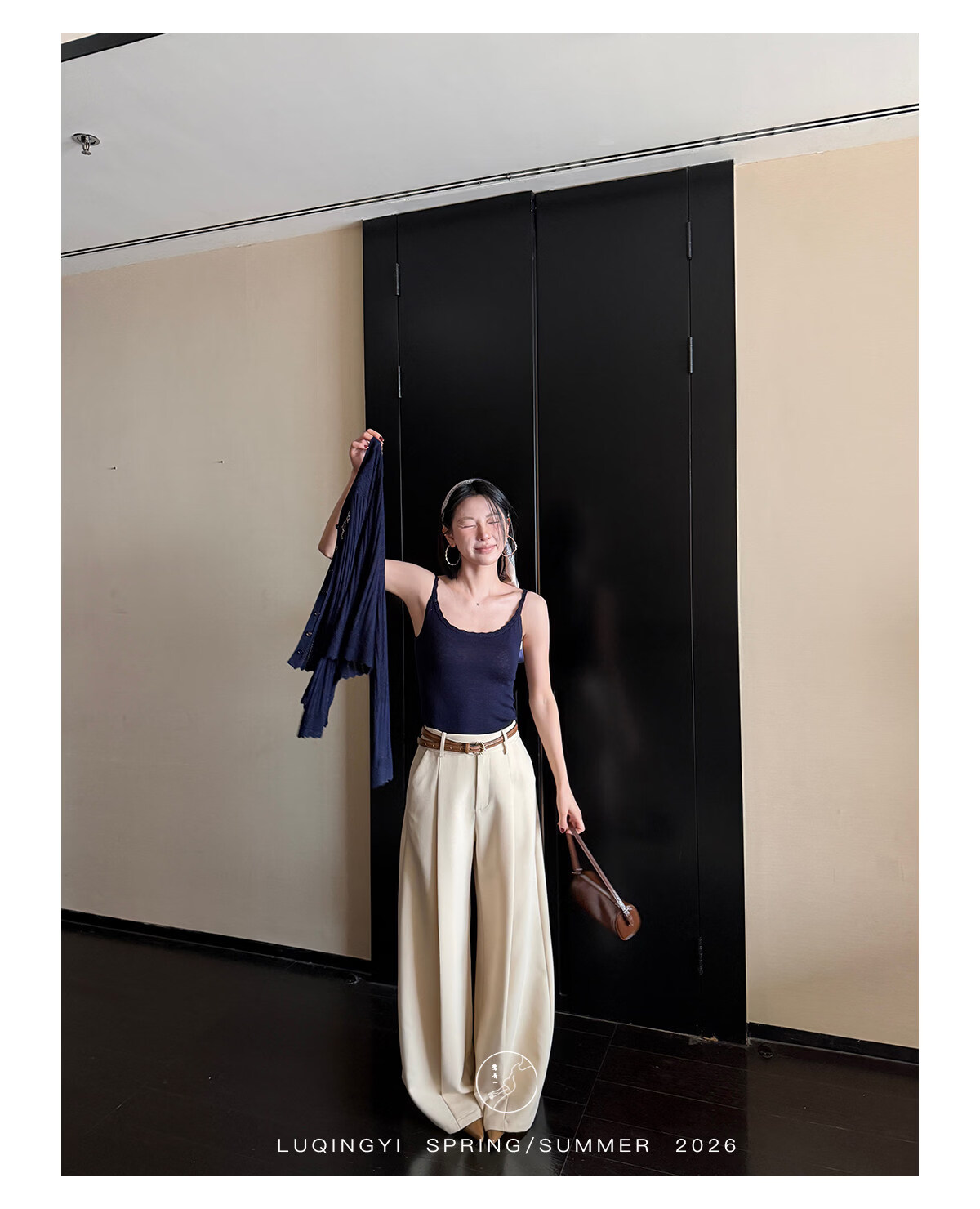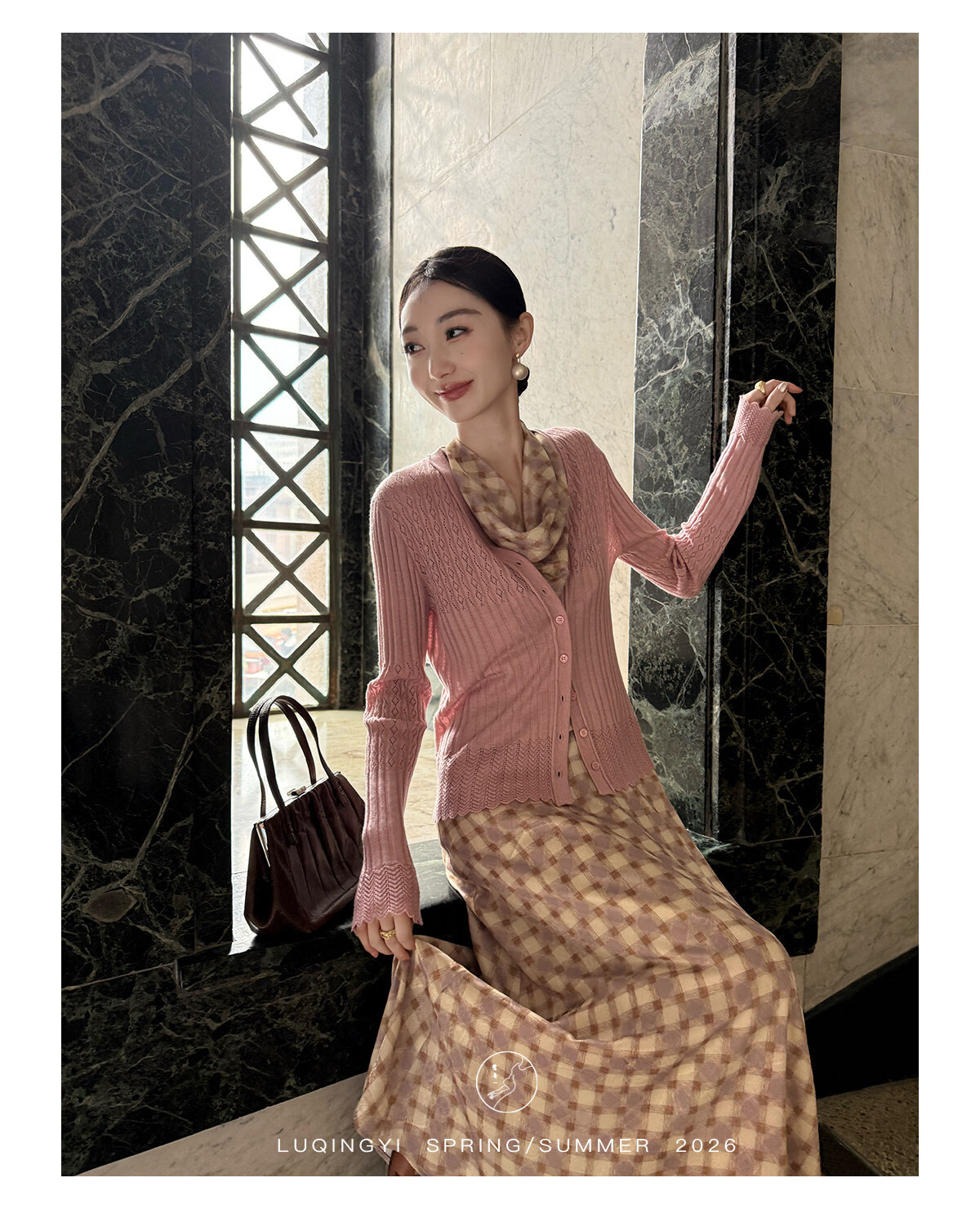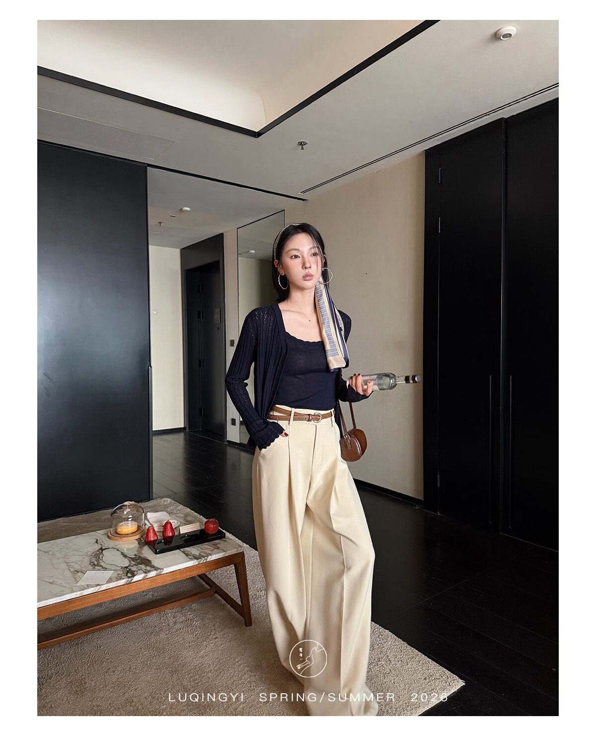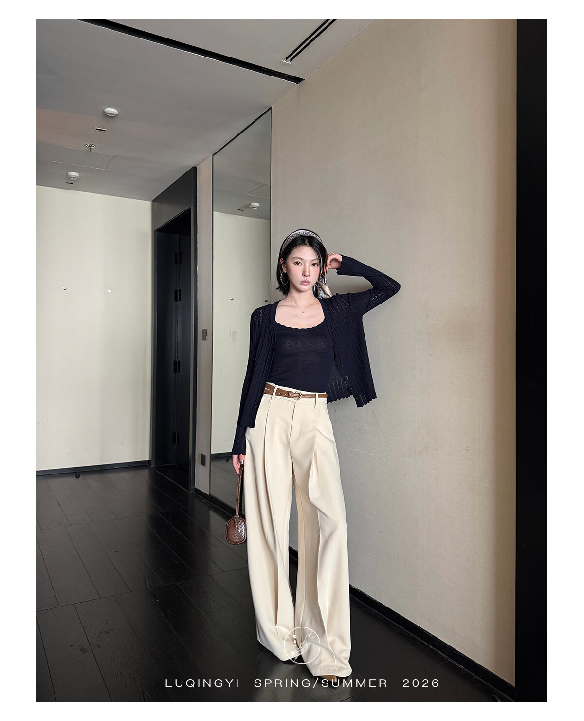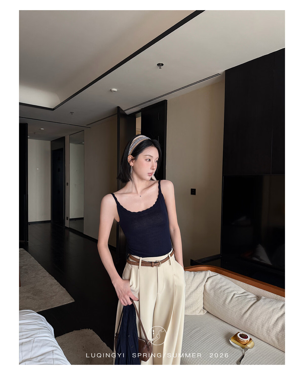 Lu Qingyi original and shy skin-friendly Lyocell knitted cardigan women's spring retro cable hollow camisole navy cardigan S suspender to wear for photos