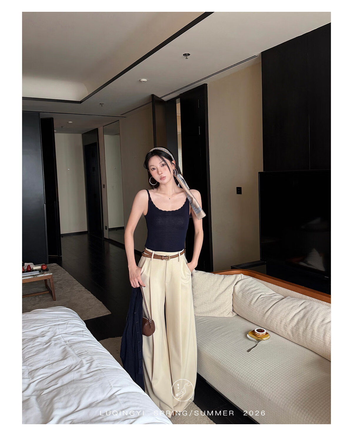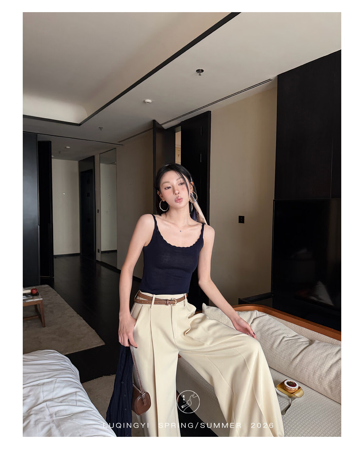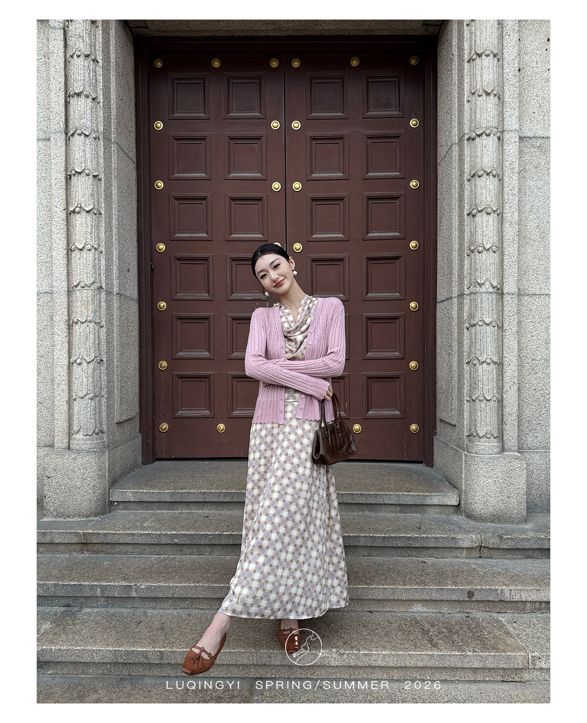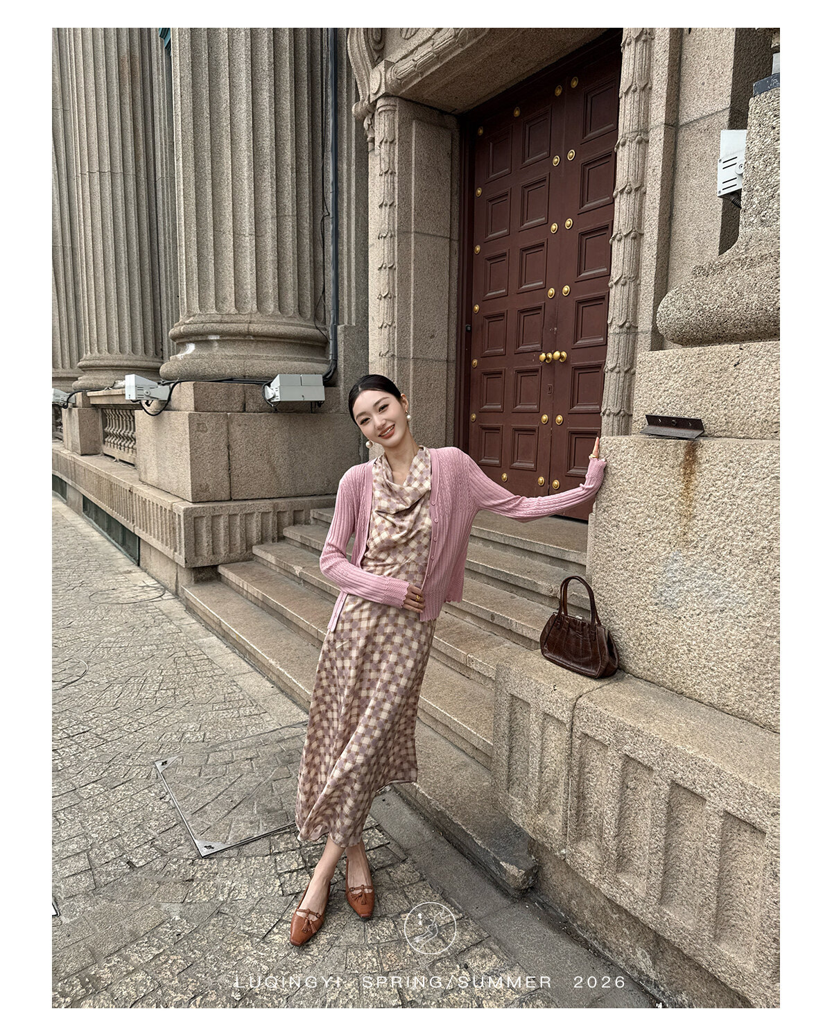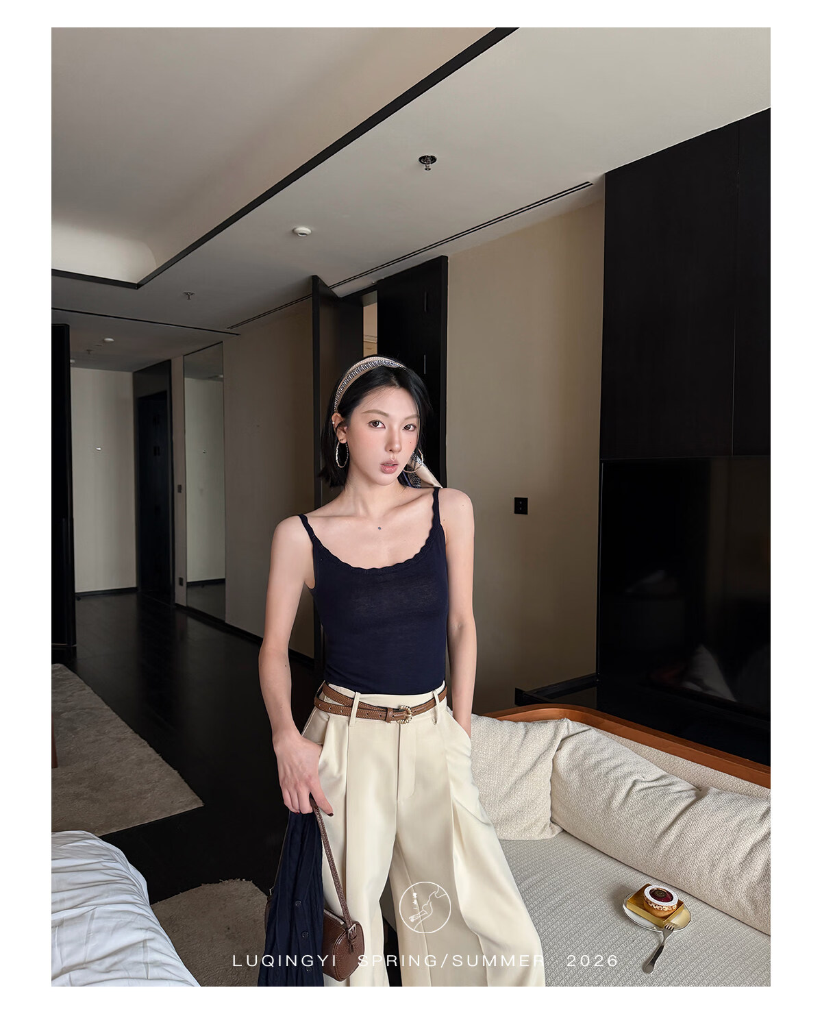 Lu Qingyi original and shy skin-friendly Lyocell knitted cardigan women's spring retro cable hollow camisole navy cardigan S suspender to wear for photos