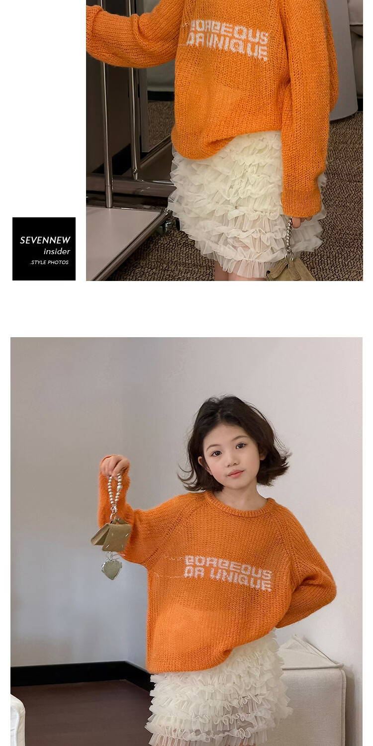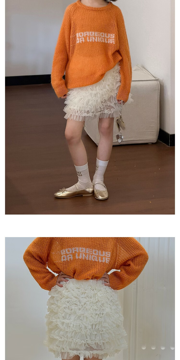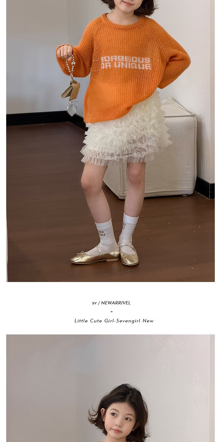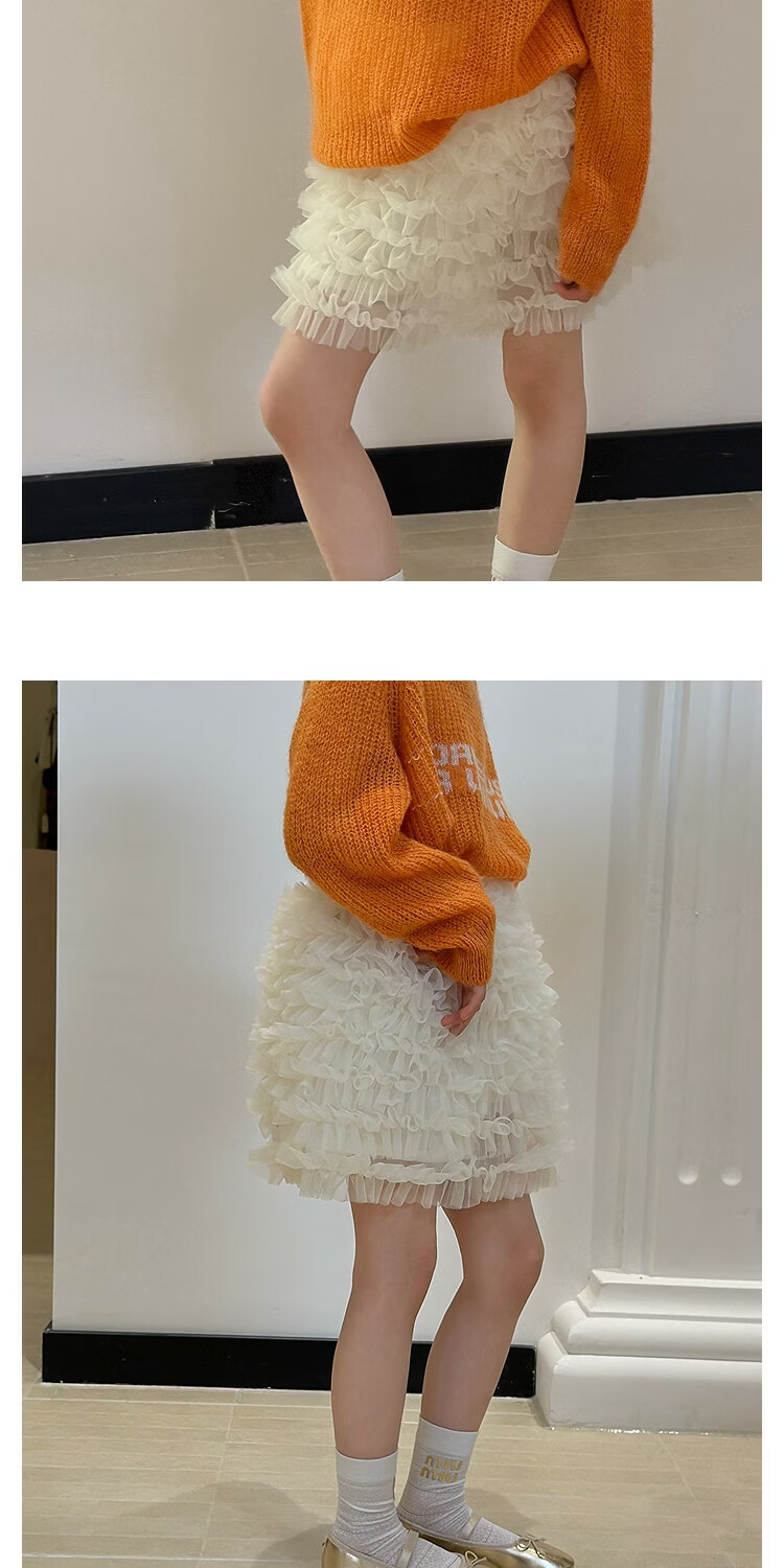 SEVEN BOBI No. 7 Children's Warehouse Girl Ballet Style Mesh Cake Skirt Spring and Summer New Layered Three-dimensional Puffy Skirt Trendy Off-White Ready in Stock 120 cm