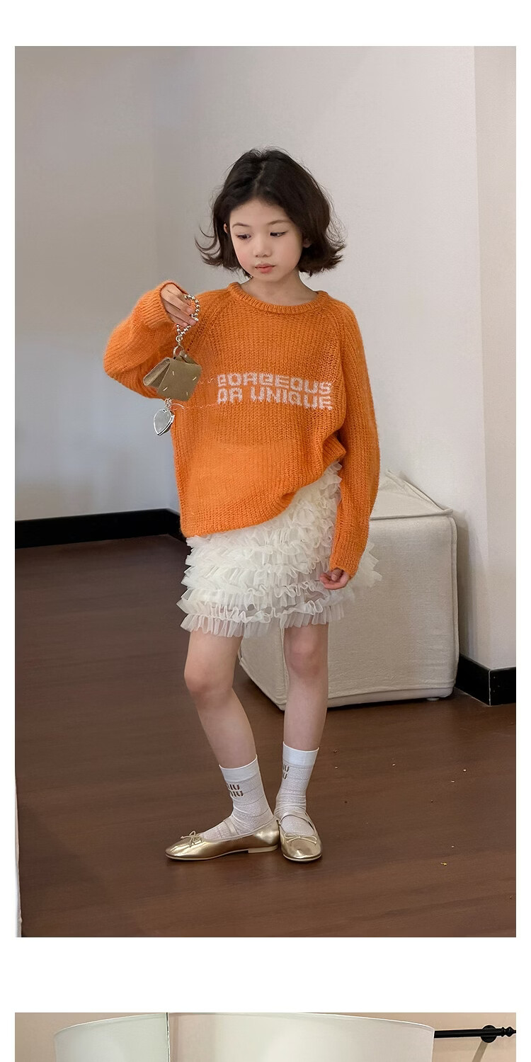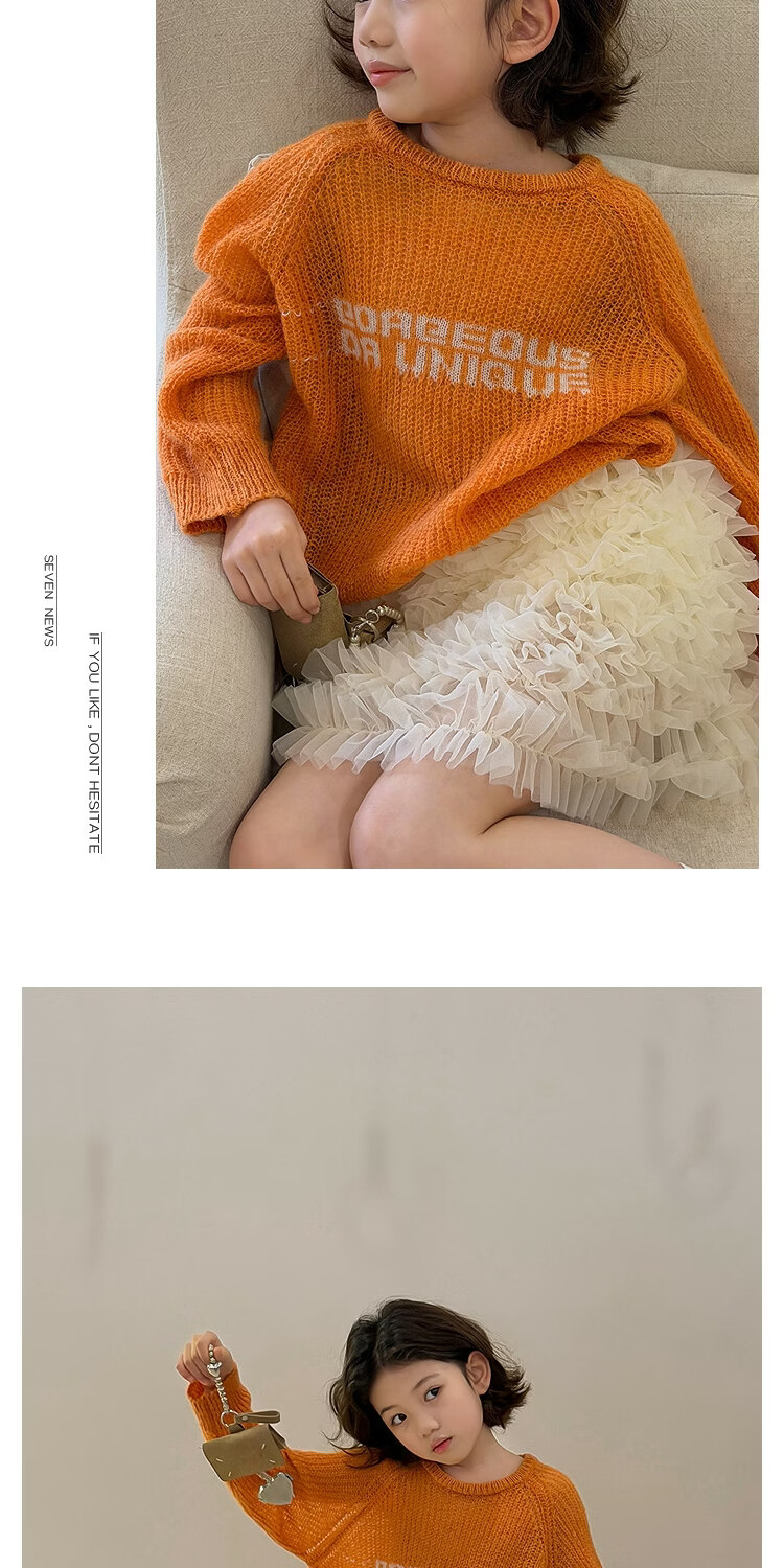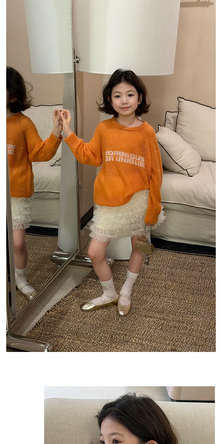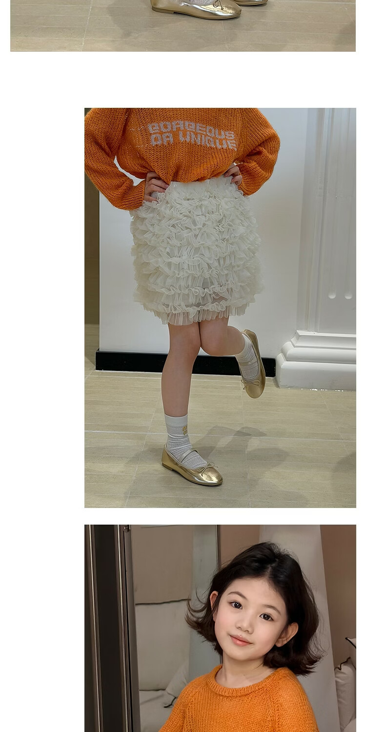 SEVEN BOBI No. 7 Children's Warehouse Girl Ballet Style Mesh Cake Skirt Spring and Summer New Layered Three-dimensional Puffy Skirt Trendy Off-White Ready in Stock 120 cm