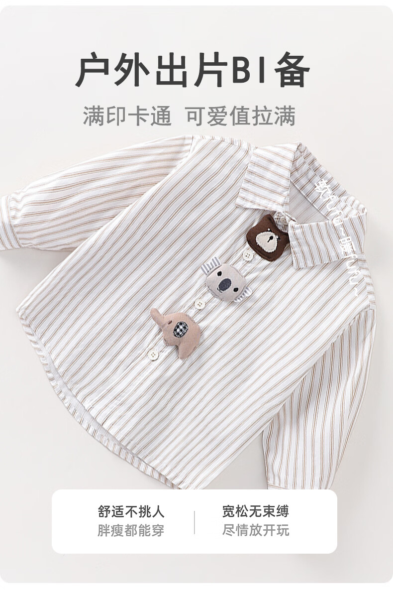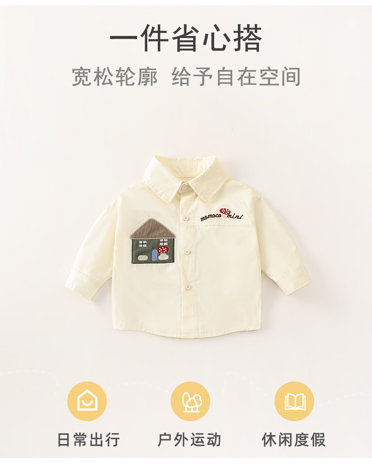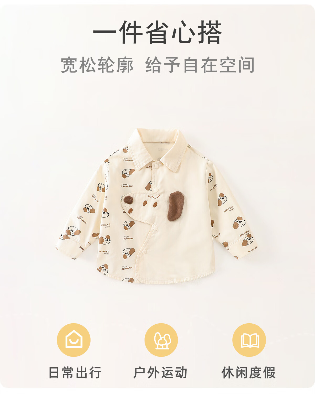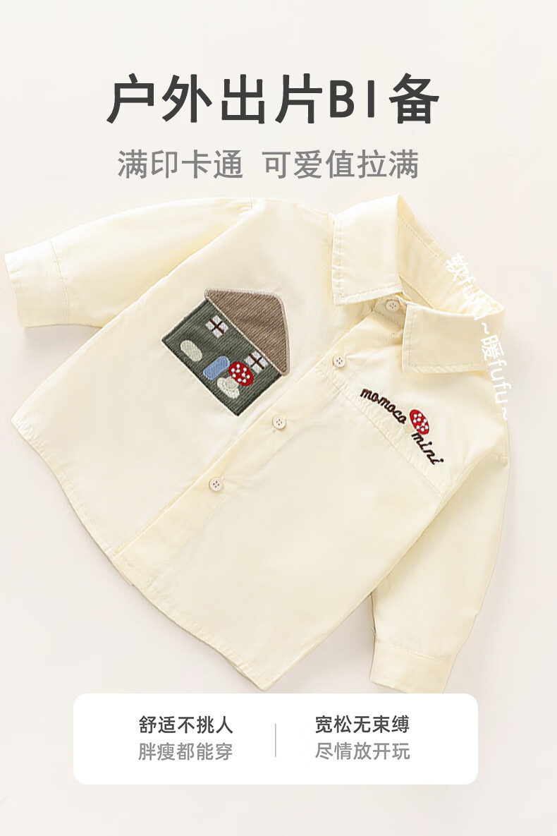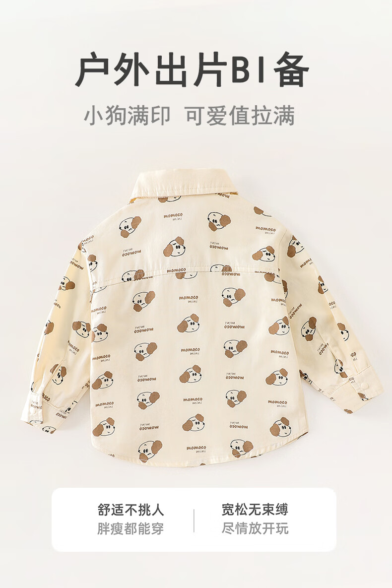 Mamie Maka (MOMOCO) children's clothing boys' shirt 2026 spring baby fashion long-sleeved shirt beige 006 73