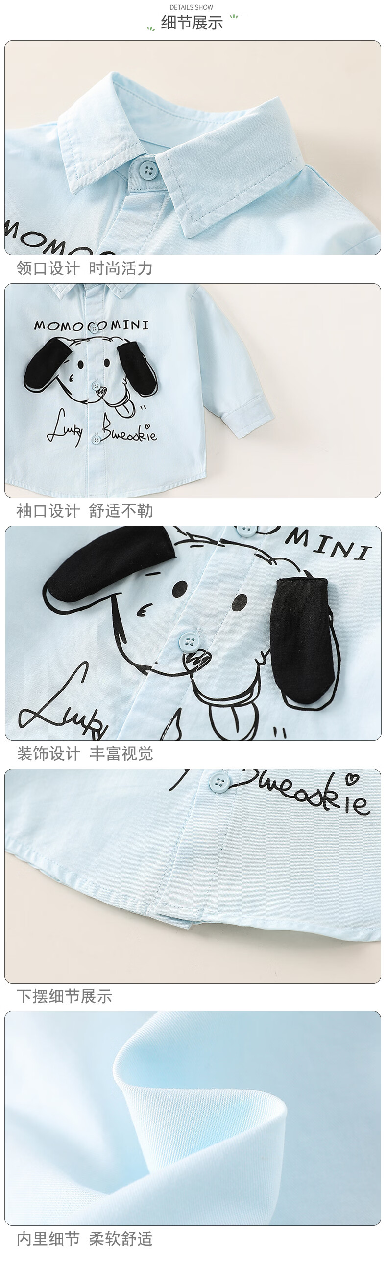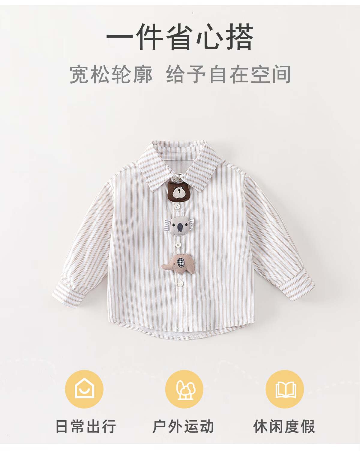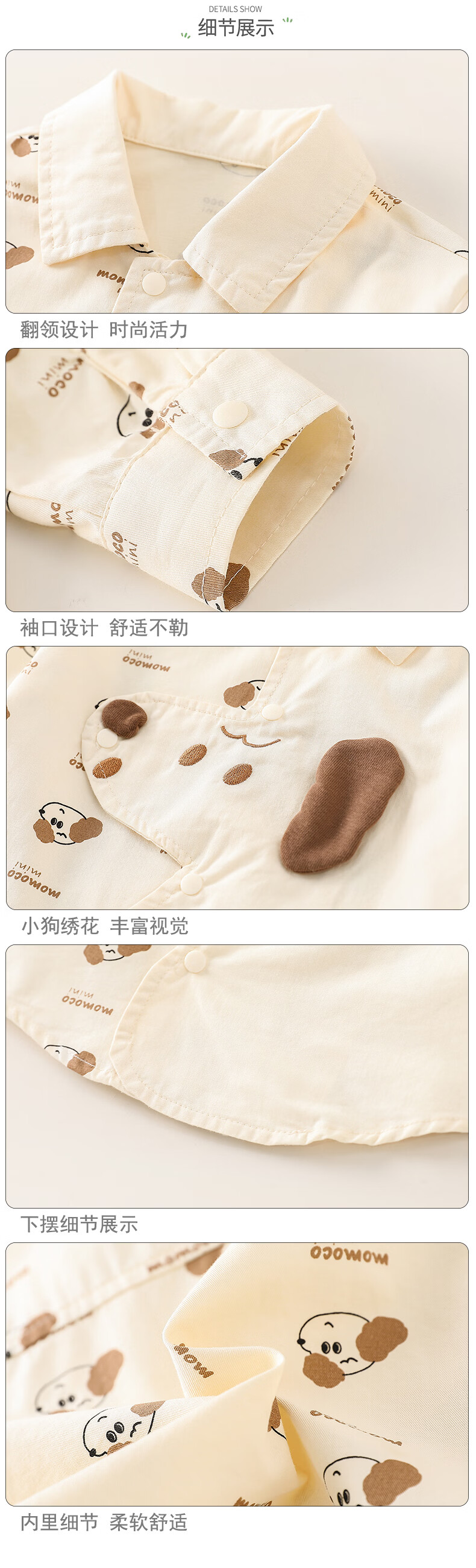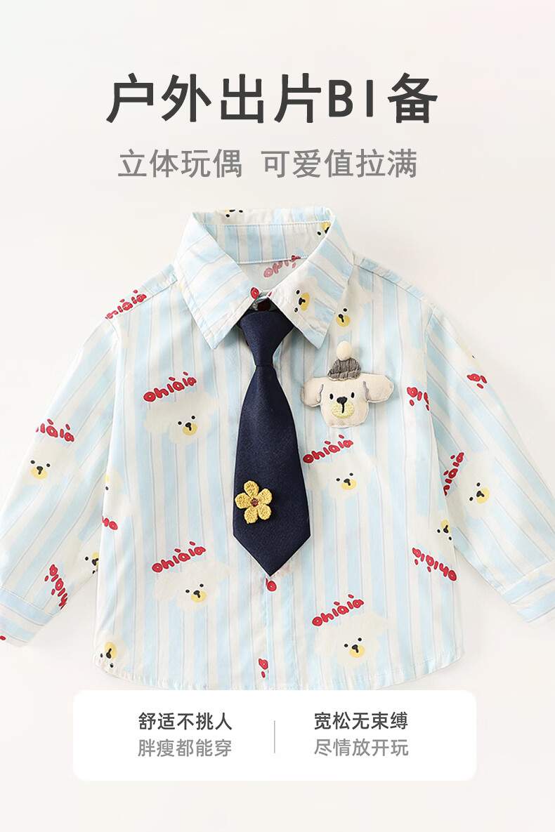 Mamie Maka (MOMOCO) children's clothing boys' shirt 2026 spring baby fashion long-sleeved shirt beige 006 73