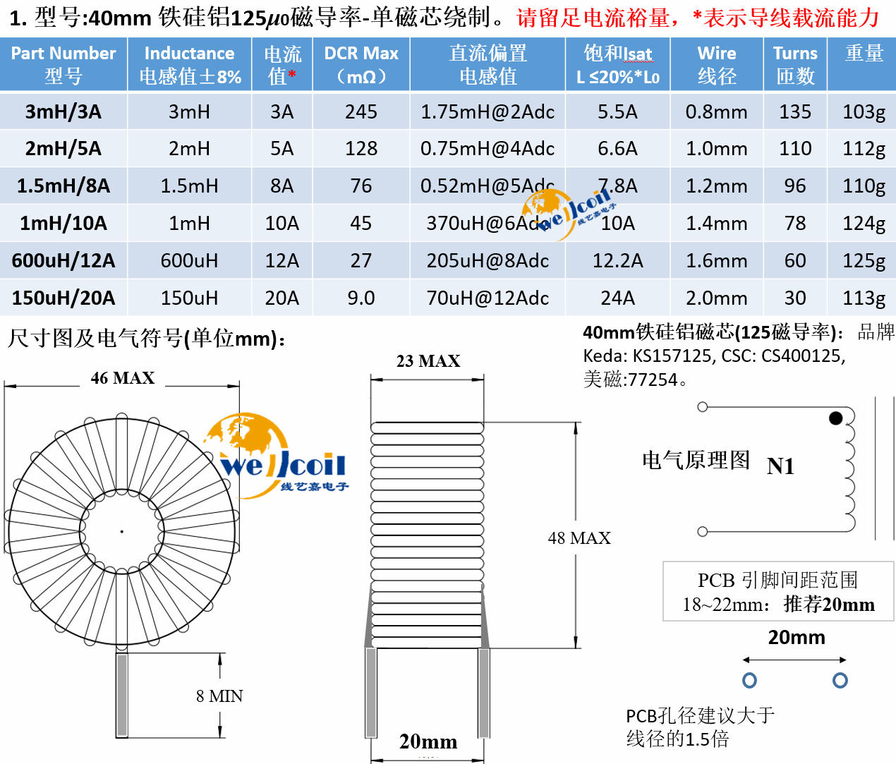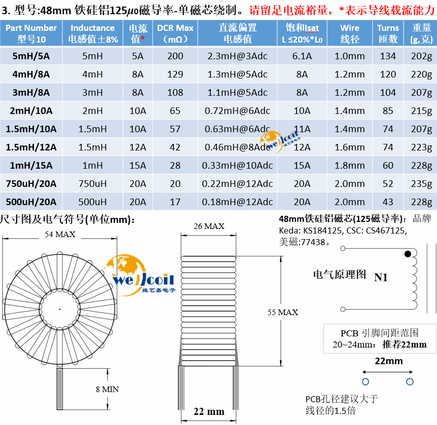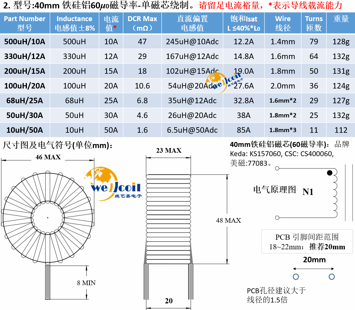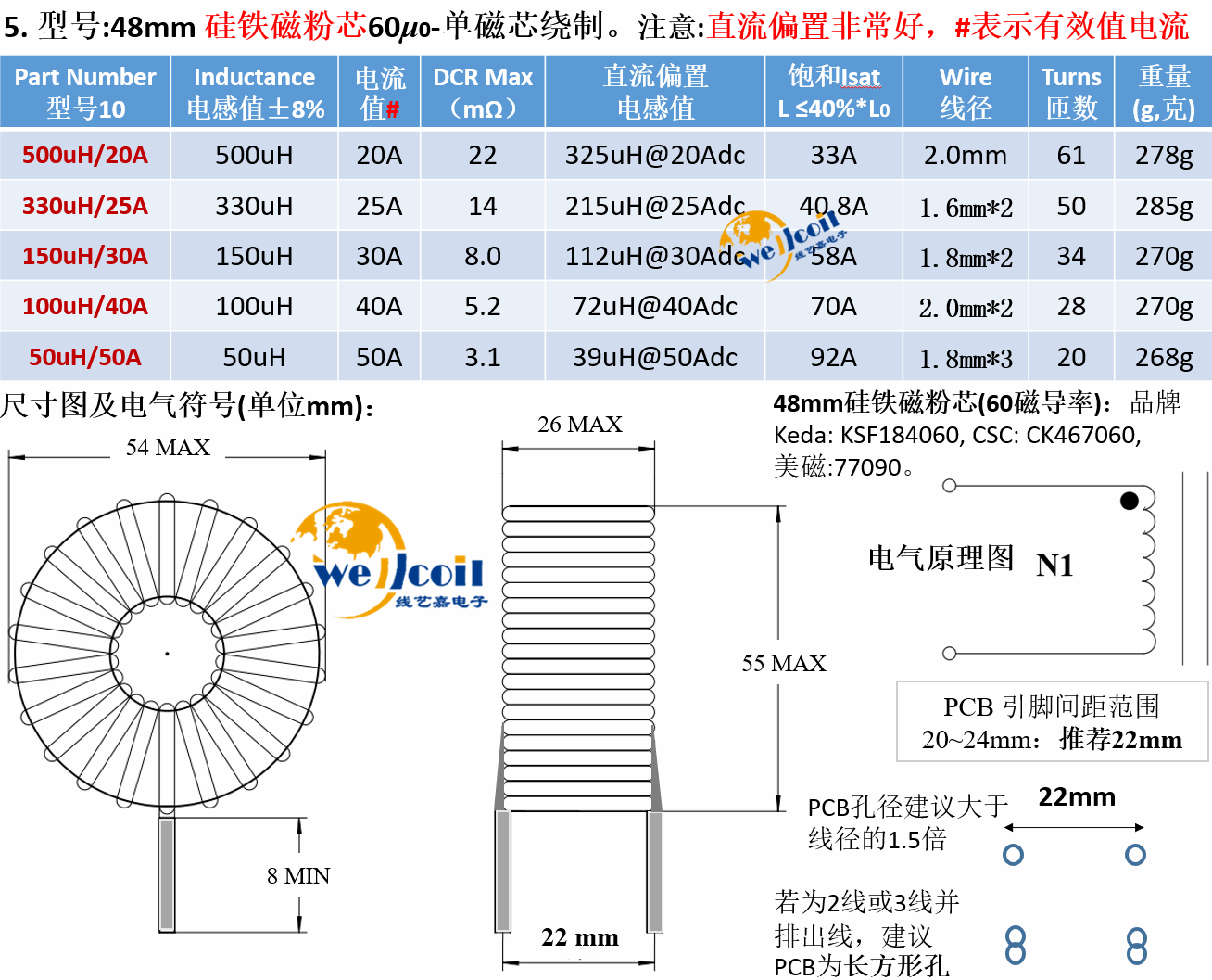 Iron silicon aluminum magnetic ring inductor 50u1m5m energy storage PFC inductor coil inverter filter inductor can be customized 48mm iron silicon powder core-50u50A