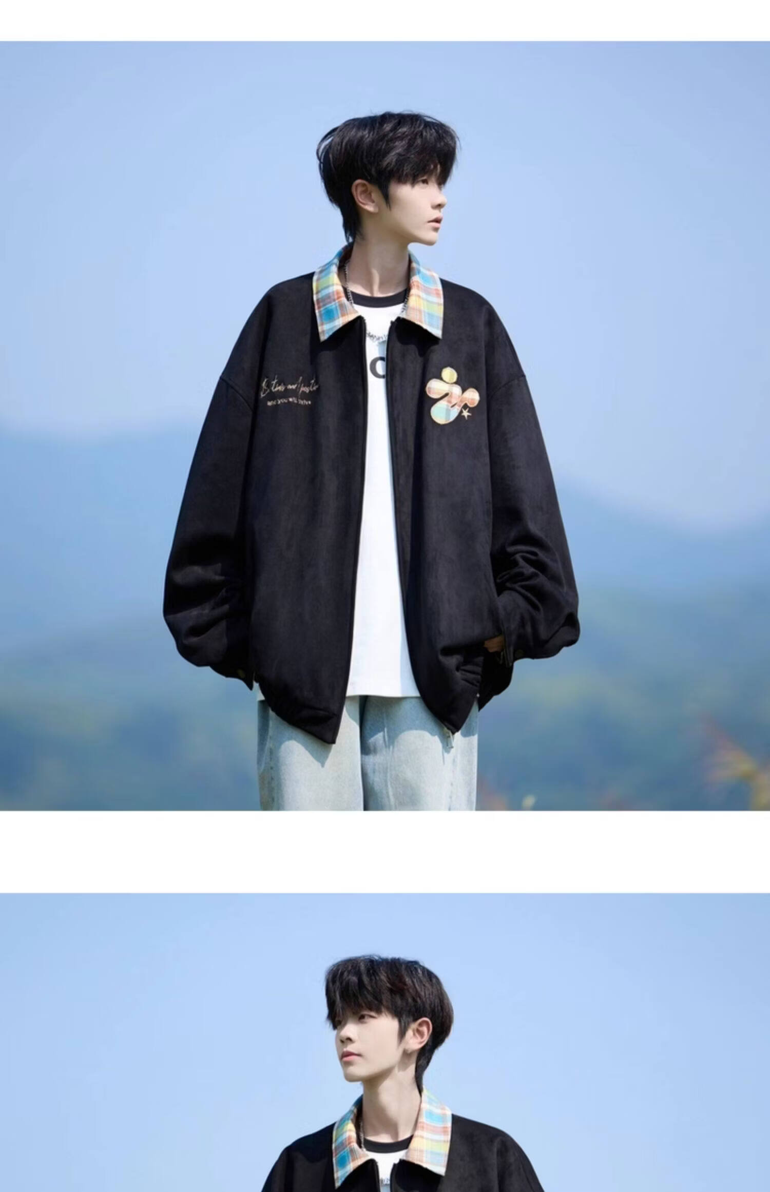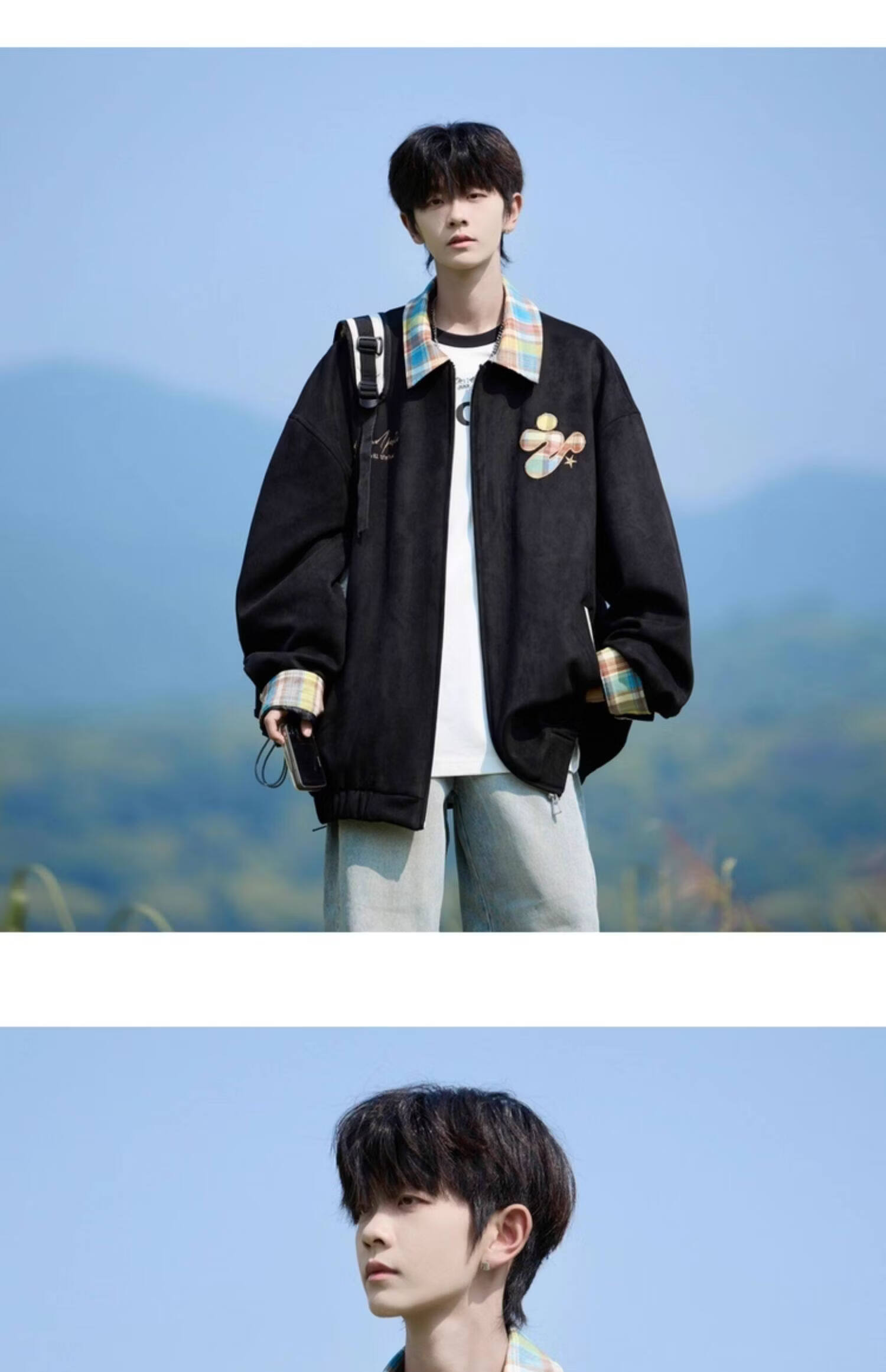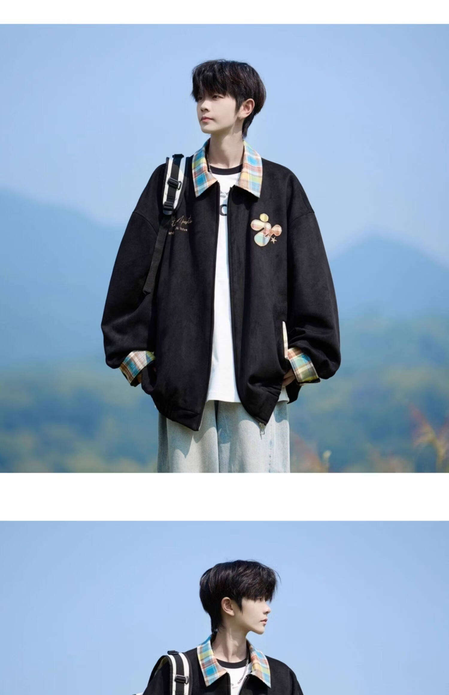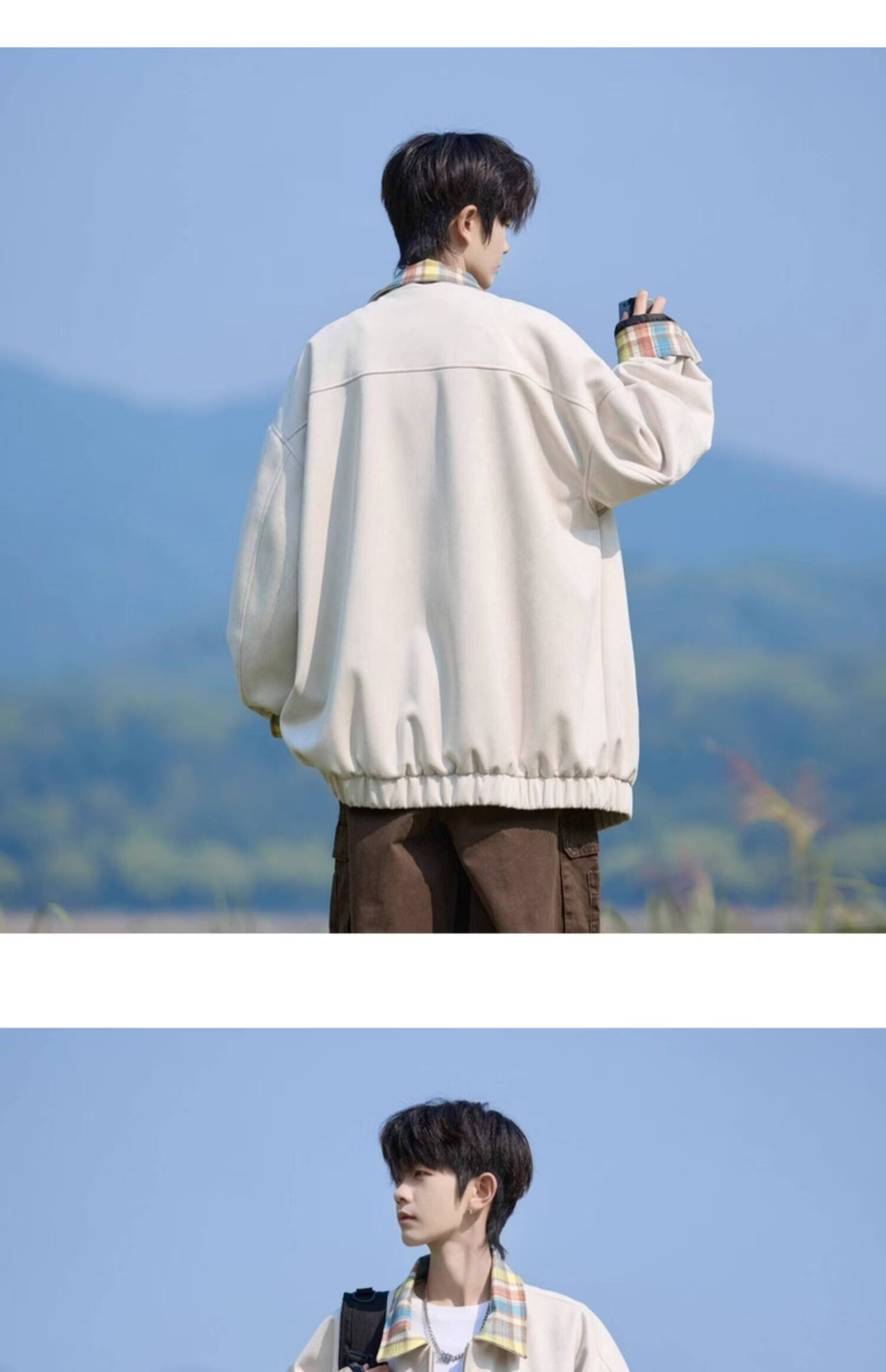 Shelley Jones American dopamine plaid spliced lapel jacket men's spring and autumn new trendy brand loose casual boys' jacket apricot M recommended 80-100Jin Jin equals 0.5 kg