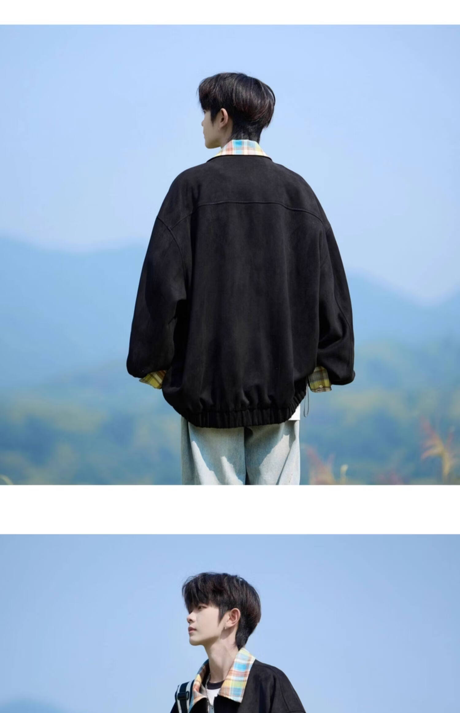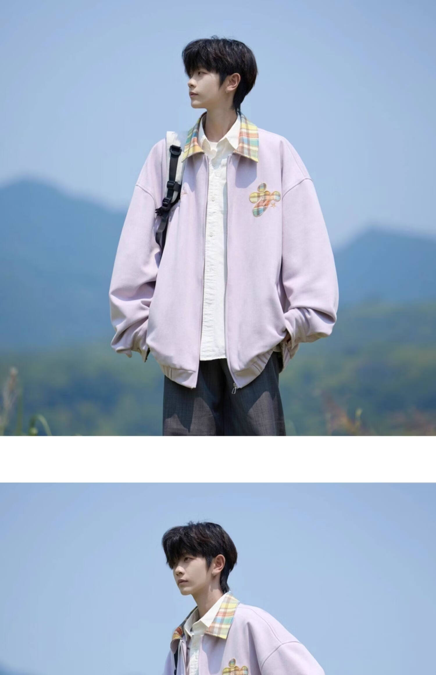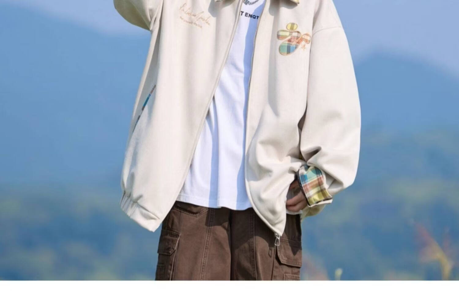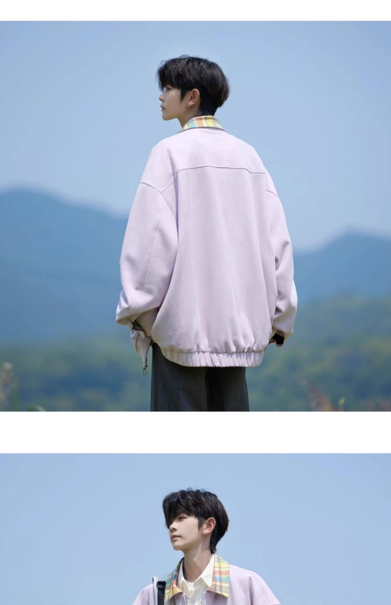 Shelley Jones American dopamine plaid spliced lapel jacket men's spring and autumn new trendy brand loose casual boys' jacket apricot M recommended 80-100Jin Jin equals 0.5 kg