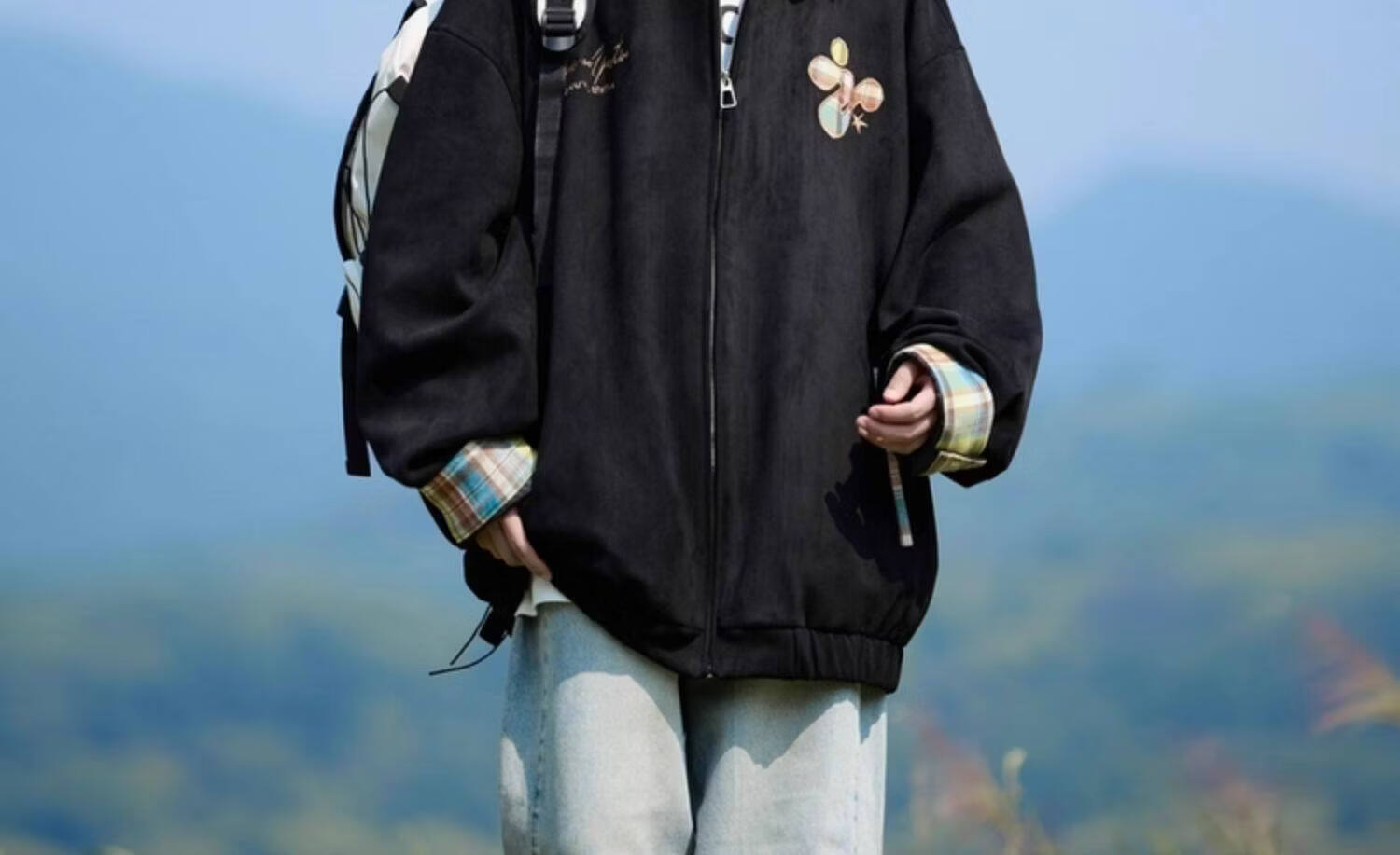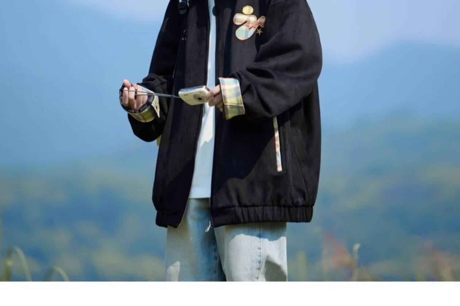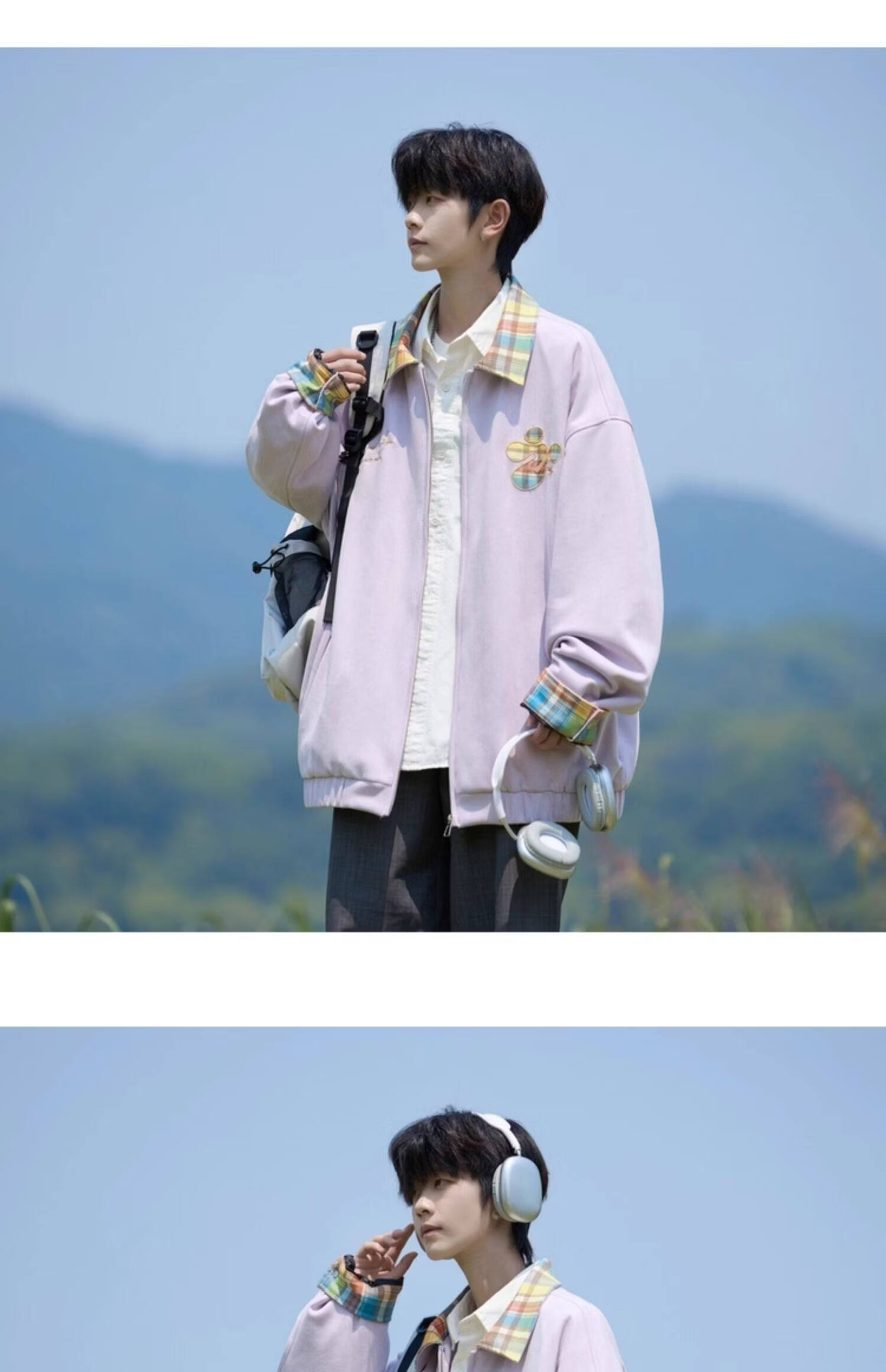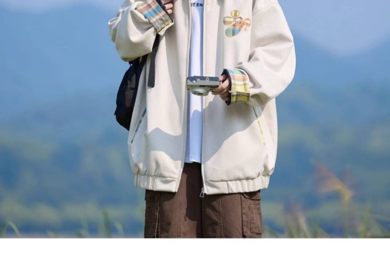 Shelley Jones American dopamine plaid spliced lapel jacket men's spring and autumn new trendy brand loose casual boys' jacket apricot M recommended 80-100Jin Jin equals 0.5 kg