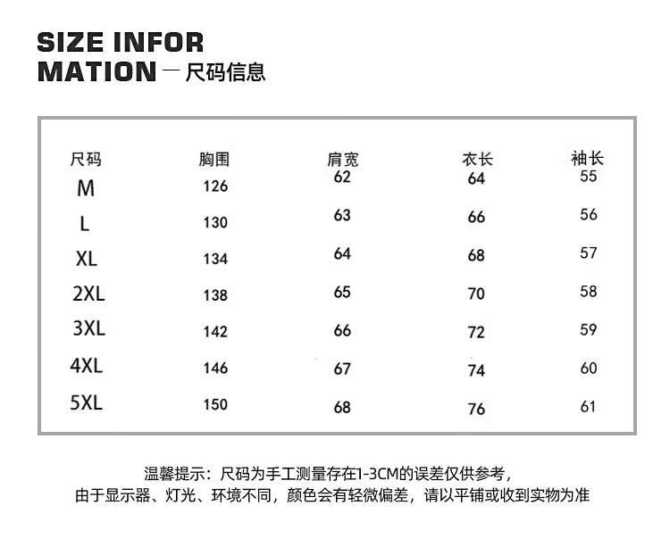 China (cm) 165 / 88-90 170 / 96-98 175 / 108-110 180 / 118-122 185 / 126-130