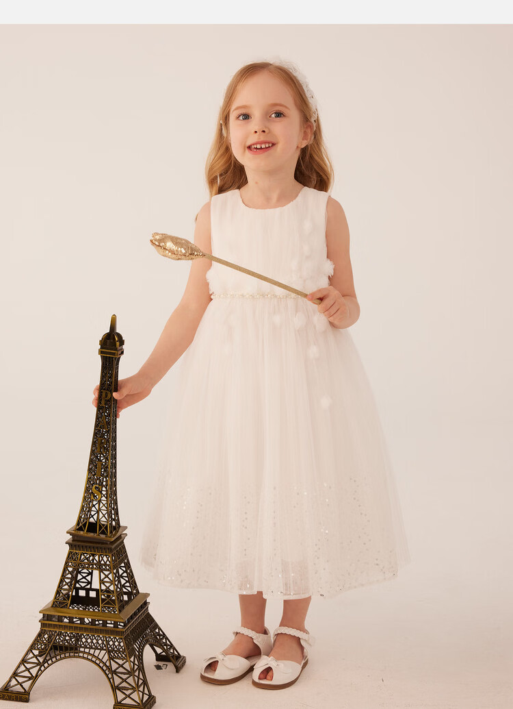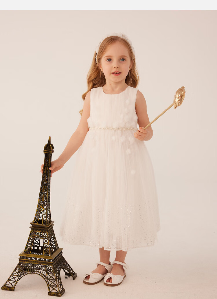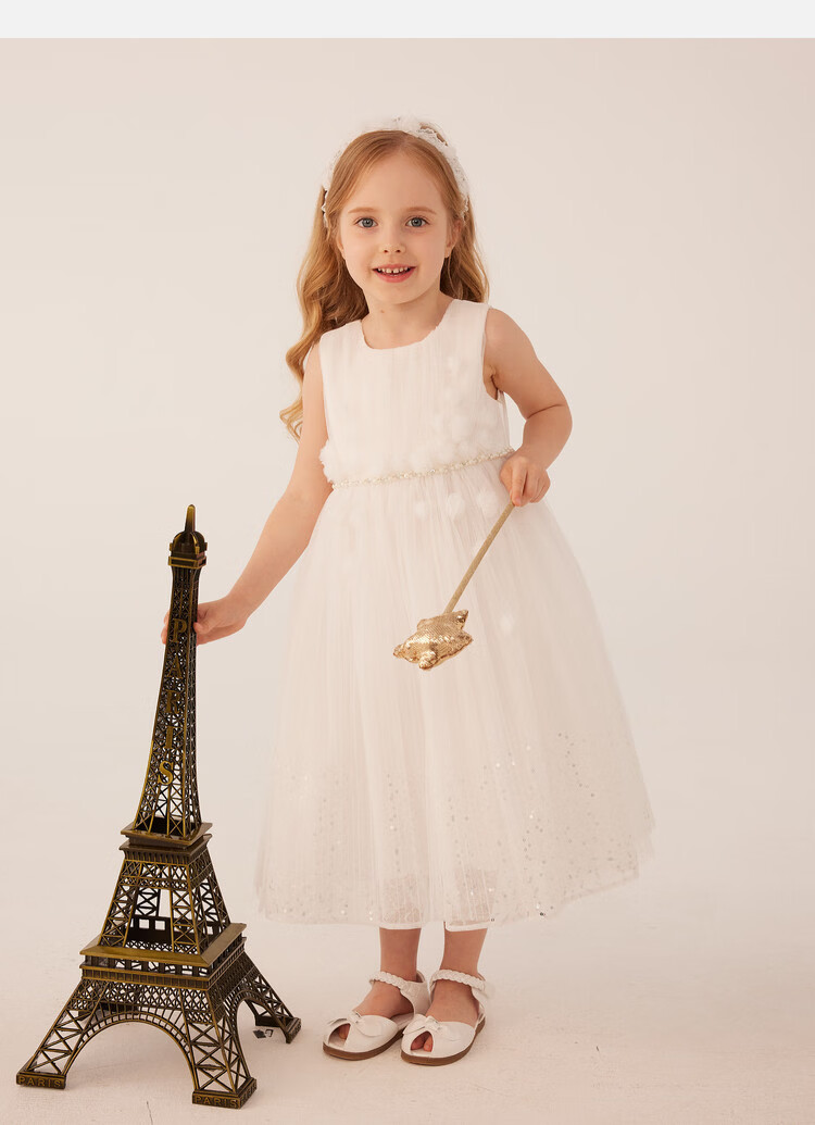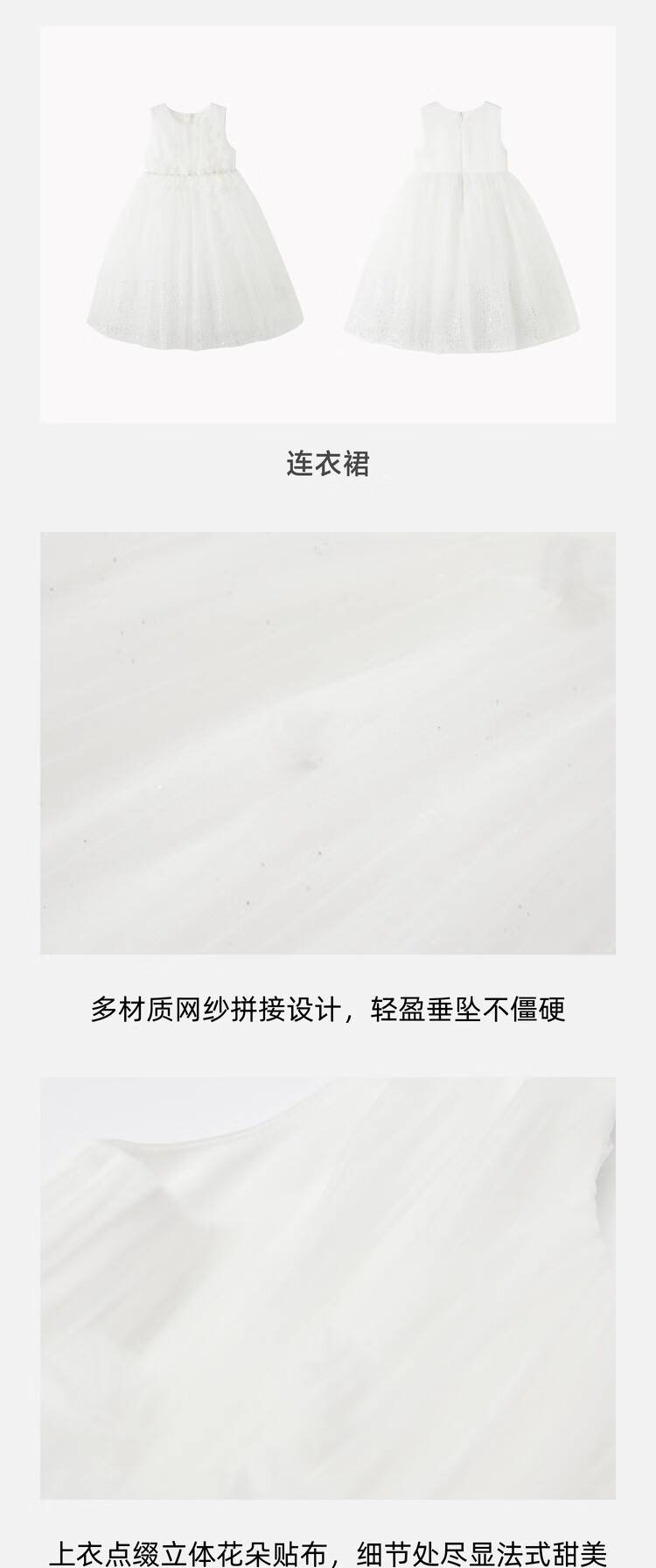 TARTINE ET CHOCOLAT French Chocolate Children's Clothing 25 Spring and Summer New Girls' Round Neck Mesh Dress Ivory White 110/4A One Size