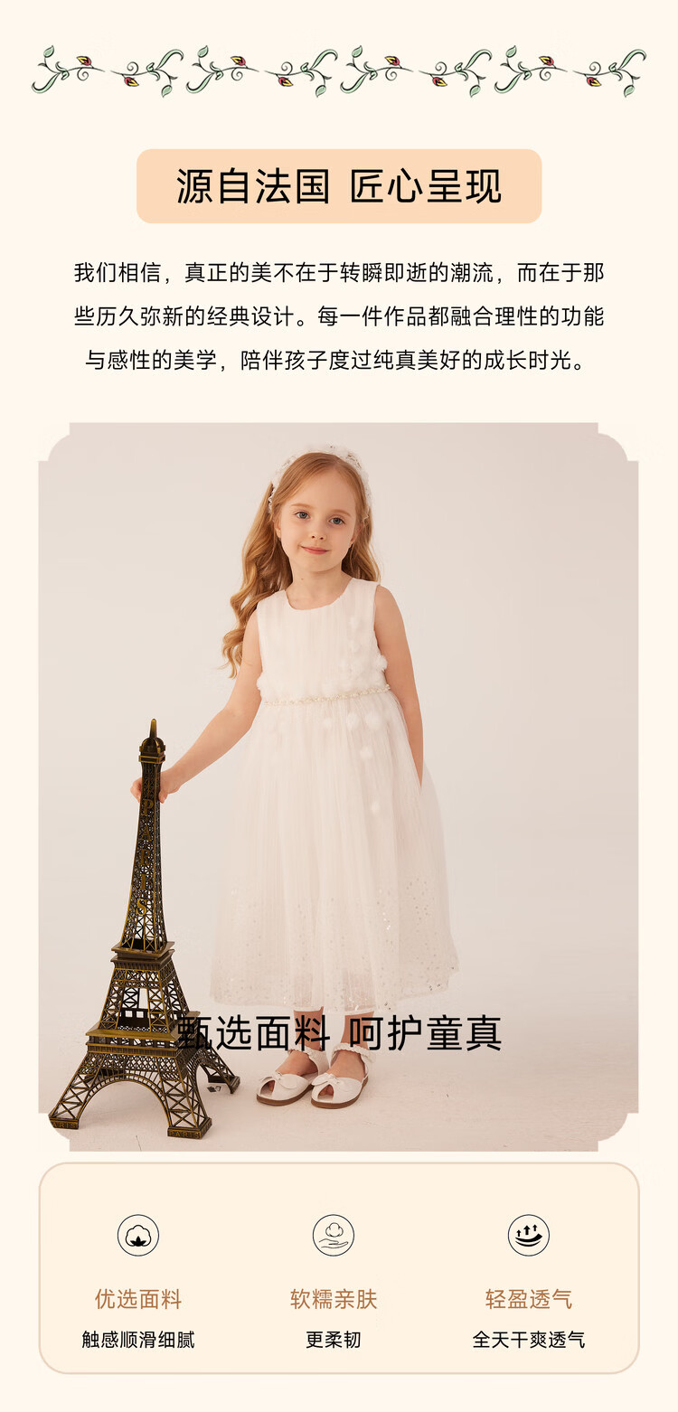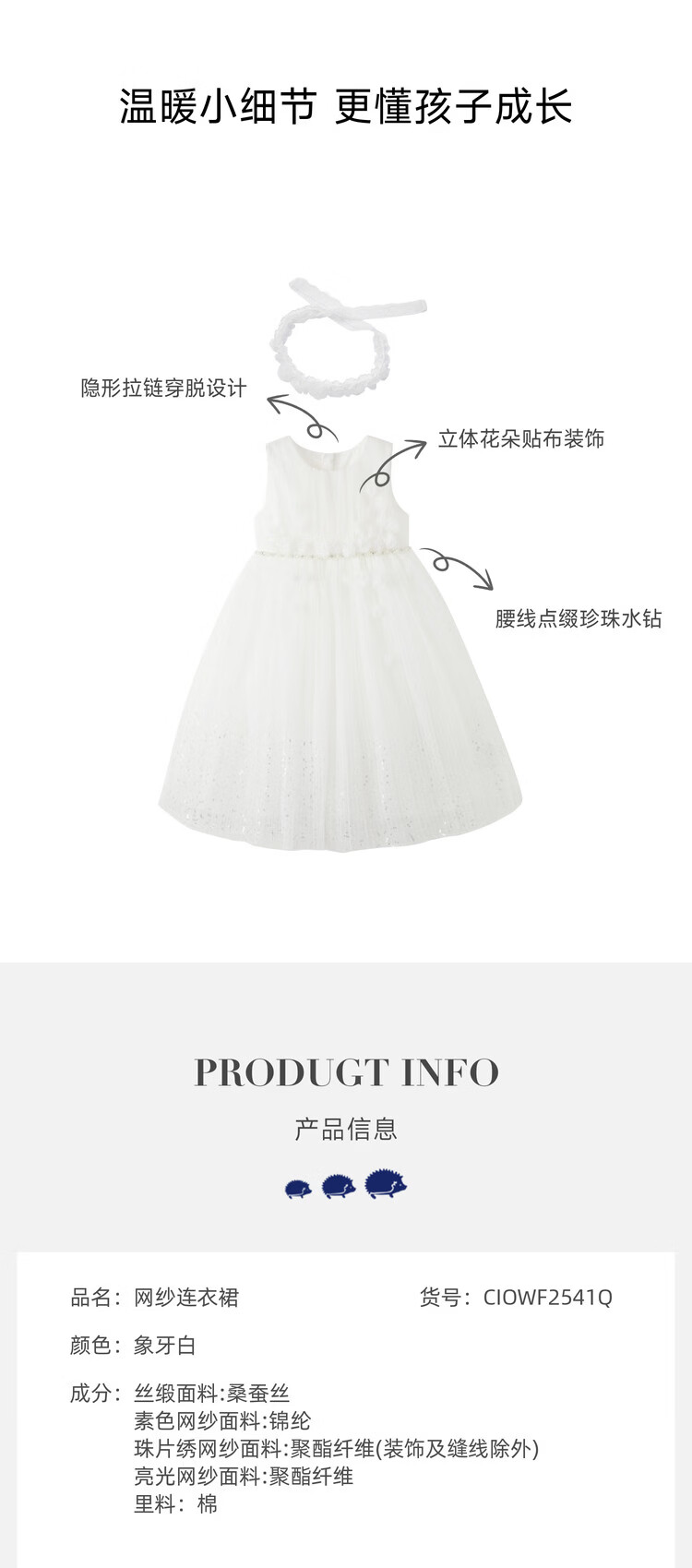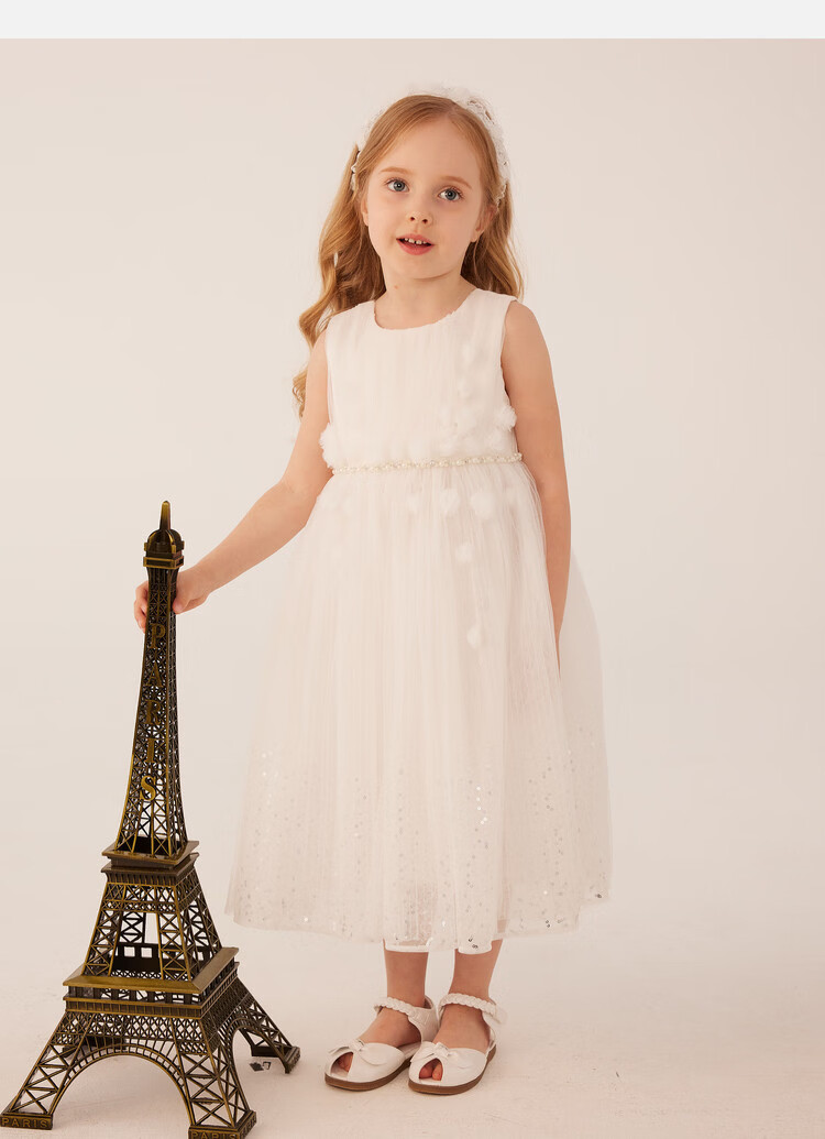TARTINE ET CHOCOLAT French Chocolate Children's Clothing 25 Spring and Summer New Girls' Round Neck Mesh Dress Ivory White 110/4A One Size
