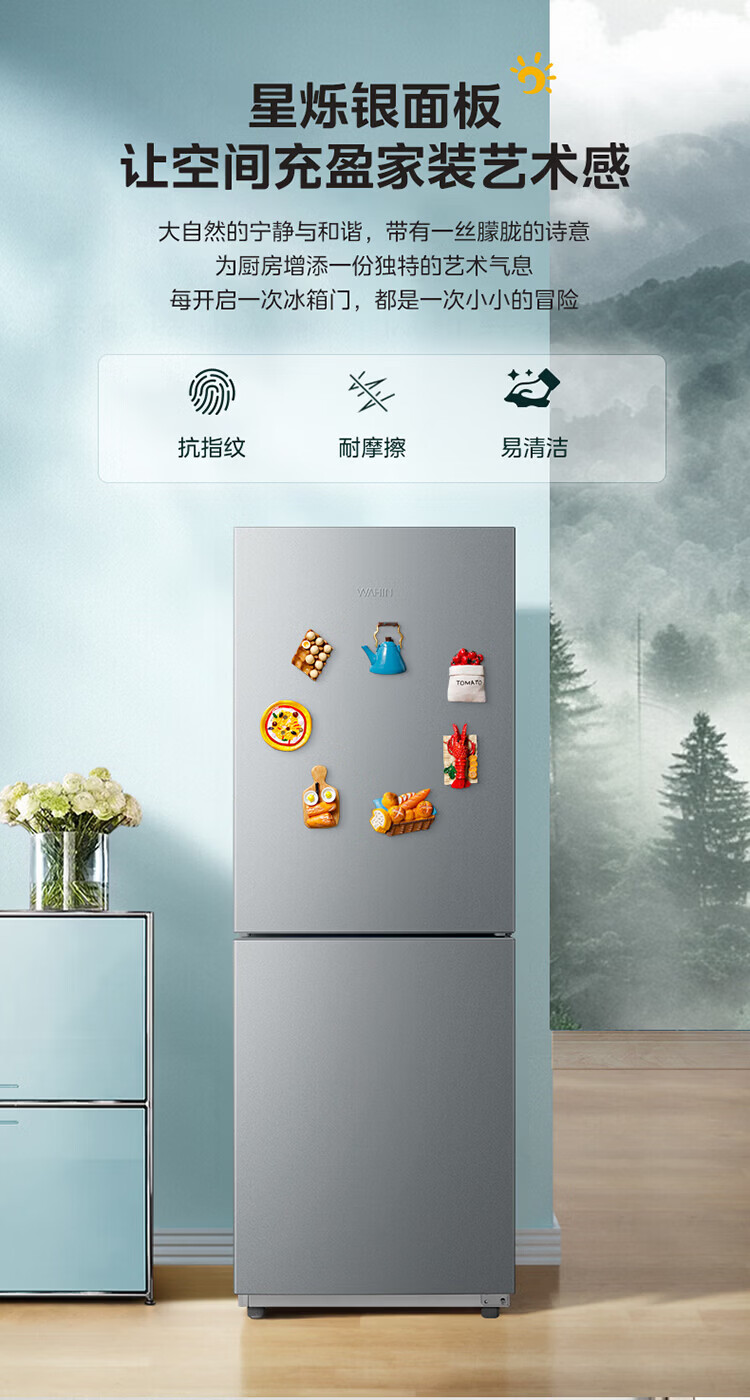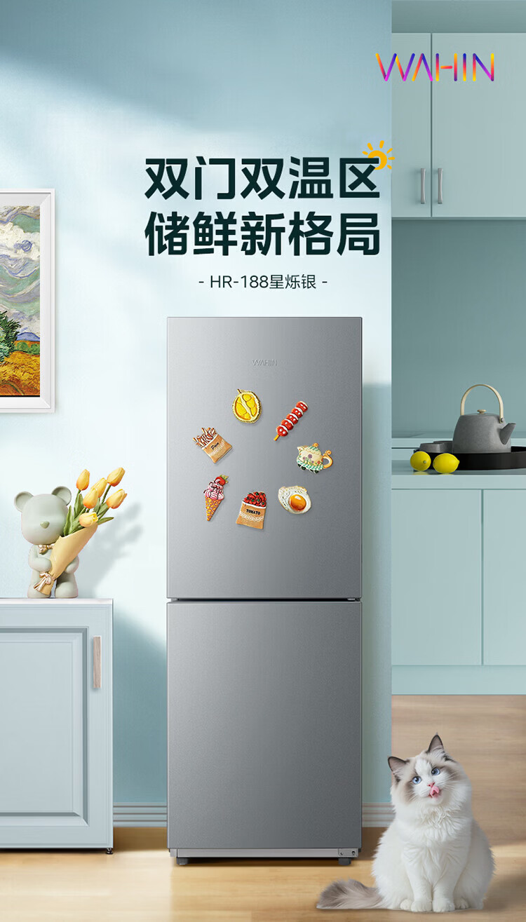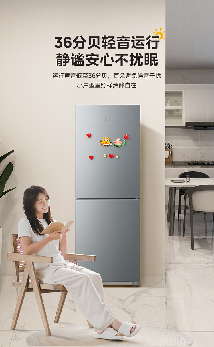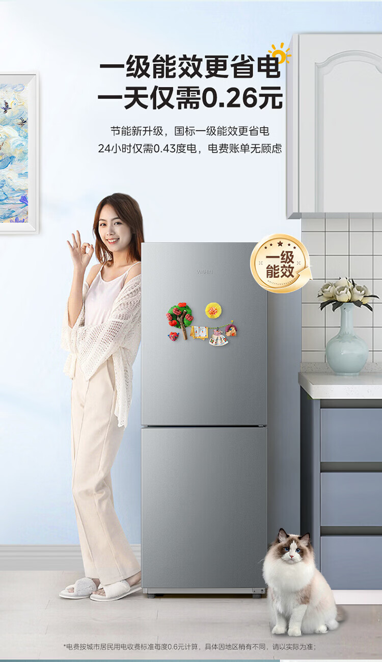 Hualing refrigerator produced by Midea 180 liters double-door two-door small refrigerator first-class energy efficiency small household dormitory rental energy-saving low-noise refrigeration refrigerator HR-188 two doors丨180 liters丨Xingshuo Silver