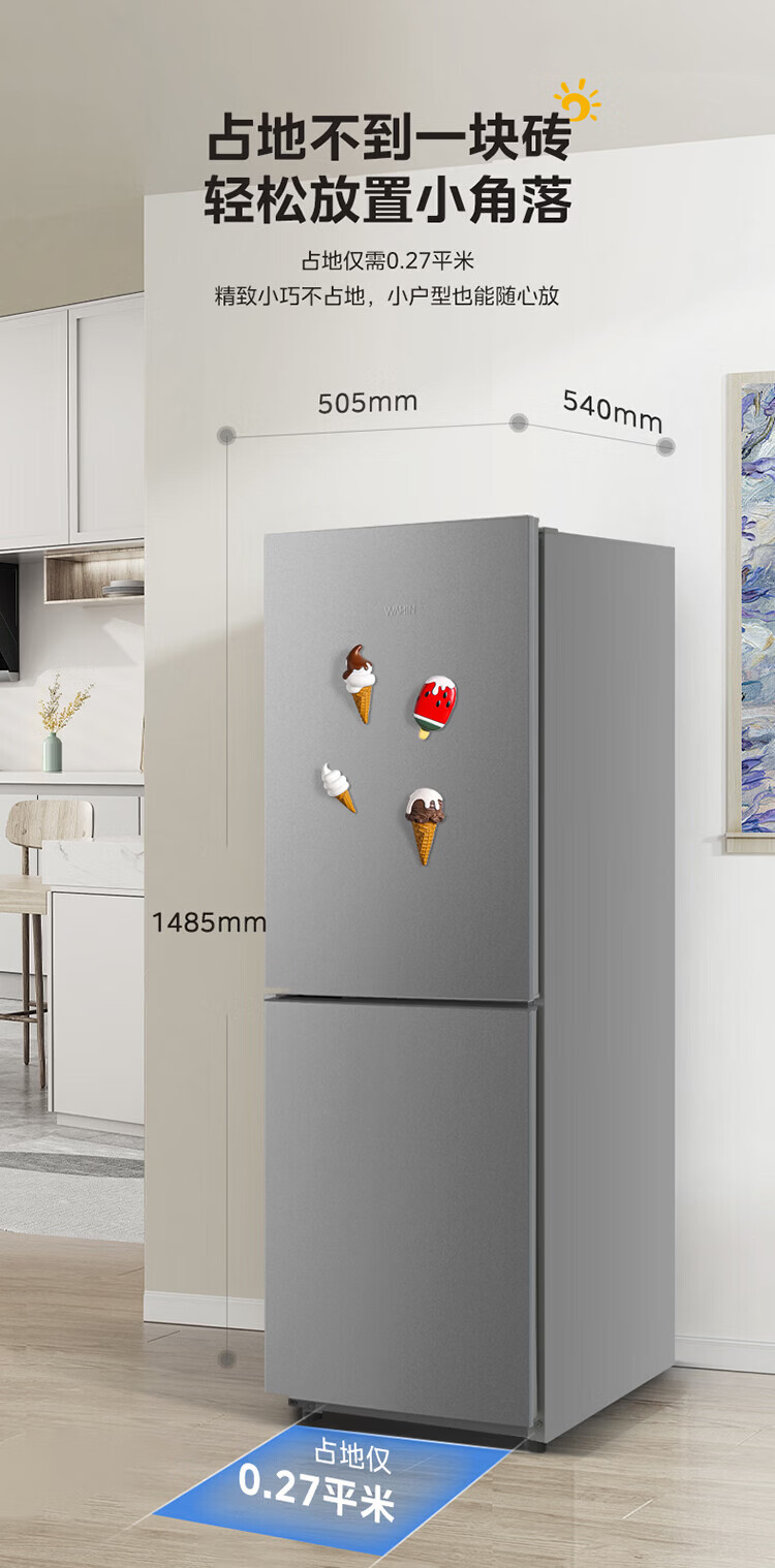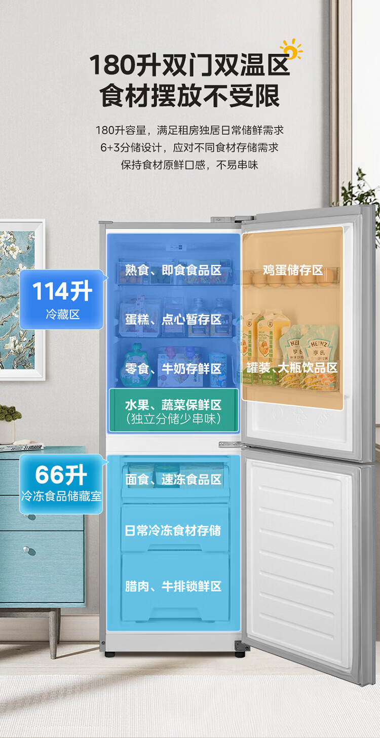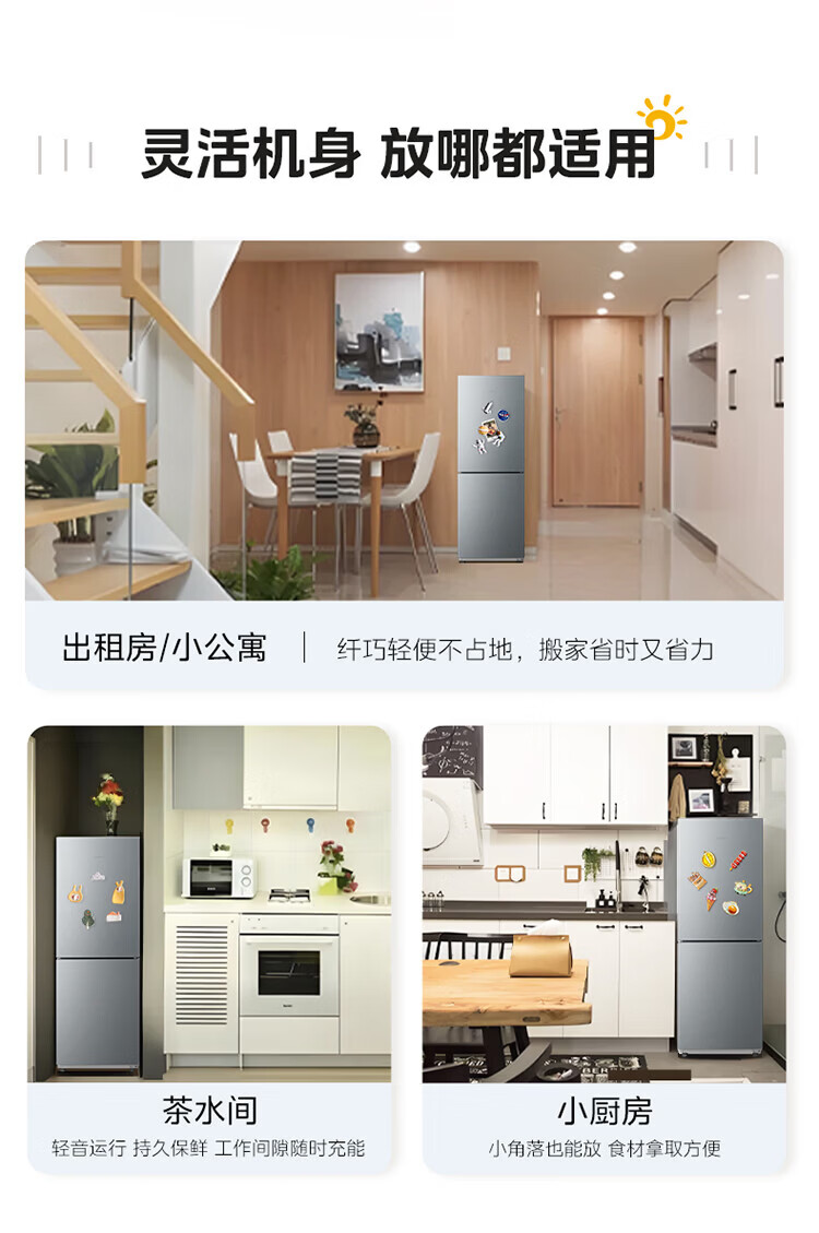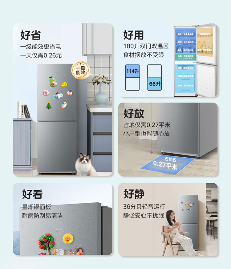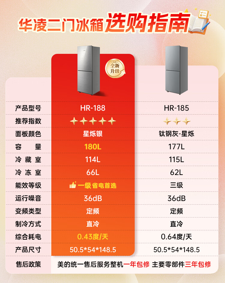 Hualing refrigerator produced by Midea 180 liters double-door two-door small refrigerator first-class energy efficiency small household dormitory rental energy-saving low-noise refrigeration refrigerator HR-188 two doors丨180 liters丨Xingshuo Silver