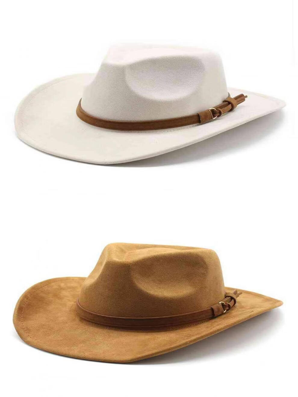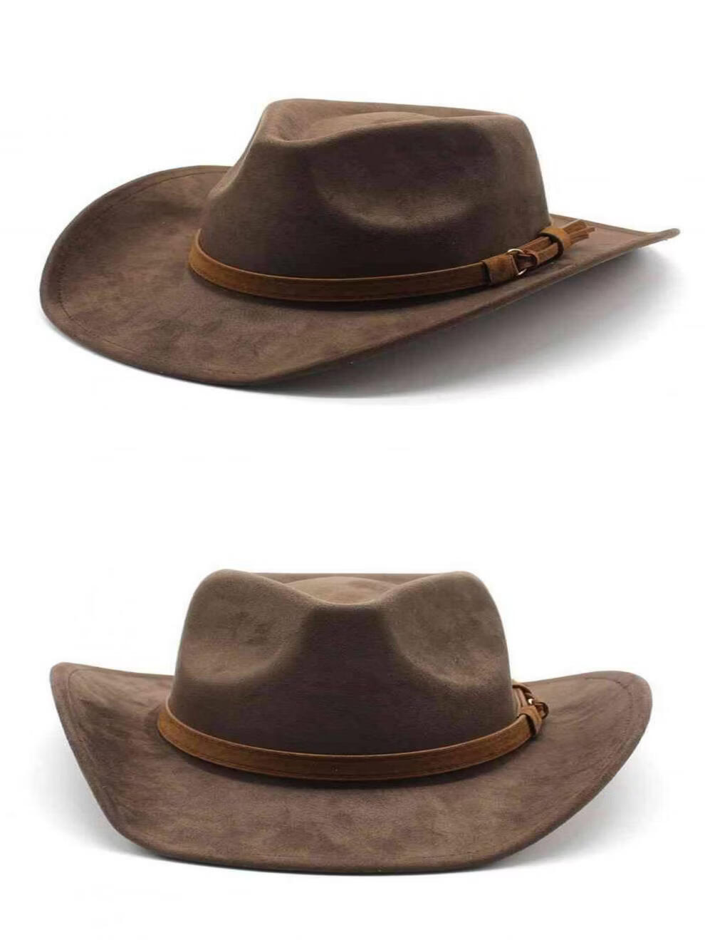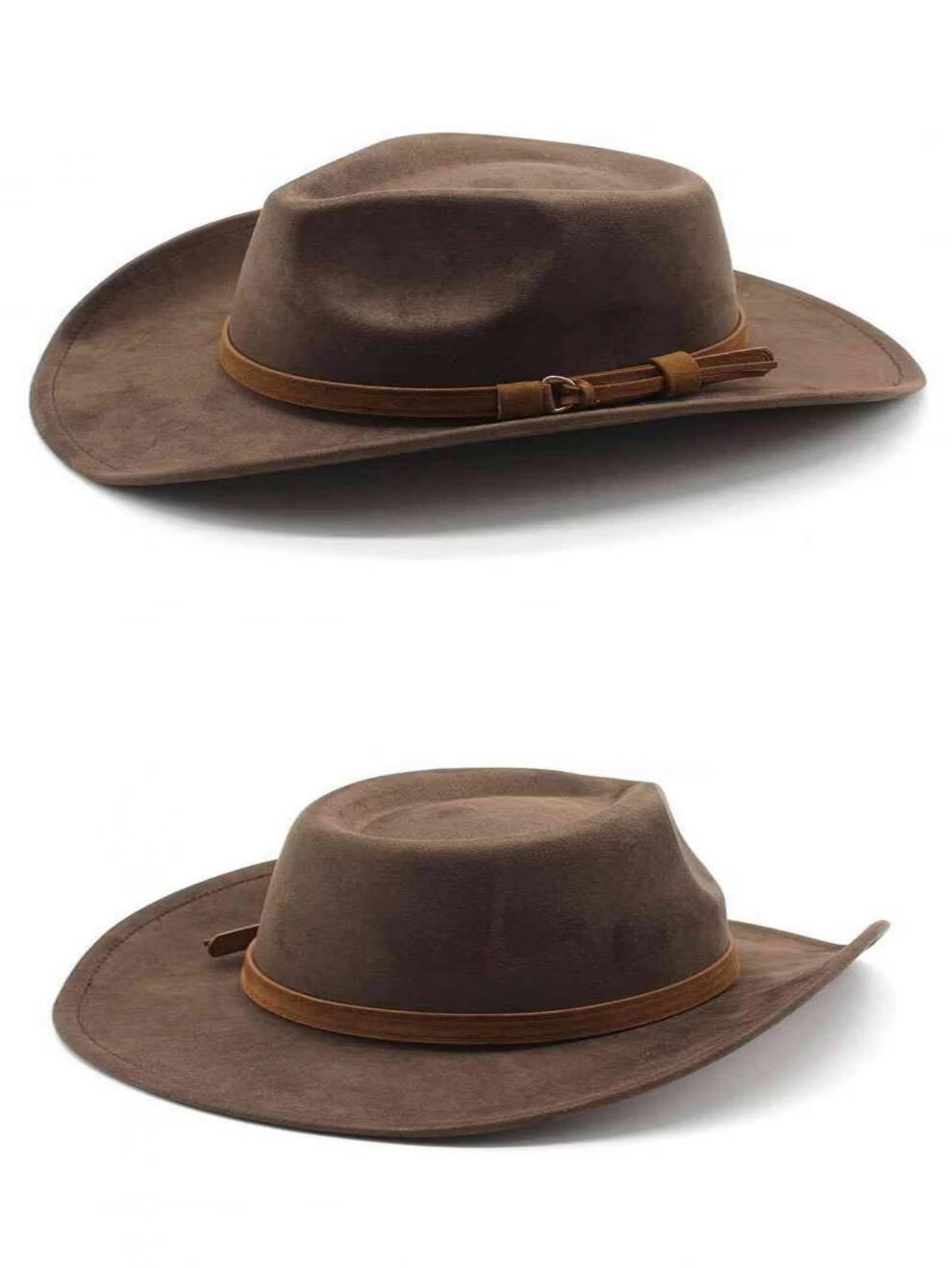 Cowboy Hat New European and American Style Woolen Hat Suede Men and Women Couple Hat Woolen Western Cowboy Hat Customized Rose Red Suede M (56-59cm)